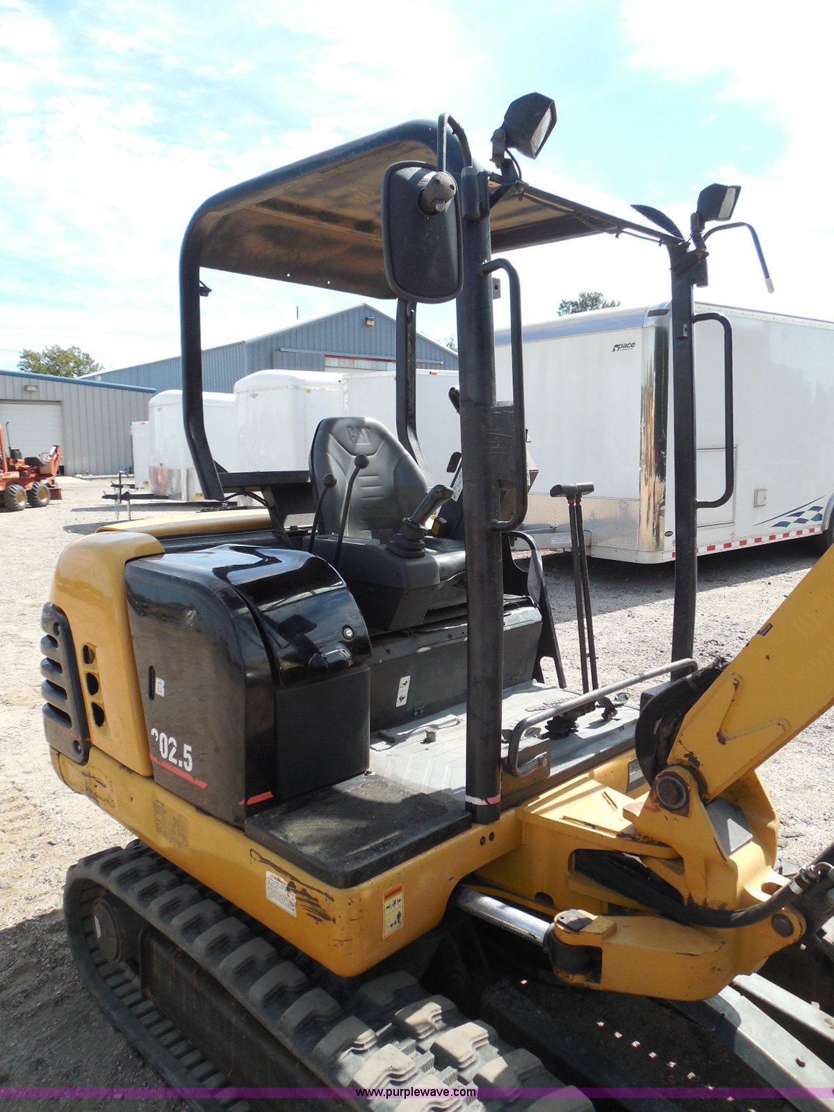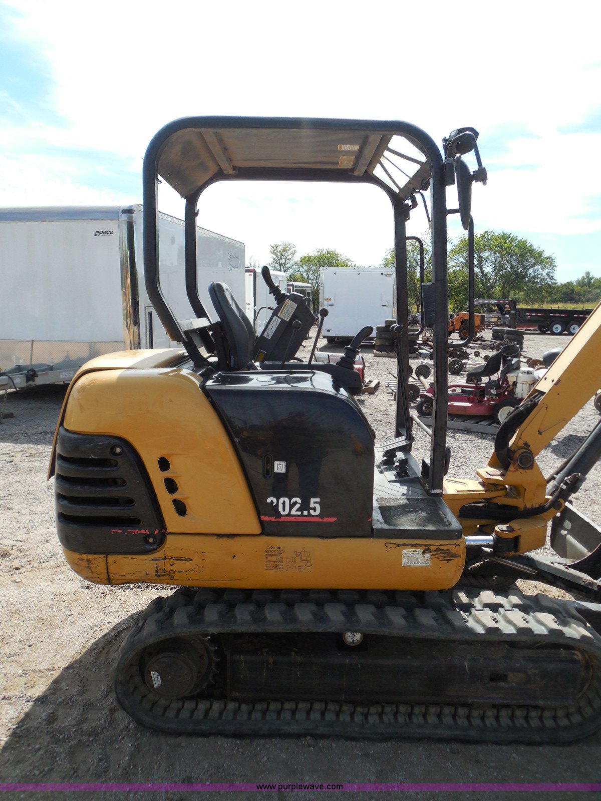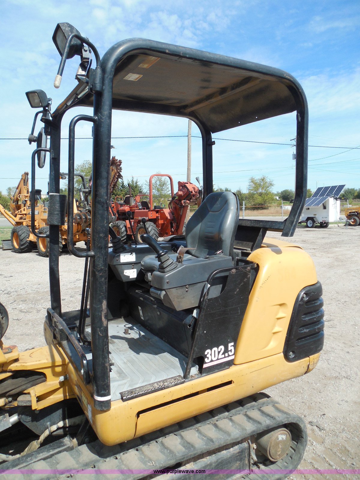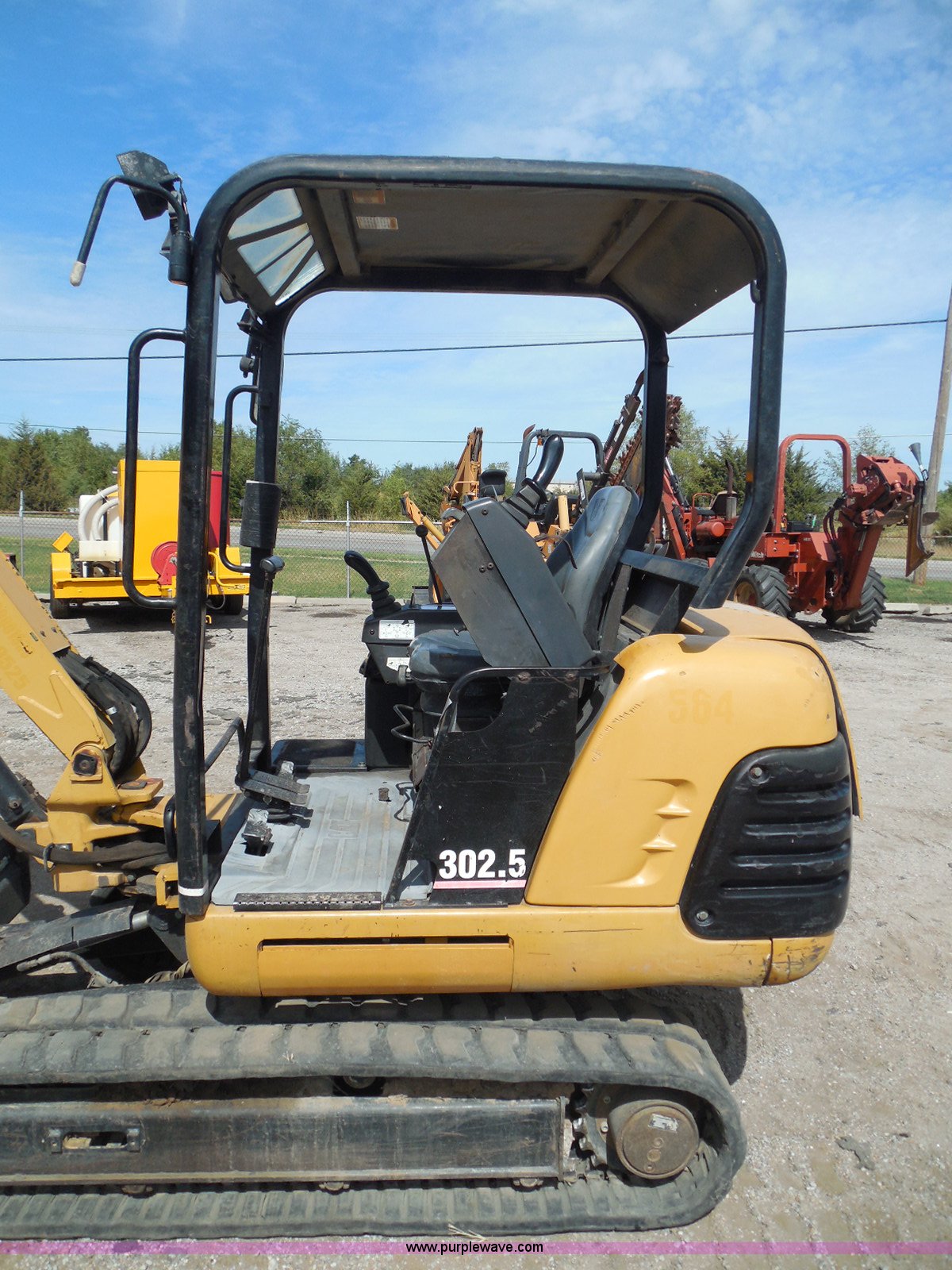 Purple Wave is selling a used Mini Excavator in Kansas. This item is a 2006 Caterpillar 302.5 mini excavator with the following: 3,366 hours on meter, Perkins 4H3XL200N84 three cylinder diesel engine, Hydrostatic transmission, OROPS, Spring suspension seat, Approximately 4.5' stick length, Caterpillar 18.5"W bucket, Four bolt-on teeth, 57"W back fill blade, 12"W rubber tracks, 6,027 lbs. base operating weight, Serial 4AZ06566