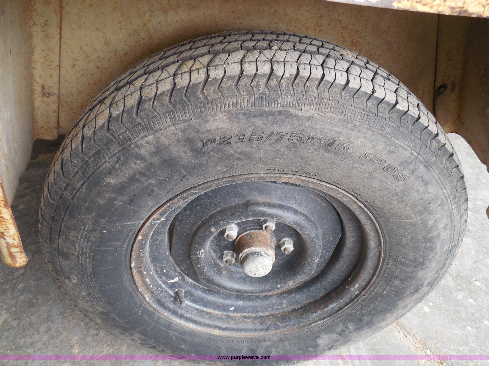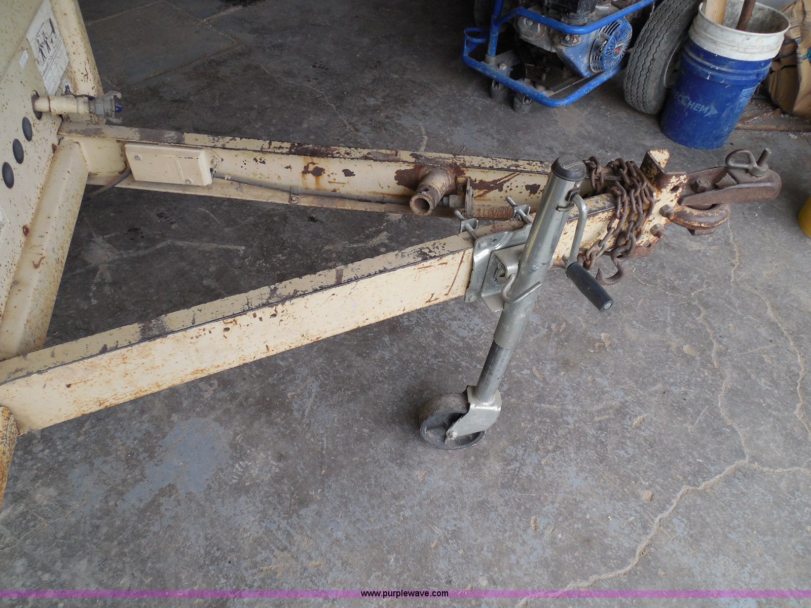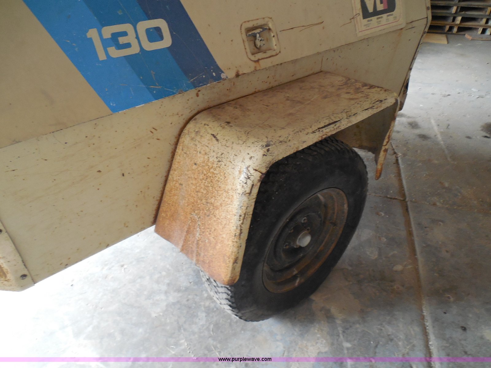 Ingersoll Rand 130 air compressor. 1,079 hours on meter, John Deere three cylinder diesel engine, Single outlet, GR78-15 left tire, P215/75R15 right tire, Non-operational unit, Serial 182219U172. HWA Davis Construction and Supply. Newton, KS 67114