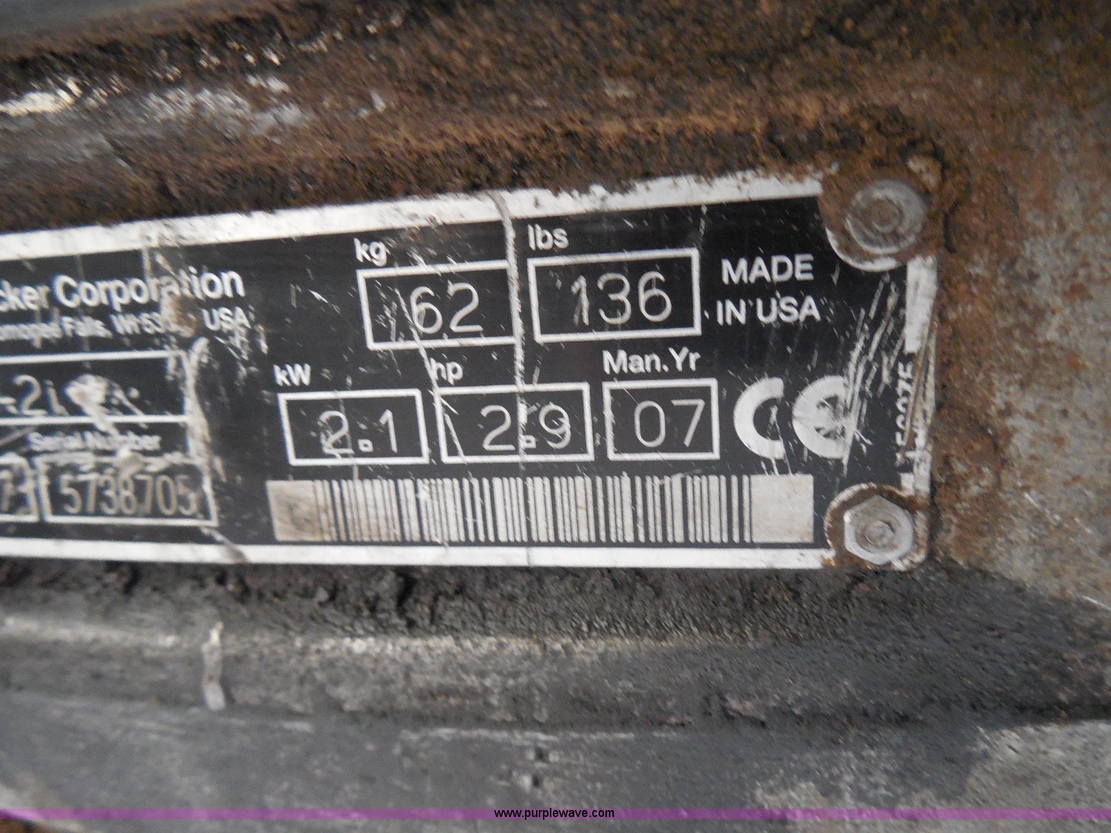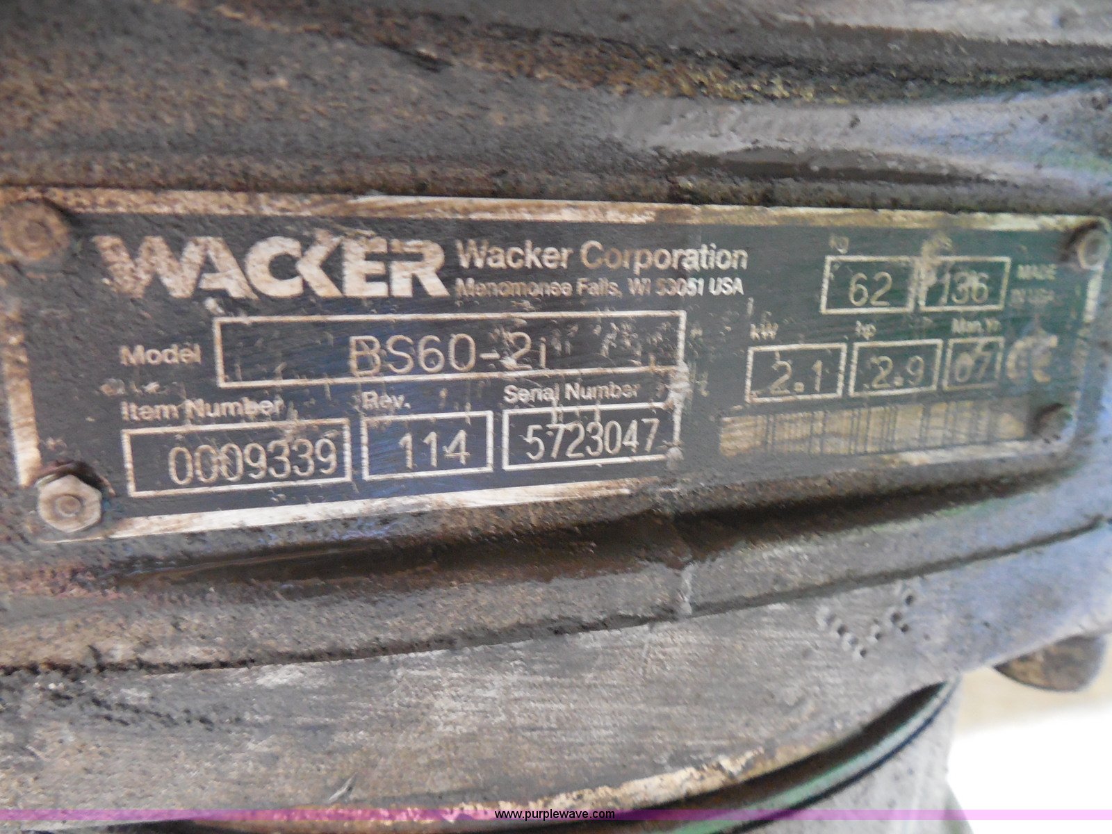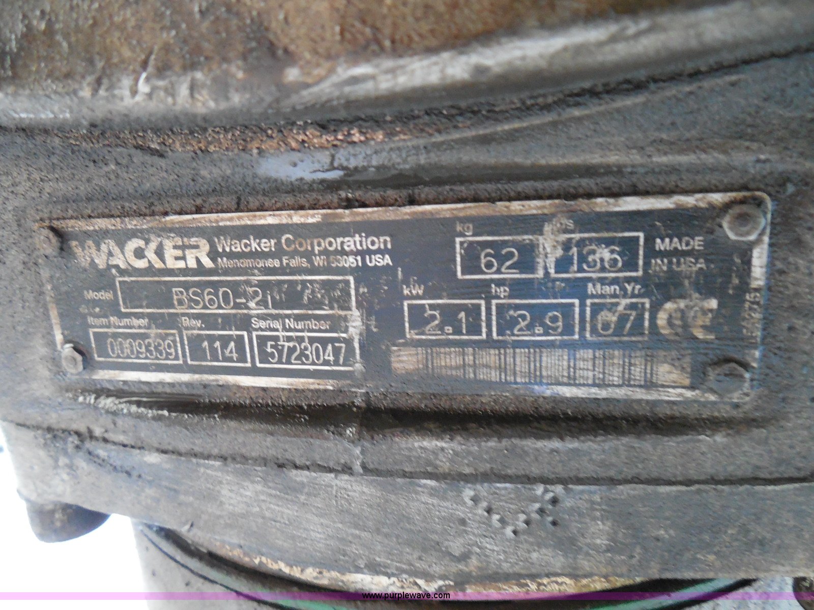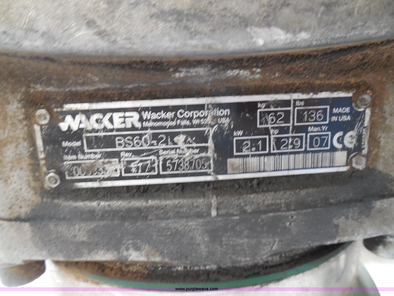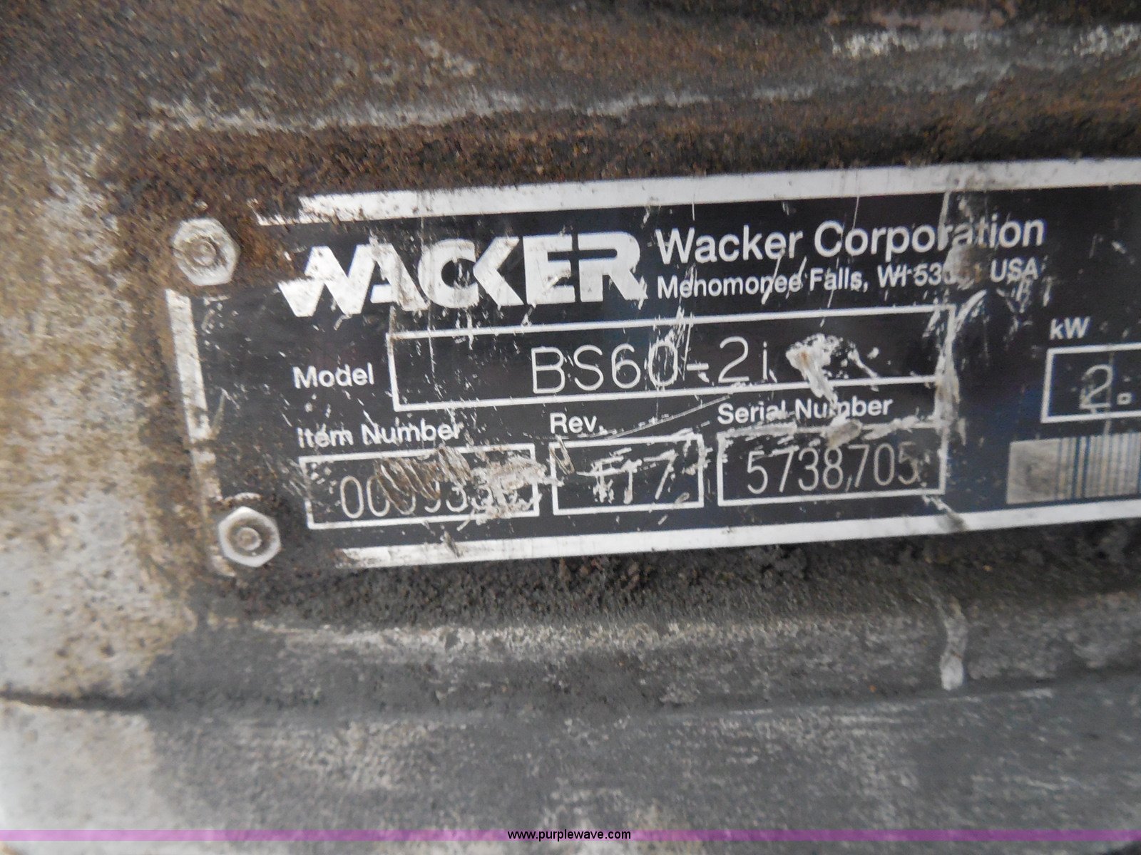 Purple Wave is selling a used Walk Behind Compactor in Kansas. This item is a (2) Wacker compactors with the following: Models 08WM80 and BS60-21, 80 CC gas engines, 13"L x 9.5"W and 13"L x 10"W feet, Non-operational units, Serial 5738705, 5723047