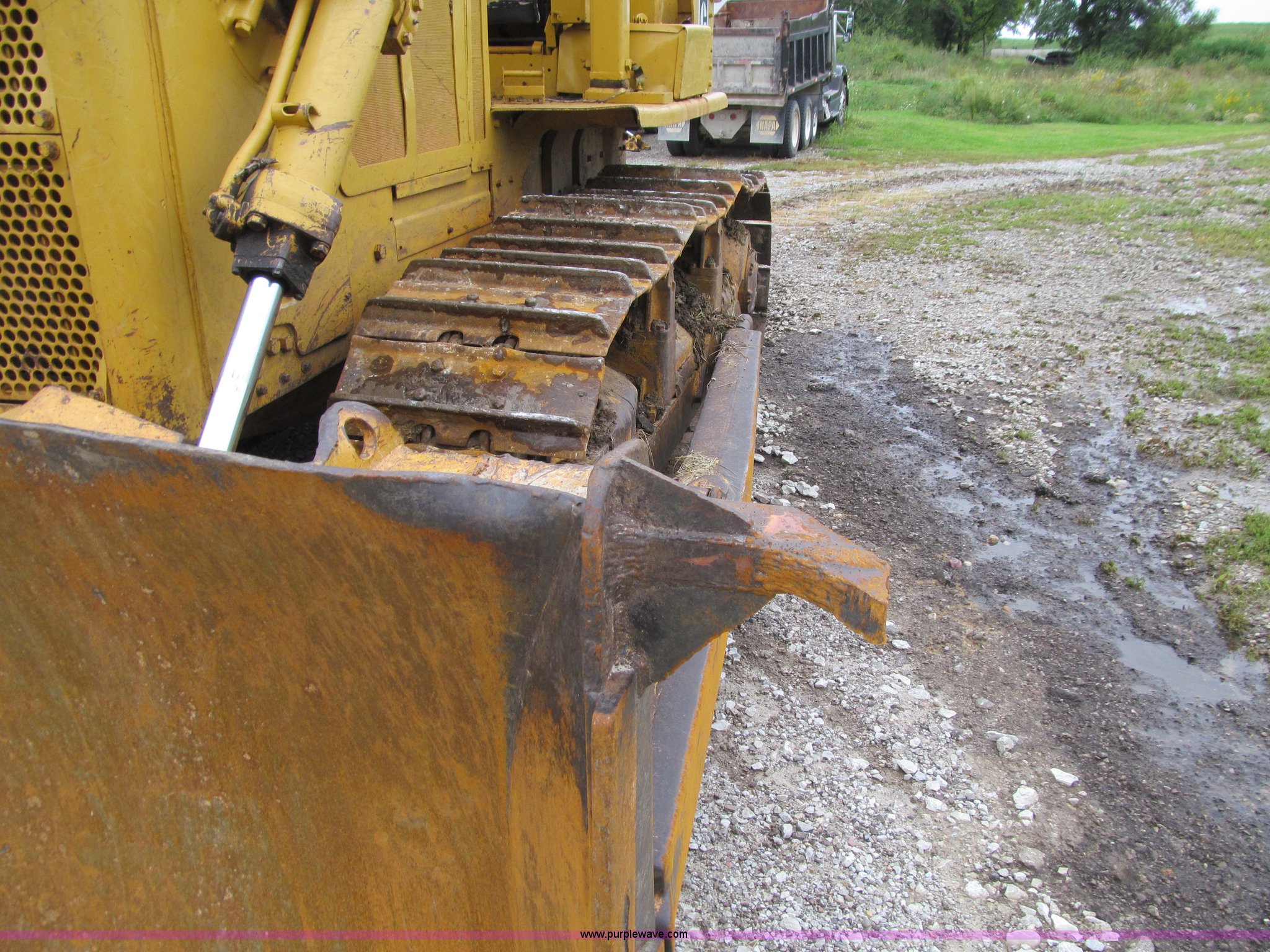 1974 Caterpillar D7F dozer. 891 hours on meter, Caterpillar D333 six cylinder diesel engine 180 HP, Serial 6N4841, Power shift transmission 3F-3R gears, Clutch brake steering, Canopy, Sweeps, Engine enclosures, 11'W dozer face, S-dozer, Tilt, Rear draw bar, Rear Caterpillar cable control unit, Reversible engine fan, SALT undercarriage, Six bottom roller, 24"W single grouser track pads, 41,560 lbs. base operating weight, Several bottom rollers with flanges missing, Carrrier rollers are very thin, Serial 94N07885. View repairs. View equipment video. Godden Construction. 3368 205th Street. Kellerton, IA 50133