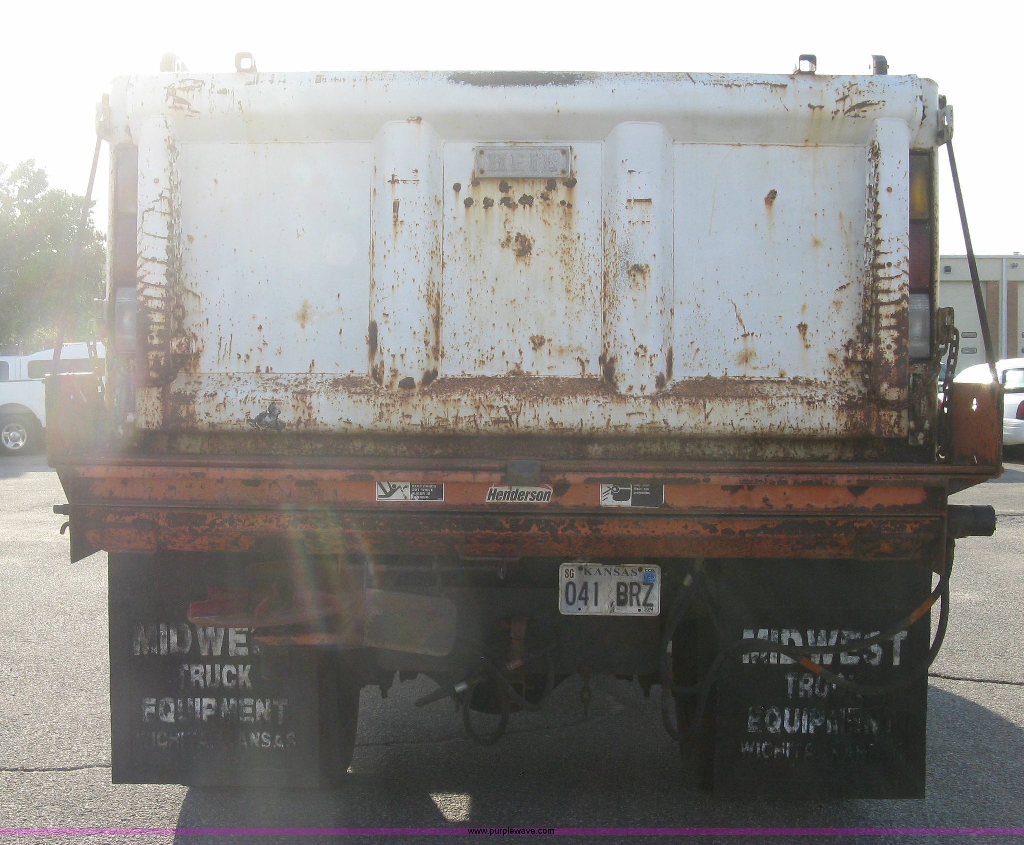 Purple Wave is selling a used Construction Dump Truck in Kansas. This item is a 2001 GMC C7500 dump truck with the following: 70,068 actual miles, Caterpillar 3126 7.2L six cylinder diesel engine, Automatic transmission, AC and heat, AM/FM, Power windows, Power heated mirrors, Air suspension seat, Joystick plow, hoist, and spreader controls, PTO, Heil SL6YD9 dump bed, 9'L x 94"W, Air operated end gate, Flink 11' snow plow, Bolt-on cutting edge, Henderson rear bolt-on spreader, 6' x 96", Toolboxes, Dual 50 gallon fuel tanks, Rear exhaust, Pintel hitch, Trailer wiring, Spring suspension, Air brakes, 11R22.5 tires, GVWR 30,000 lbs, FAWR 11,000 lbs, RAWR 19,000 lbs, Unit# 5050