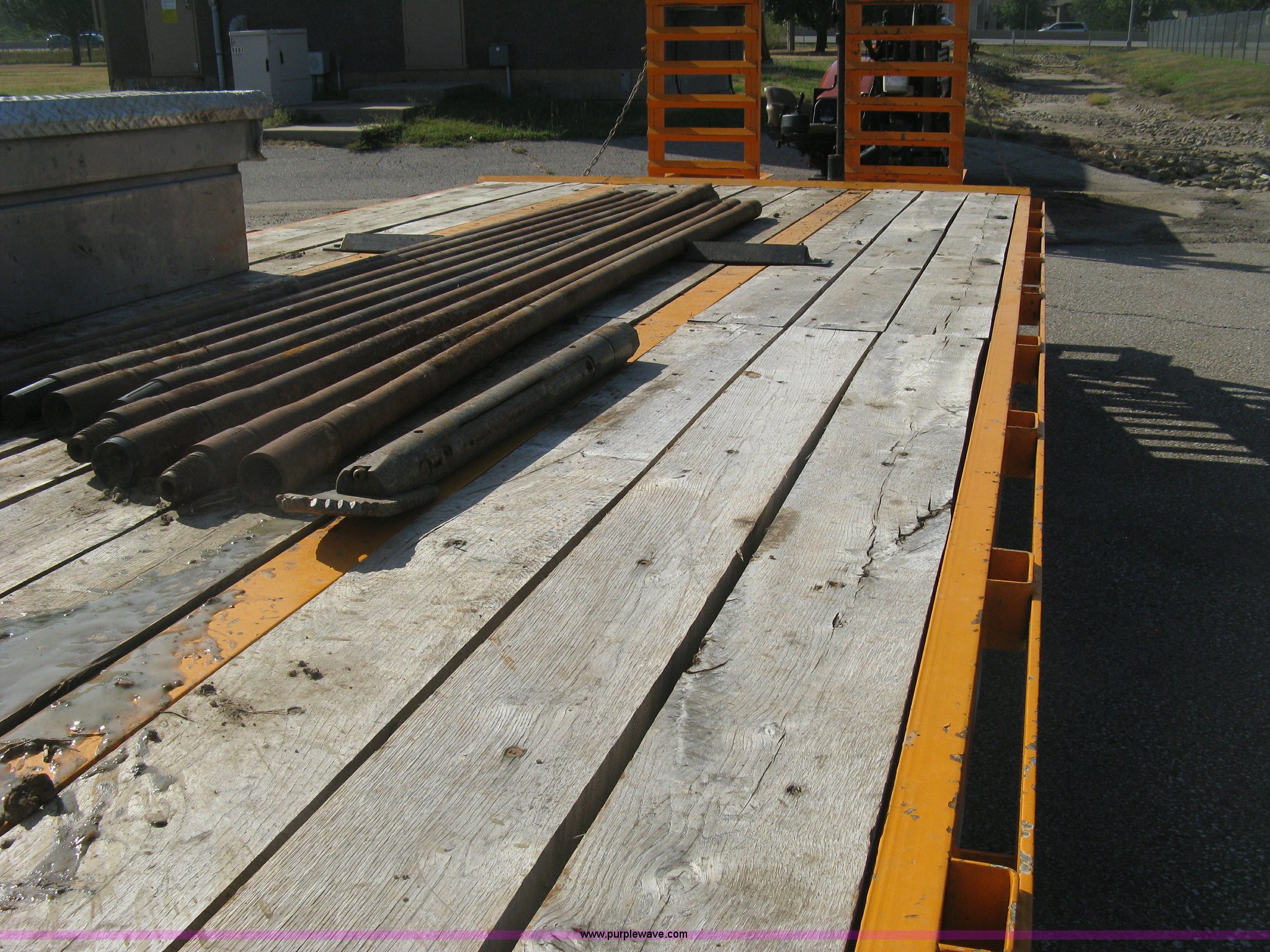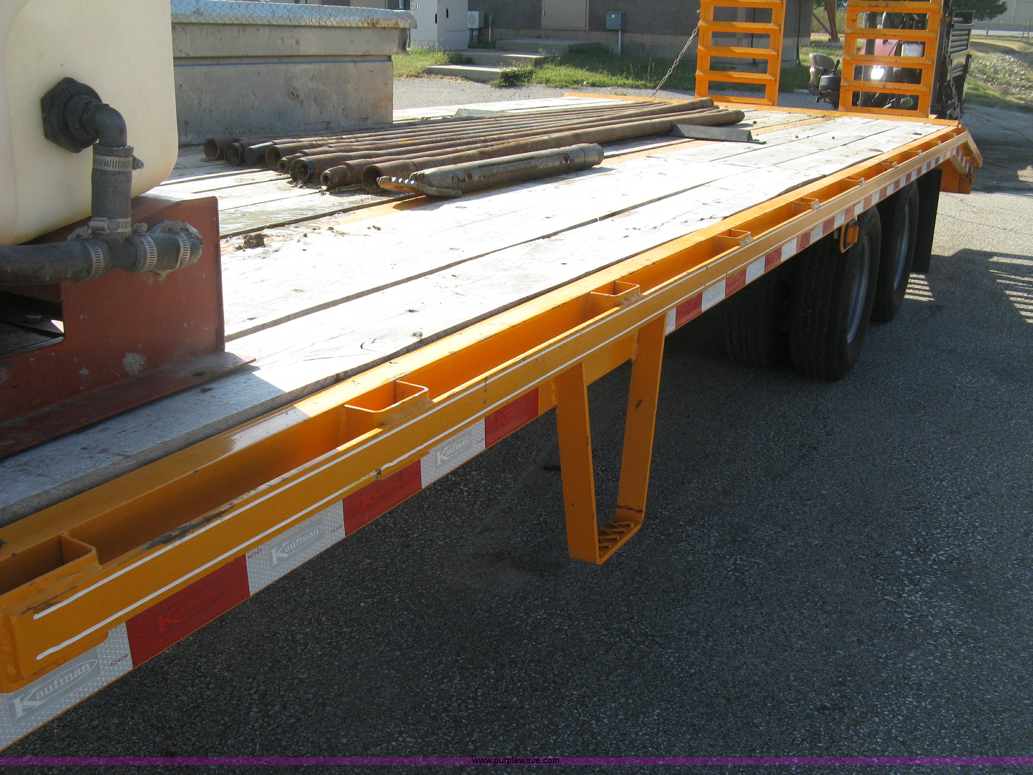 Purple Wave is selling a used Equip. Trailer in Kansas. This item is a 2013 Kaufman equipment trailer with the following: 20'L x 8'W wood deck, 5'L steel dove tail, 9'L x 24"W folding ramps, Rub rails, Stake side pockets, Tongue chain box, Oil bath hubs, Adjustable pintle hitch, Two post landing gear, ST235/80R16 tires, Mud pump is not included, Unit# 2506
