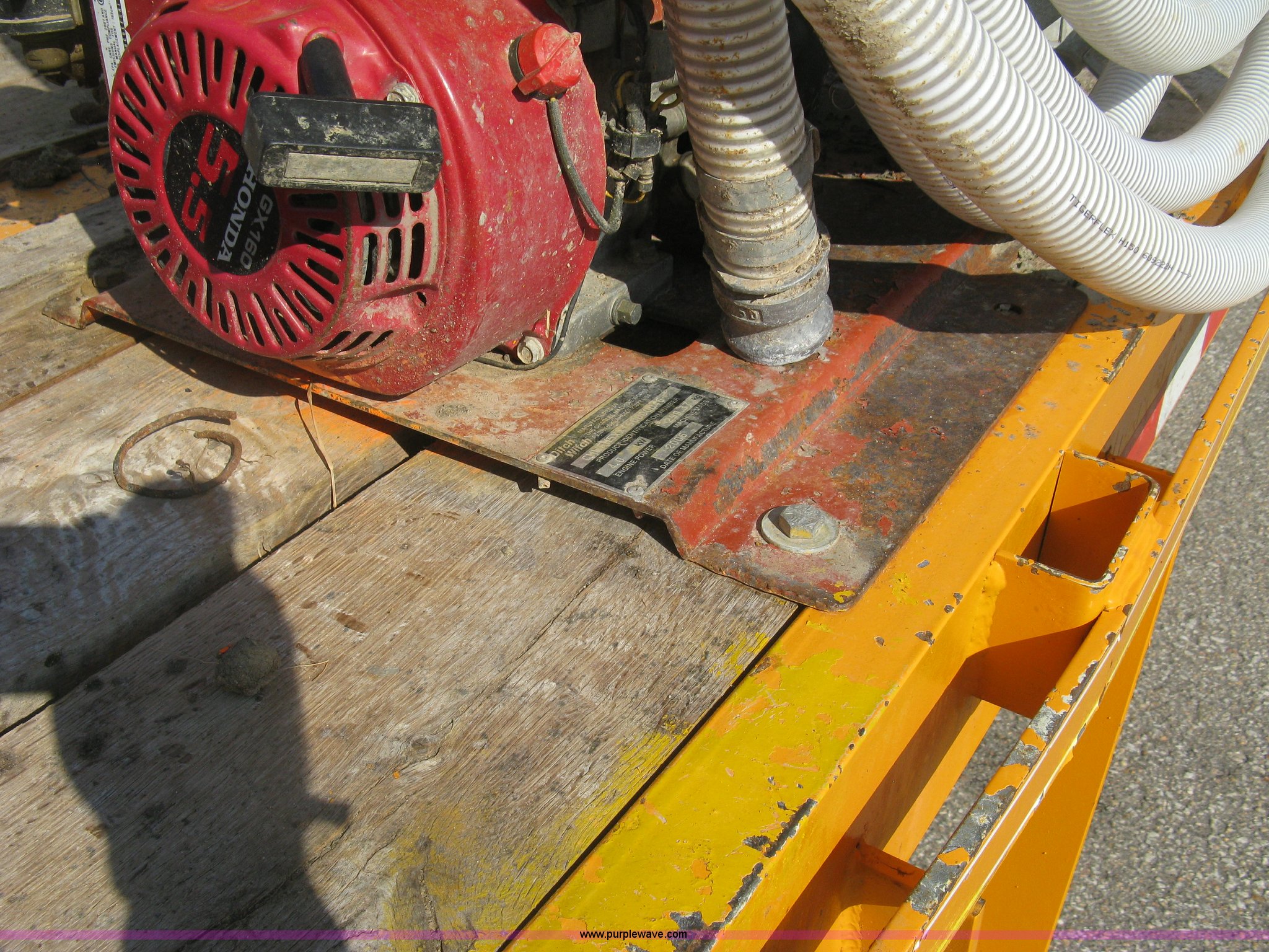 2013 Kaufman equipment trailer. 20'L x 8'W wood deck, 5'L steel dove tail, 9'L x 24"W folding ramps, Rub rails, Stake side pockets, Tongue chain box, Oil bath hubs, Adjustable pintle hitch, Two post landing gear, ST235/80R16 tires, Mud pump is not included, Unit# 2506. 5SHFH2523DB001053. KTA. 9401 E Kellog. Wichita, KS 67207