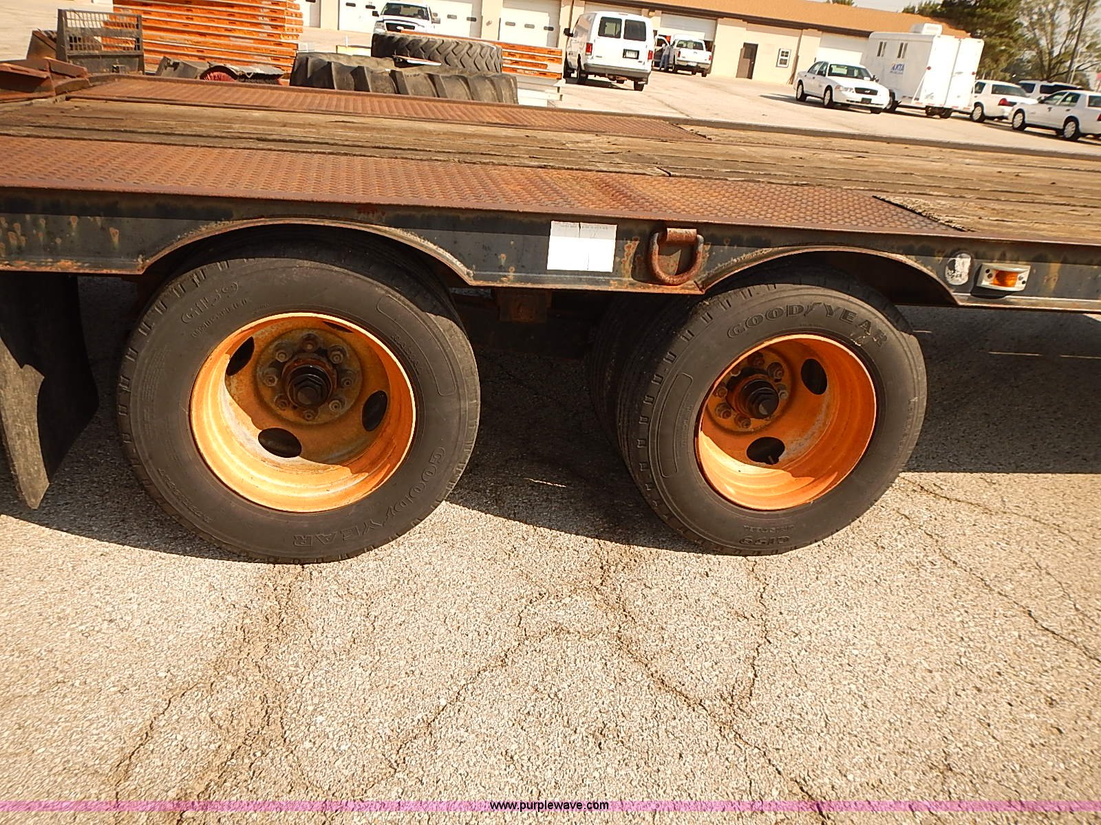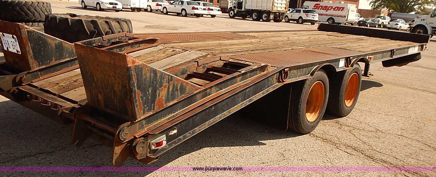 Purple Wave is selling a used Equip. Trailer in Kansas. This item is a 1991 Holden flatbed trailer with the following: 19'L x 8'W deck, Wood and steel construction, 5'L dove tail, 5'L fold-down ramps, 5'4"L tongue, 29' overall length, D-ring tie downs, 8.75R16.5 tires, GVWR 25,000 lbs, GAWR 10.000 lbs per axle, 5,000 lbs tare weight
