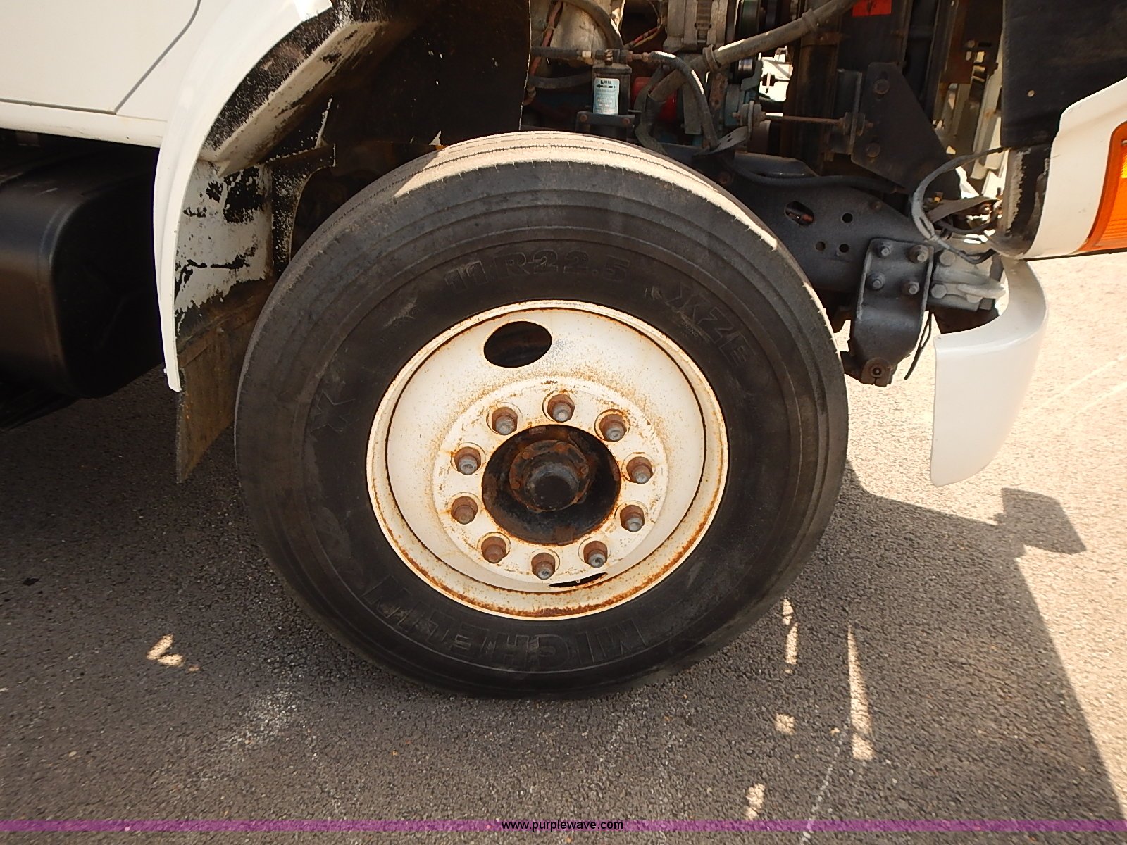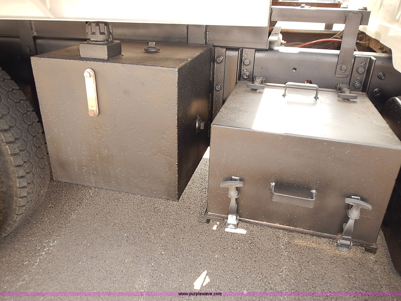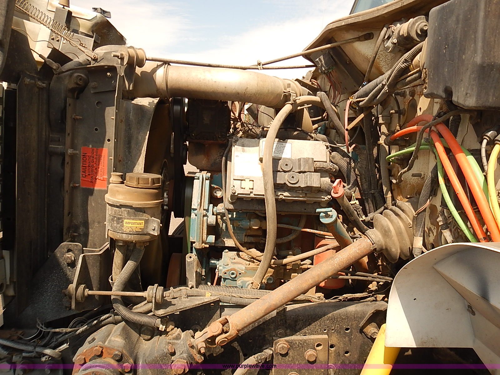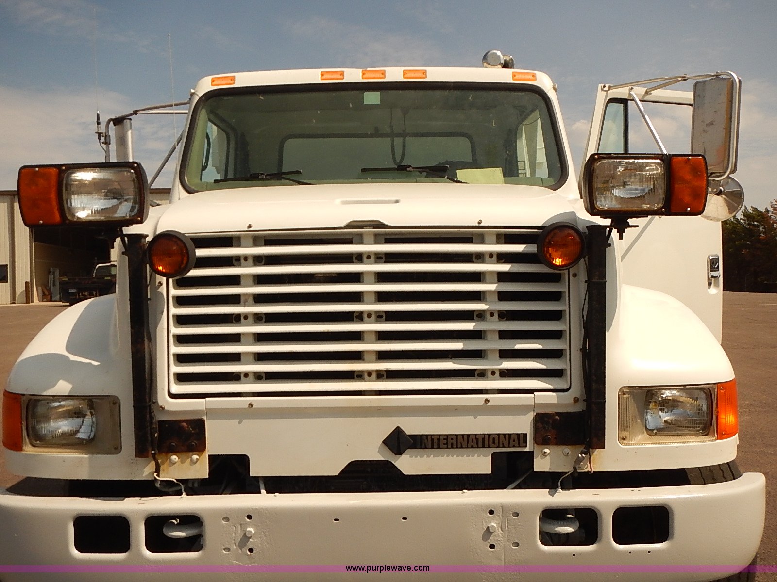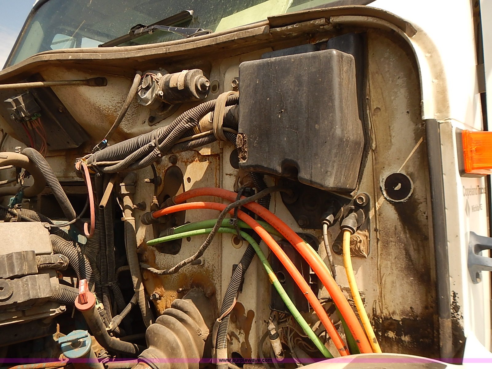 Purple Wave is selling a used Construction Dump Truck in Kansas. This item is a 2000 International 4900 dump truck with the following: 95,367 miles on odometer, 6,133 hours on meter, International DT530 8.7L L6 diesel engine, Automatic transmission, Locking differential, AC and heat, Cruise, AM/FM/cassette, Power windows, Heated mirrors, Chelsea PTO, Gresen GRS11 spreader control, 12'L x 8'W dump bed, Single ram three stage hoist, Air operated end gate, Rear hydraulic remotes, Front and rear tow hooks, Front work lights, Air horn, Block heater, Pintle hitch, Trailer wiring, Spring suspension, Air brakes, 11R22.5 tires, Maintenance records available