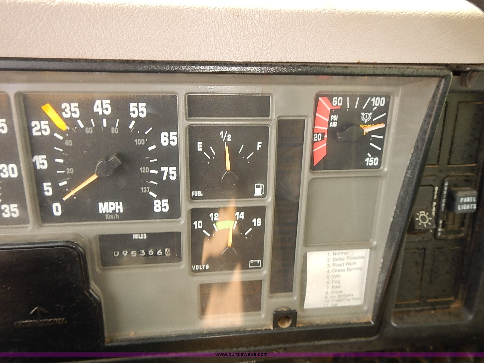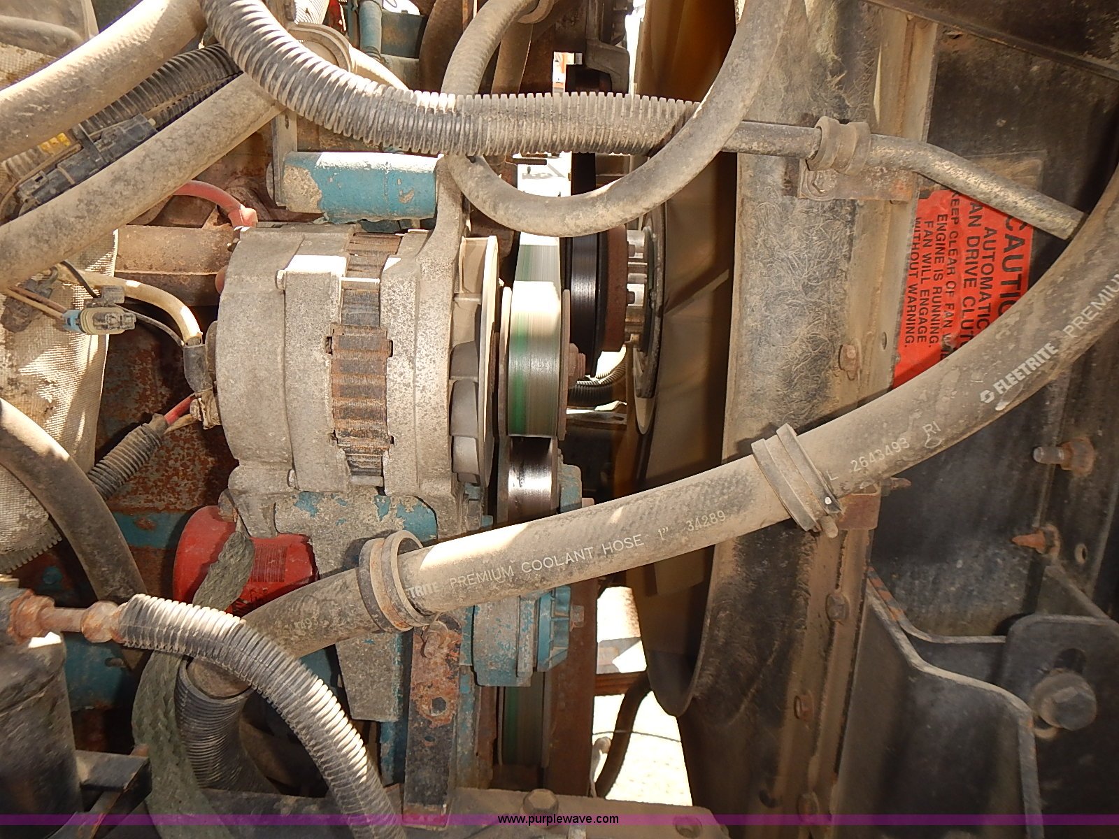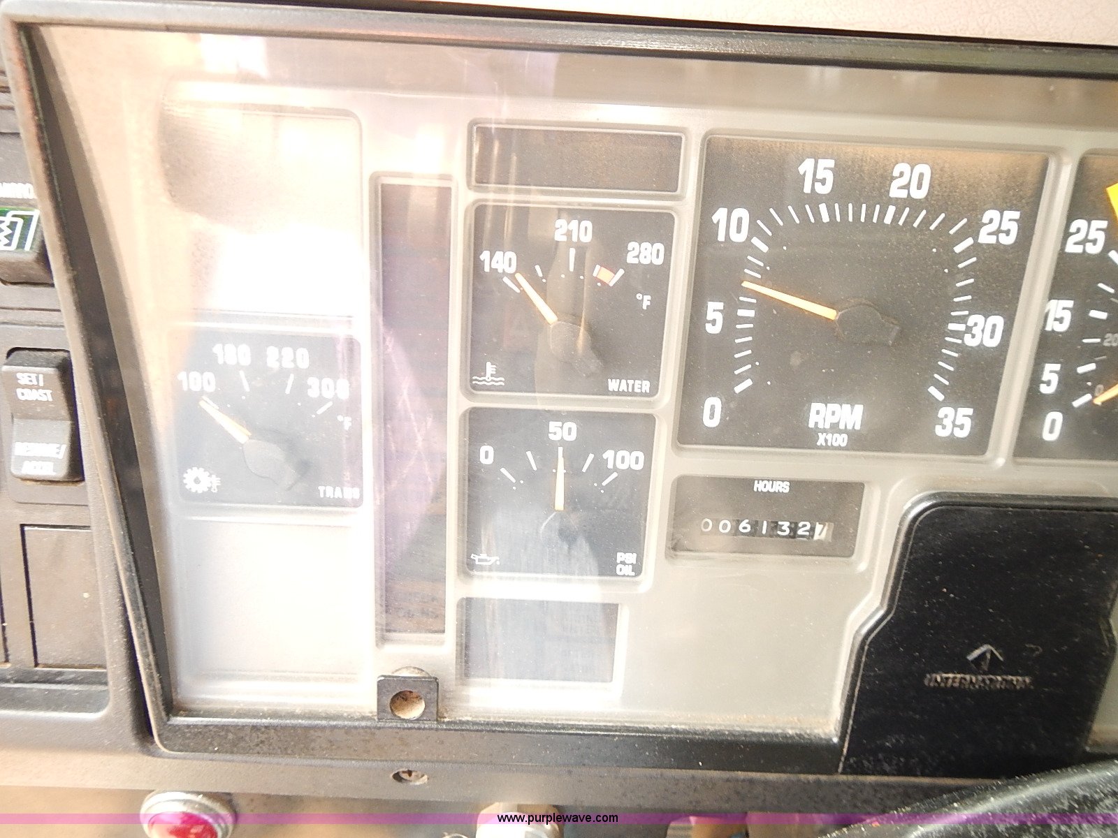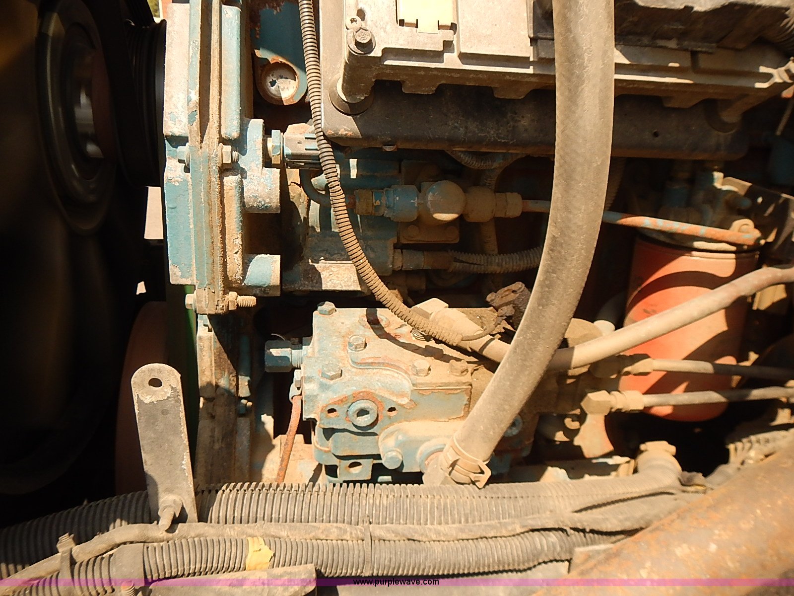Purple Wave is selling a used Construction Dump Truck in Kansas. This item is a 2000 International 4900 dump truck with the following: 95,367 miles on odometer, 6,133 hours on meter, International DT530 8.7L L6 diesel engine, Automatic transmission, Locking differential, AC and heat, Cruise, AM/FM/cassette, Power windows, Heated mirrors, Chelsea PTO, Gresen GRS11 spreader control, 12'L x 8'W dump bed, Single ram three stage hoist, Air operated end gate, Rear hydraulic remotes, Front and rear tow hooks, Front work lights, Air horn, Block heater, Pintle hitch, Trailer wiring, Spring suspension, Air brakes, 11R22.5 tires, Maintenance records available