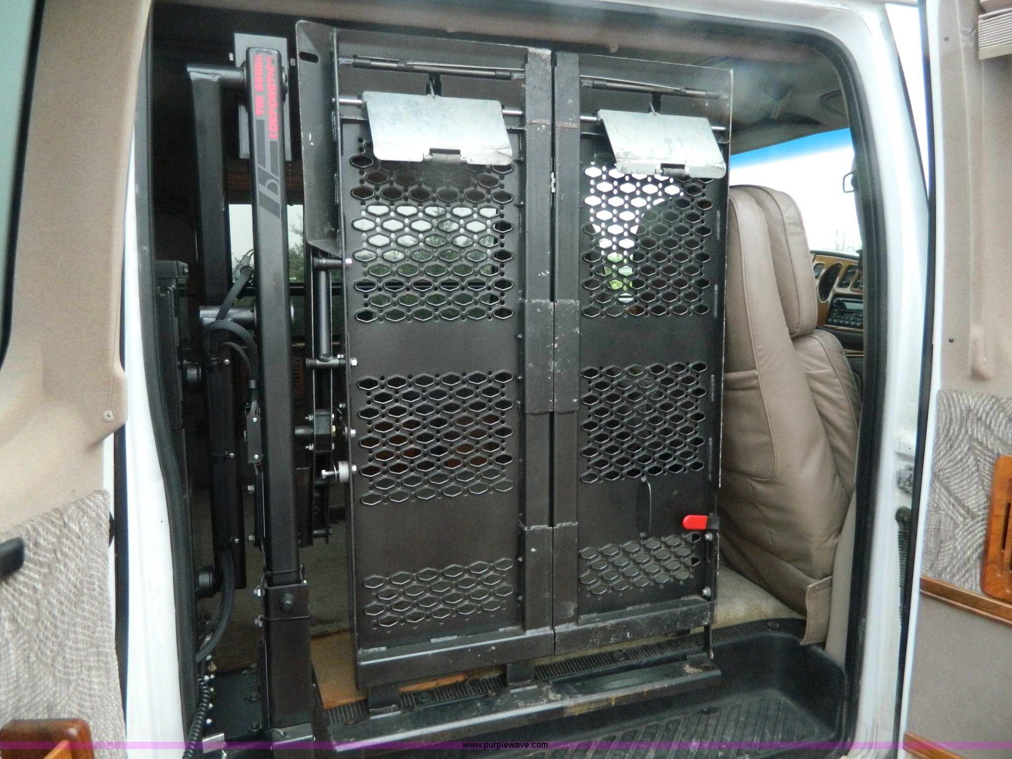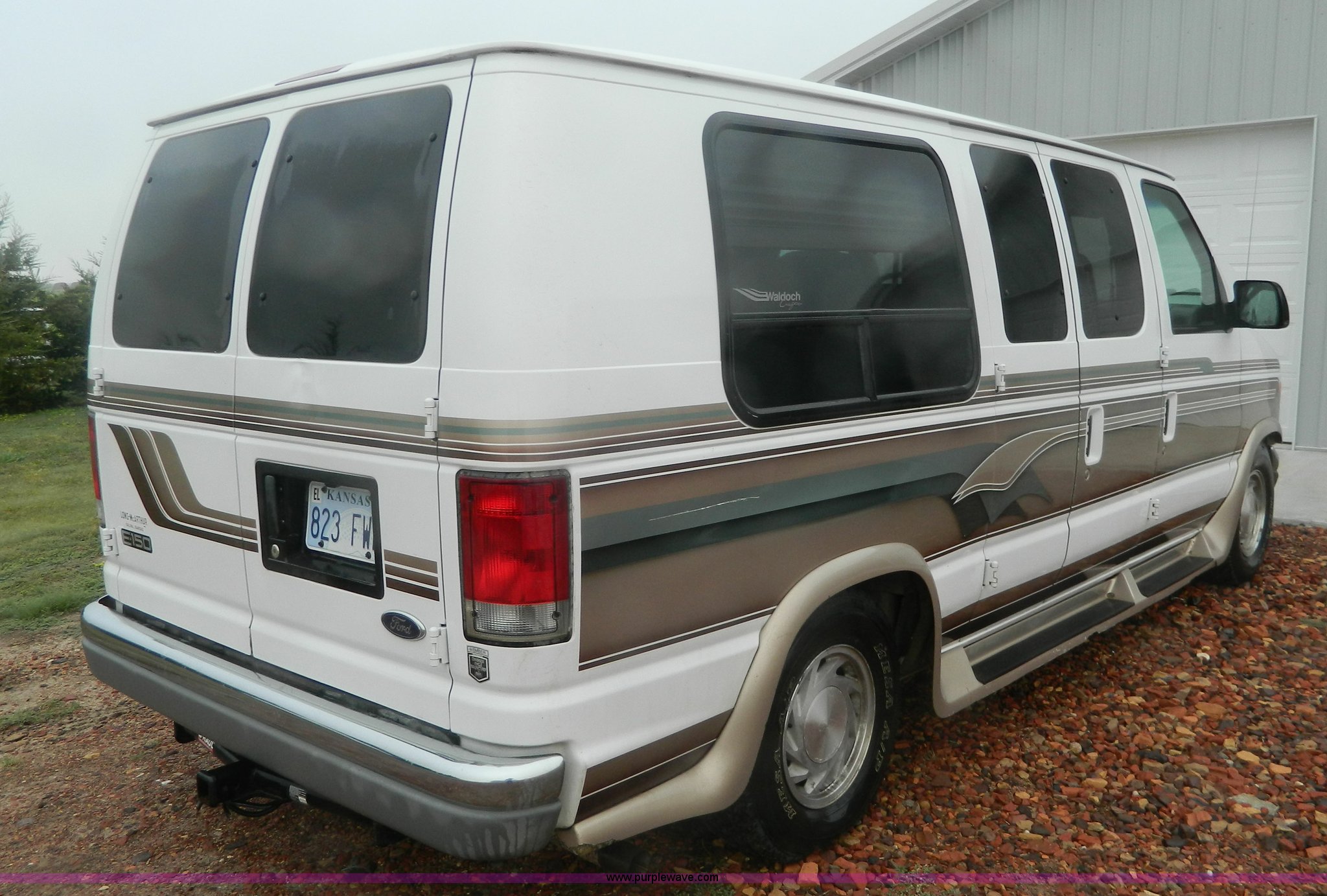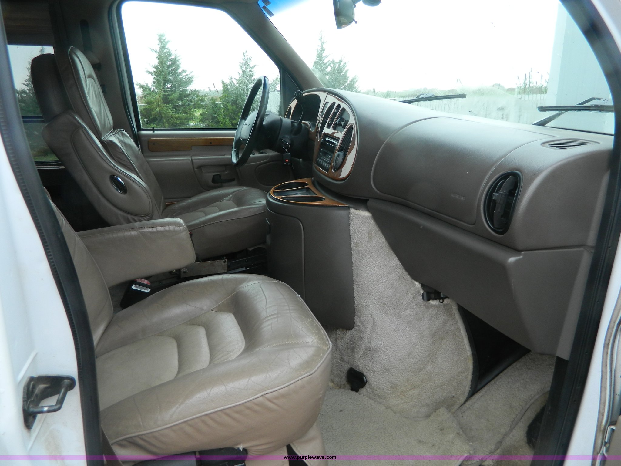 Purple Wave is selling a used 1/2 Ton Pickup or Van in Kansas. This item is a 1999 Ford Econoline E150 conversion van with the following: 124,029 actual miles, 5.4L V8 SOHC 16V gas engine, Automatic transmission, AC and heat, Tilt, Cruise, AM/FM/CD/cassette, Power windows, locks, mirrors, and seats, Leather interior, Waldoch conversion, Braun wheelchair lift, Wheelchair tie downs and seat belt, Receiver hitch, Trailer wiring, LT235/75R15 tires