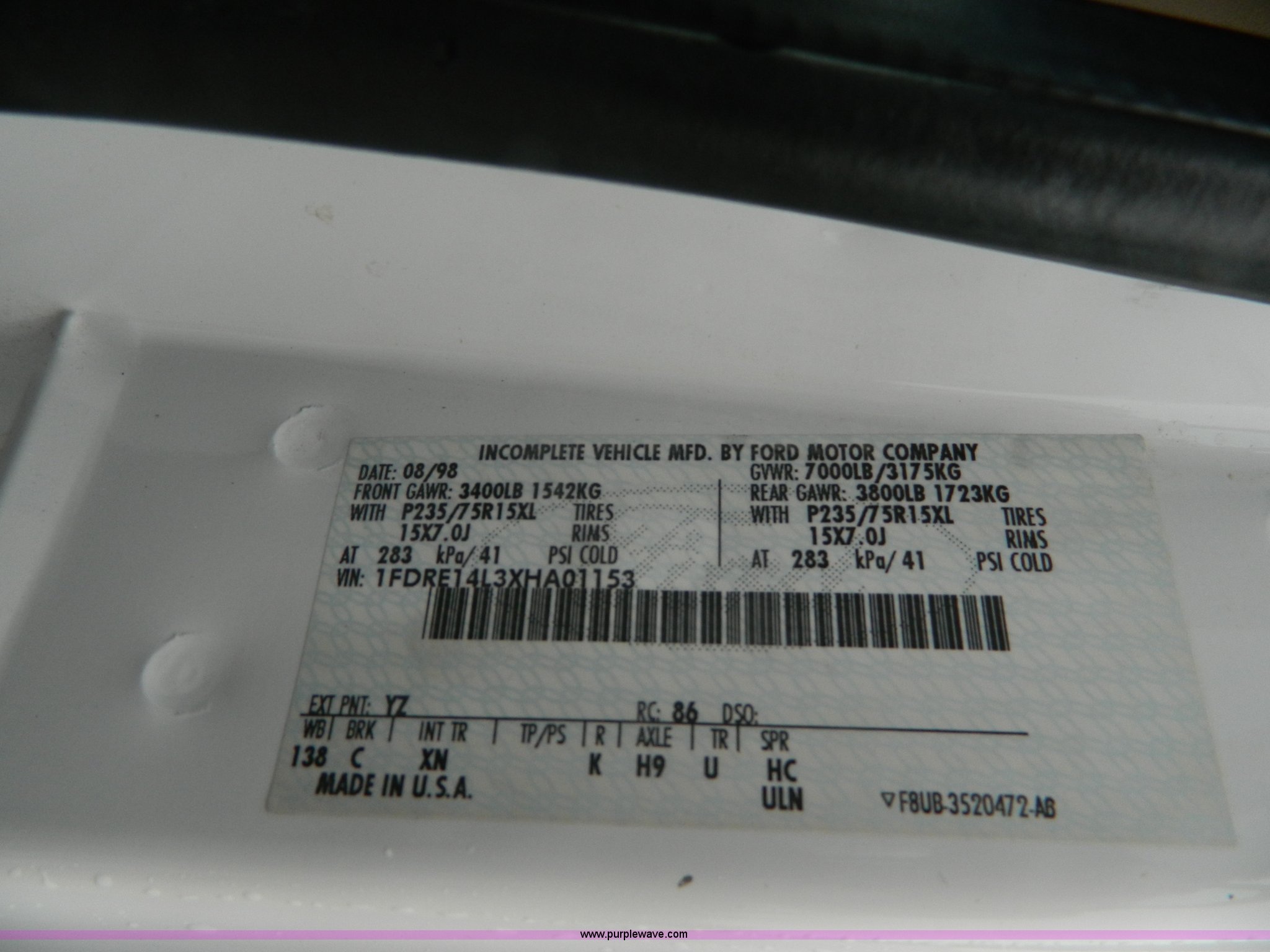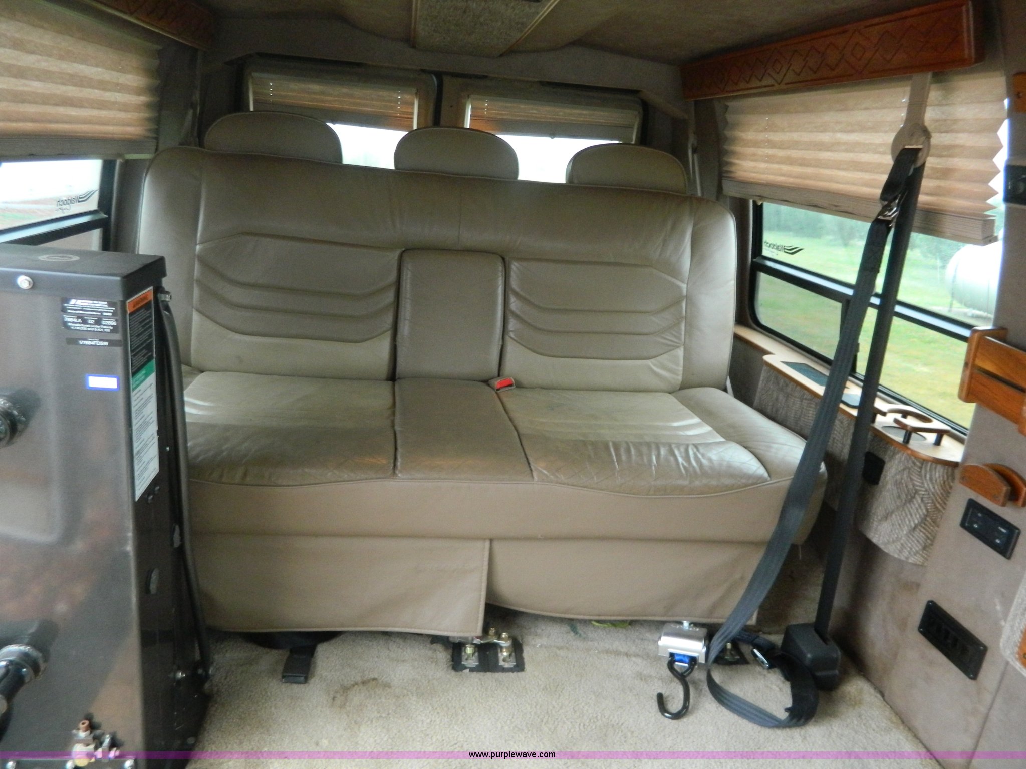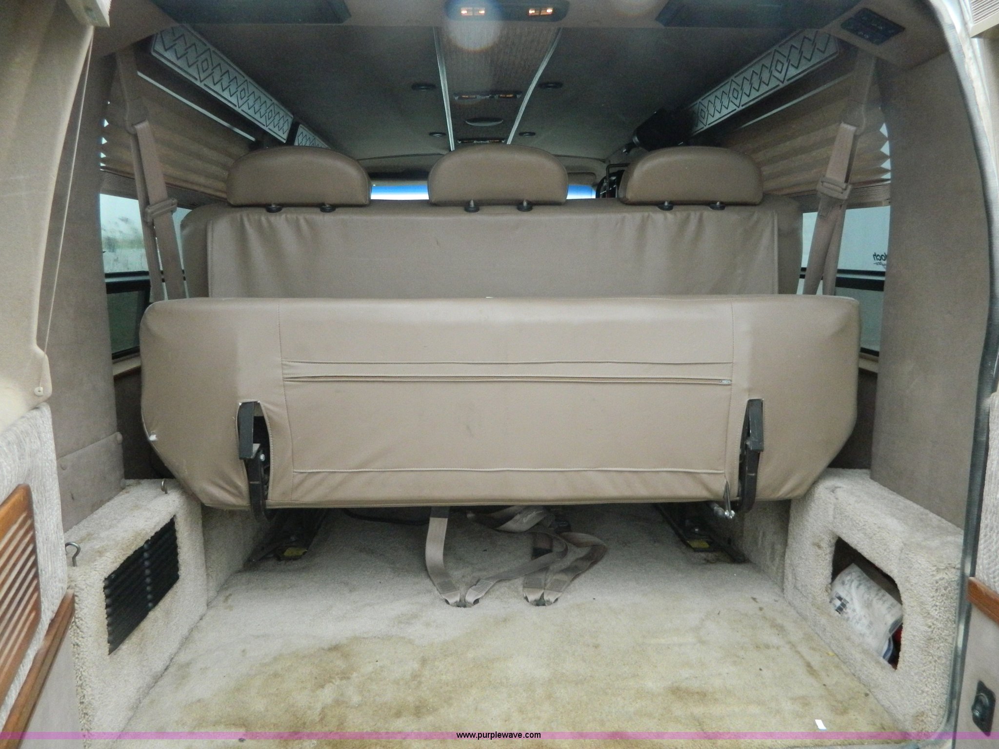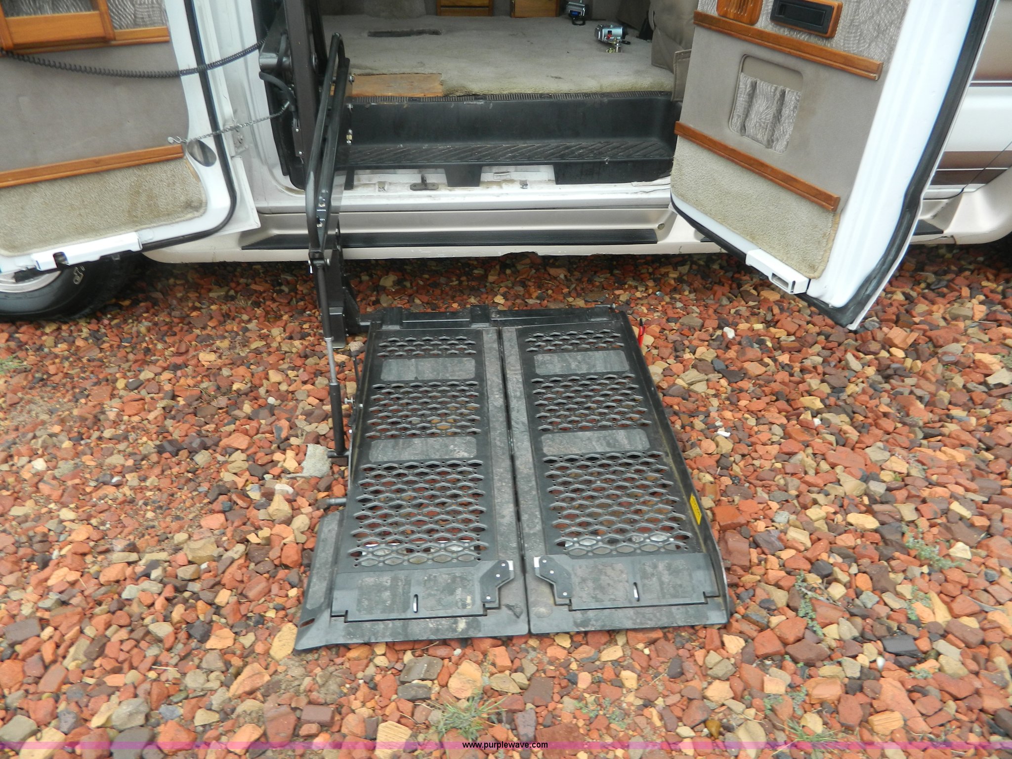 Purple Wave is selling a used 1/2 Ton Pickup or Van in Kansas. This item is a 1999 Ford Econoline E150 conversion van with the following: 124,029 actual miles, 5.4L V8 SOHC 16V gas engine, Automatic transmission, AC and heat, Tilt, Cruise, AM/FM/CD/cassette, Power windows, locks, mirrors, and seats, Leather interior, Waldoch conversion, Braun wheelchair lift, Wheelchair tie downs and seat belt, Receiver hitch, Trailer wiring, LT235/75R15 tires