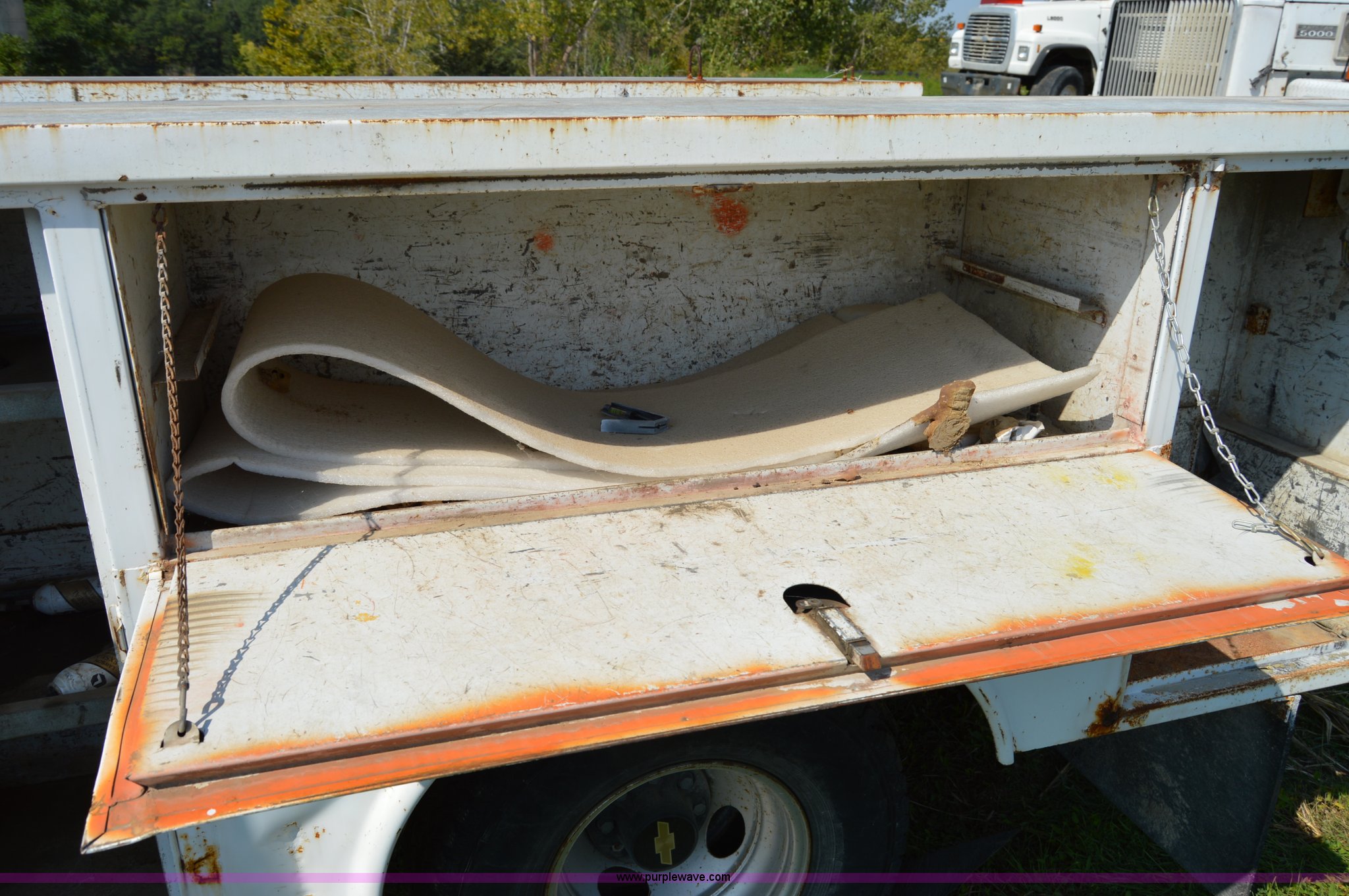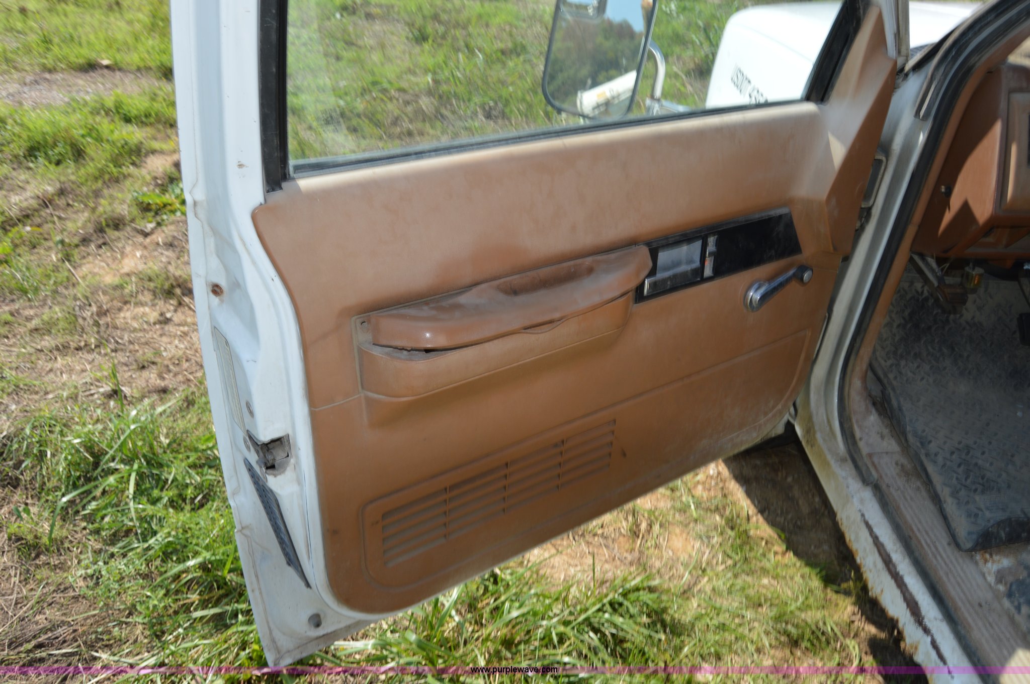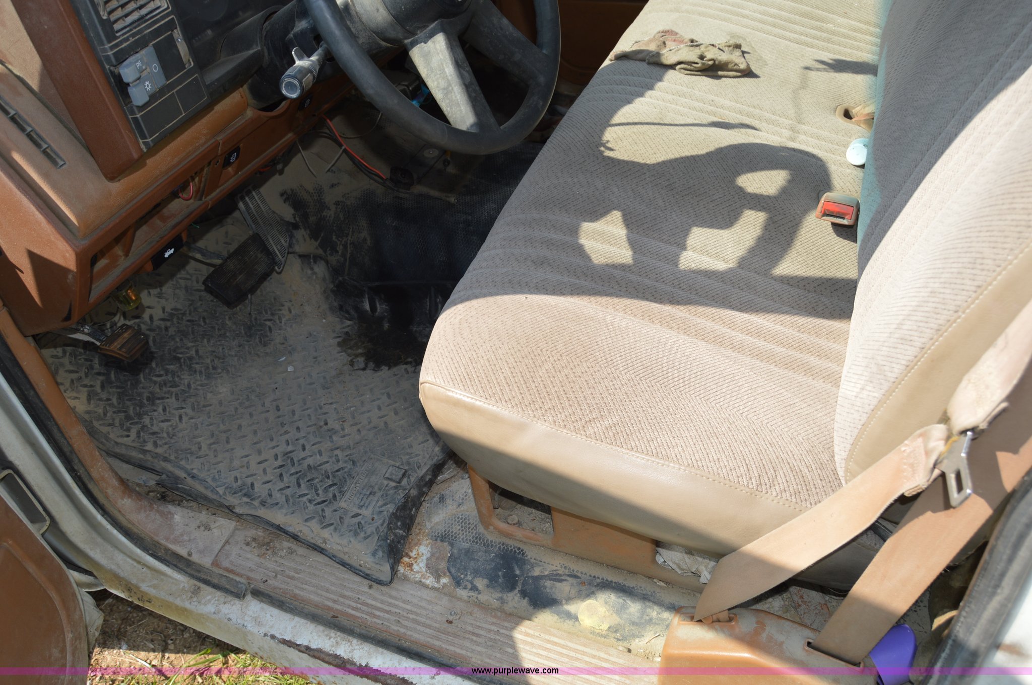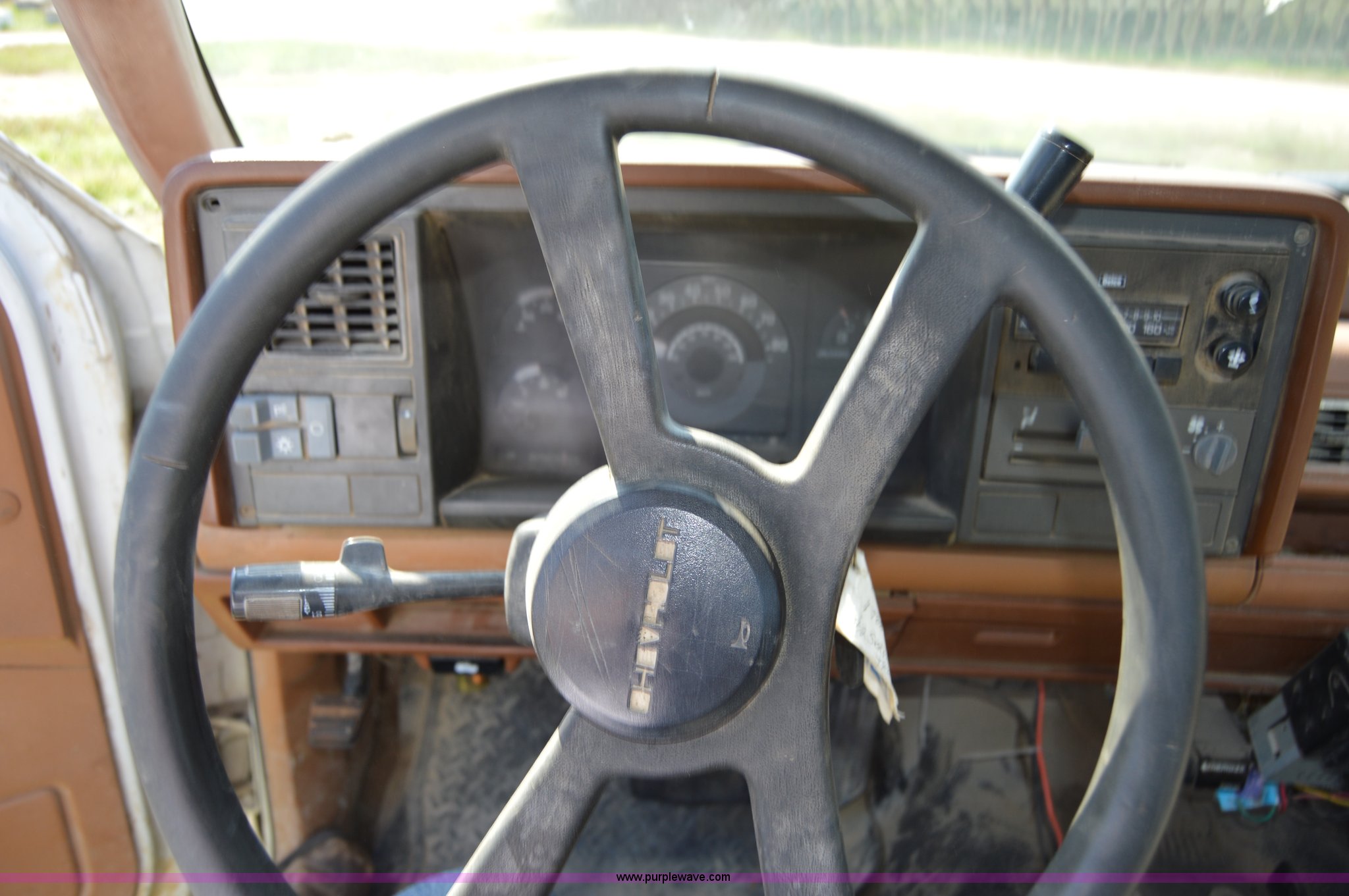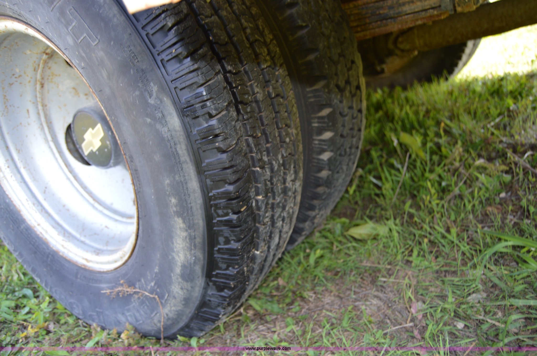 Purple Wave is selling a used Service Truck in Missouri. This item is a 1991 Chevrolet 3500 utility truck with the following: 47,500 miles on odometer, 5.7L V8 OHV 16V gas engine, Automatic transmission, Heat, AM/FM, Manual windows and locks, Cloth interior, 235/85R16 tires, Interior/exterior cosmetic damage, Dead battery, Turns over but will not start, Unknown running condition, Rear tire has tread falling off, Toolbox not included