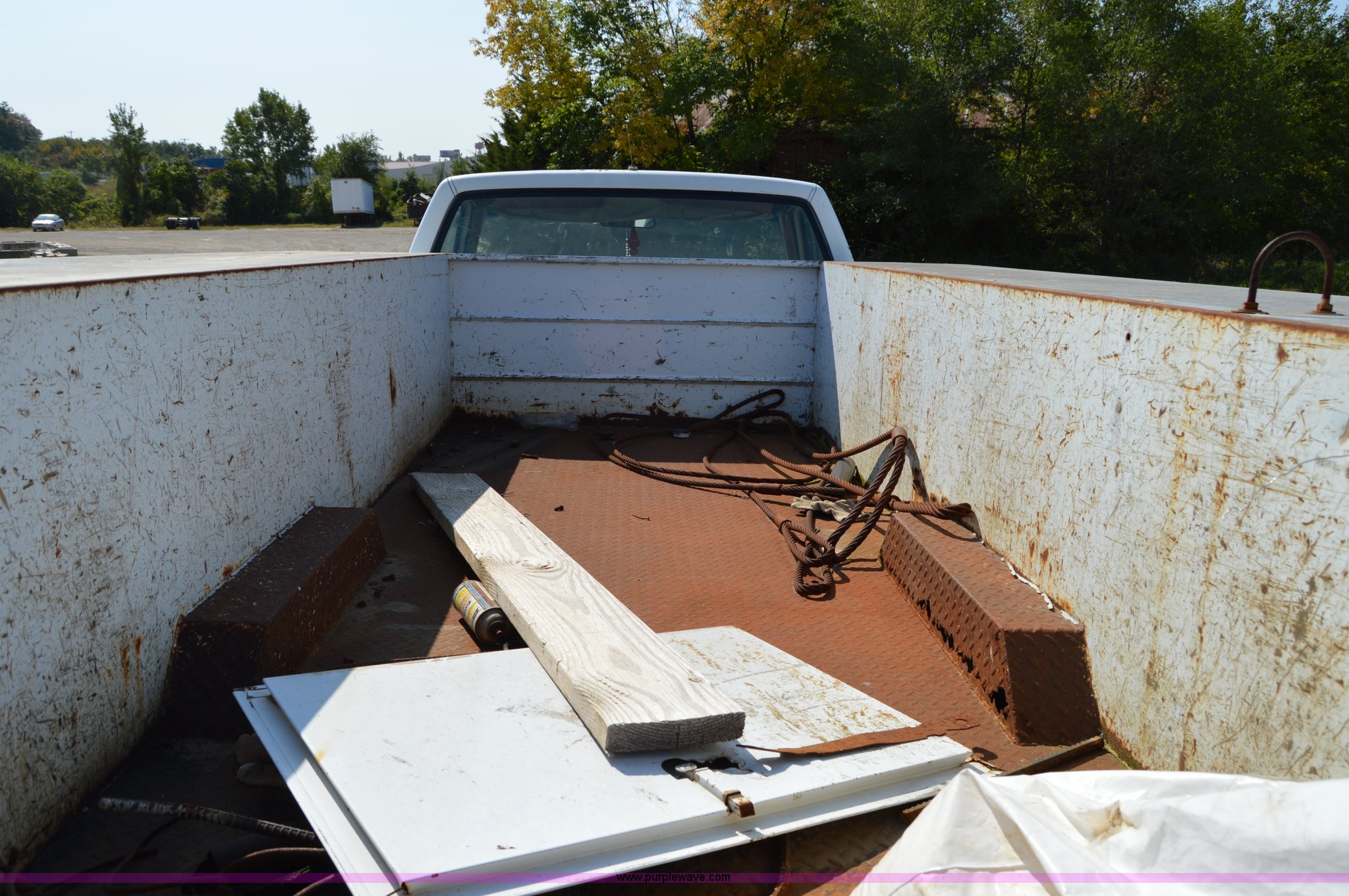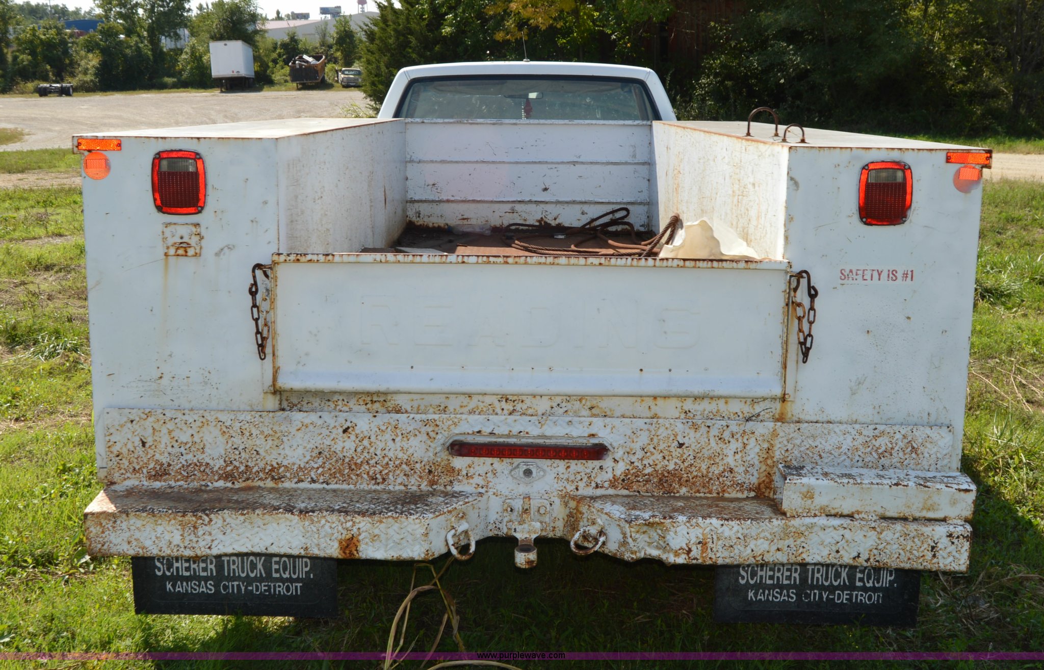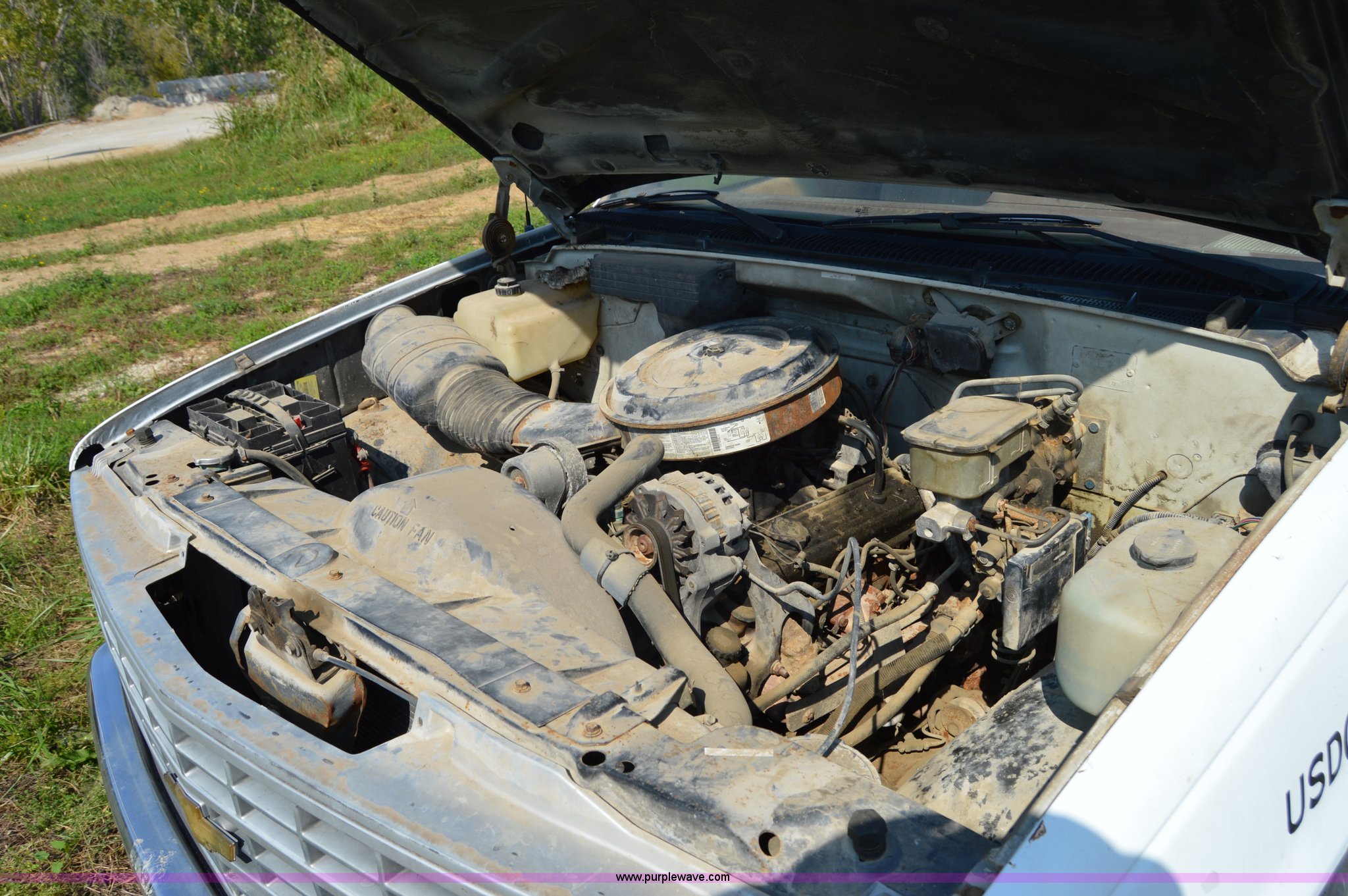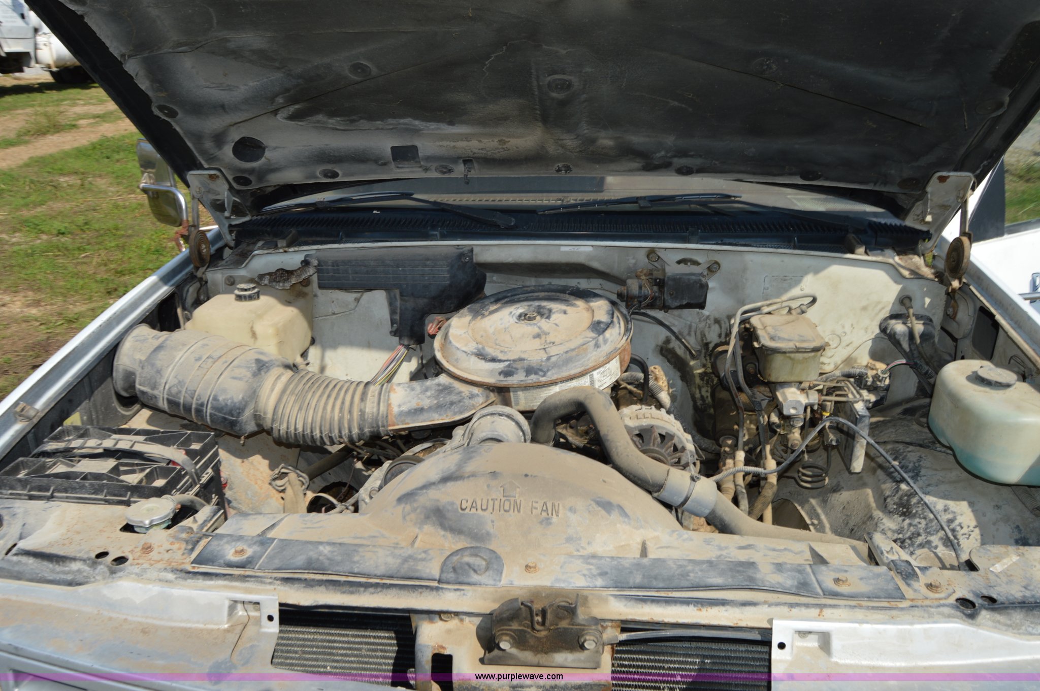 Purple Wave is selling a used Service Truck in Missouri. This item is a 1991 Chevrolet 3500 utility truck with the following: 47,500 miles on odometer, 5.7L V8 OHV 16V gas engine, Automatic transmission, Heat, AM/FM, Manual windows and locks, Cloth interior, 235/85R16 tires, Interior/exterior cosmetic damage, Dead battery, Turns over but will not start, Unknown running condition, Rear tire has tread falling off, Toolbox not included