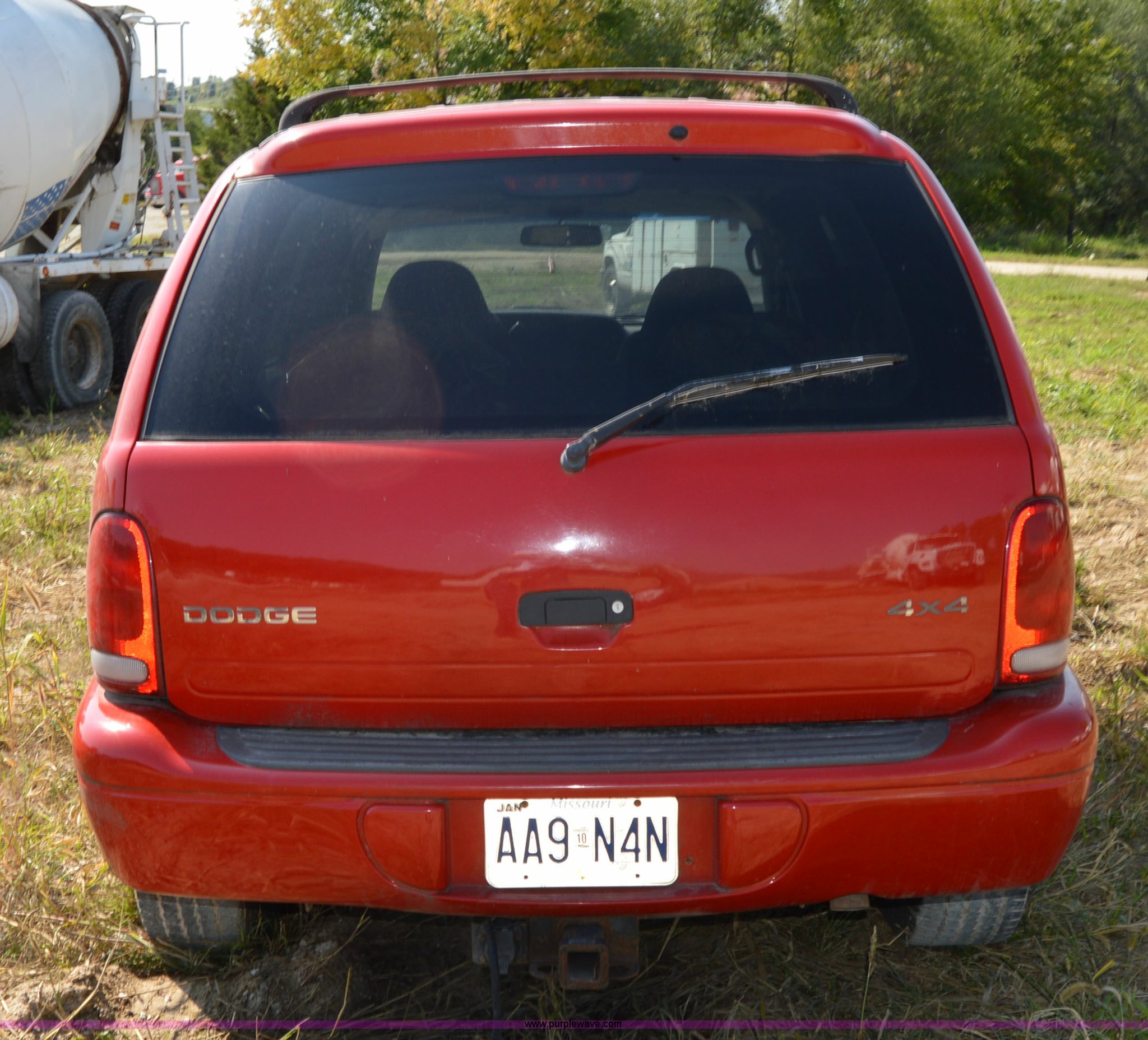 1998 Dodge Durango SLT SUV. Unknown miles on odometer, 5.2L V8 OHV 16V gas engine Non-operational, blown, Automatic transmission, Four wheel drive, AC and heat, Tilt, Cruise, AM/FM/cassette, Power windows, locks, and mirrors, Cloth interior, 31x10.50x15 tires, Interior/exterior cosmetic damage. 1B4HS28Y1WF166954. Platte County Ready Mix. 15475 Knighton Ave. Platte City, MO 64079