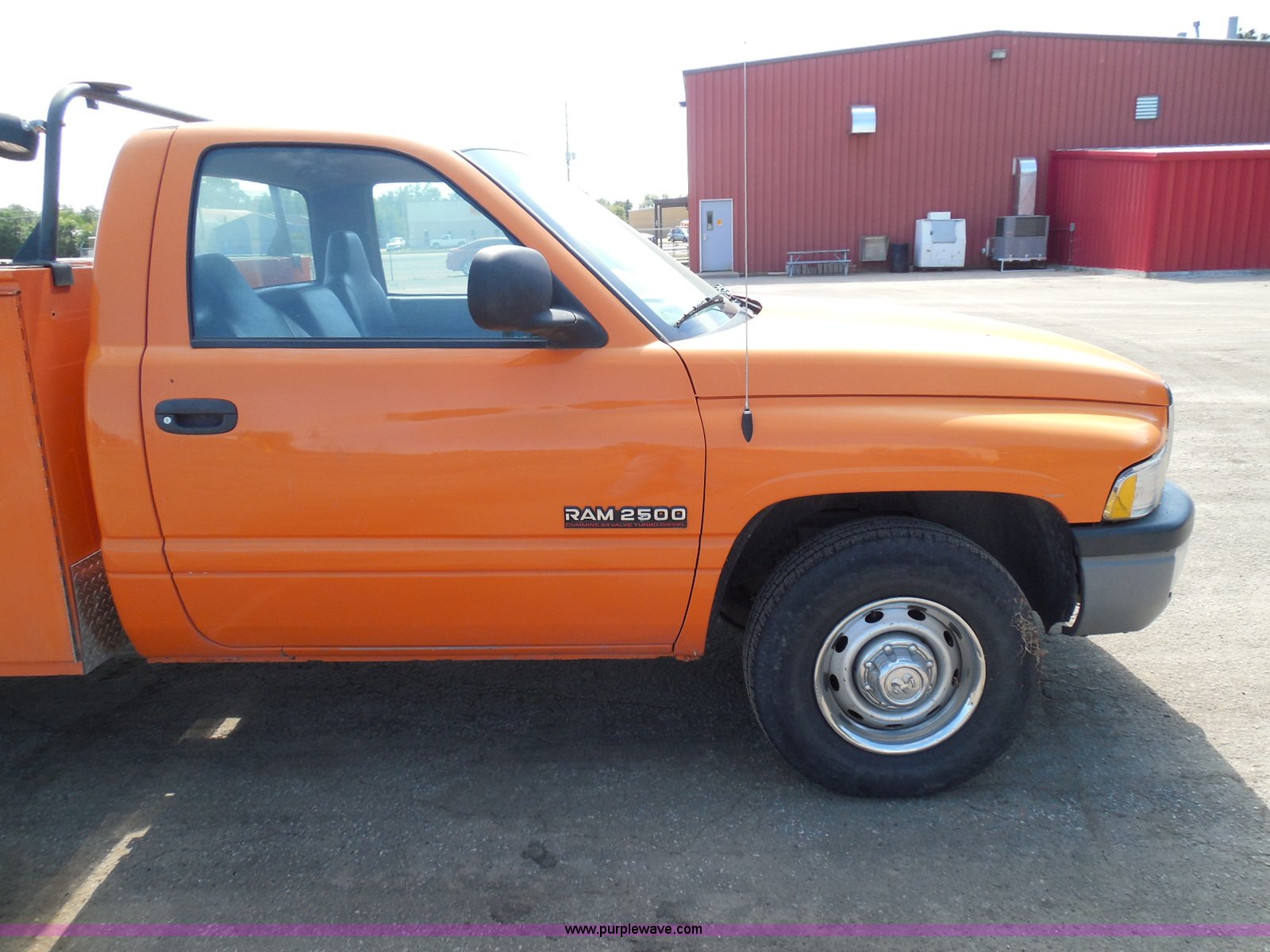 Purple Wave is selling a used Service Truck in Kansas. This item is a 2001 Dodge Ram 2500 utility truck with the following: 172,554 actual miles, 5.9L L6 OHV 24V turbo diesel engine, Automatic transmission, AC and heat, Tilt, Cruise, AM/FM/cassette, Manual windows and locks, Vinyl interior, Knapheide utility bed, 8'L x 78"W, Diamond plate floor, Six side tool compartments, Pintle/ball hitch, Trailer wiring, LT245/75R16 tires, Exterior scratches and dents, Rust, Paint faded, Front bumper damaged, Front tow hooks stretched, Interior cosmetic damage, KDOT ID 111-5031