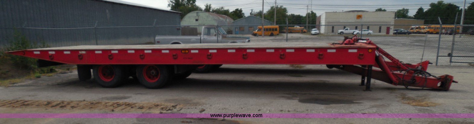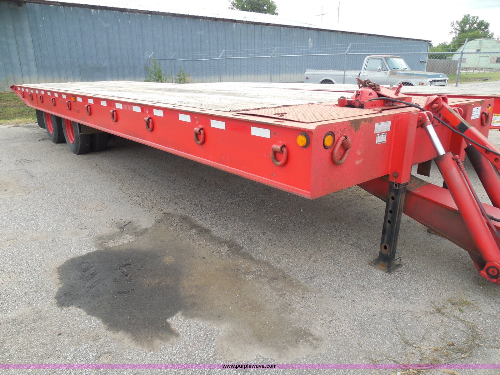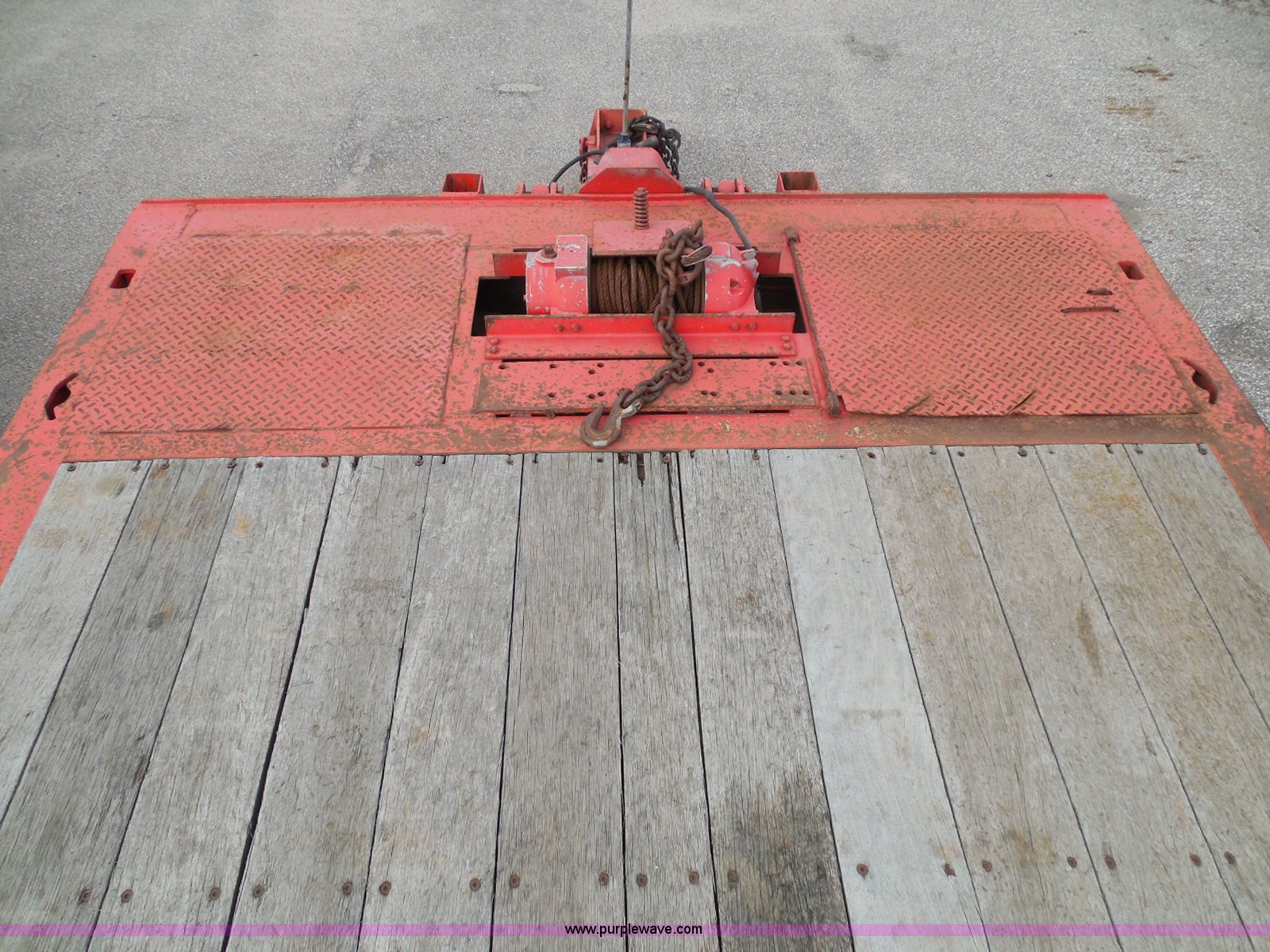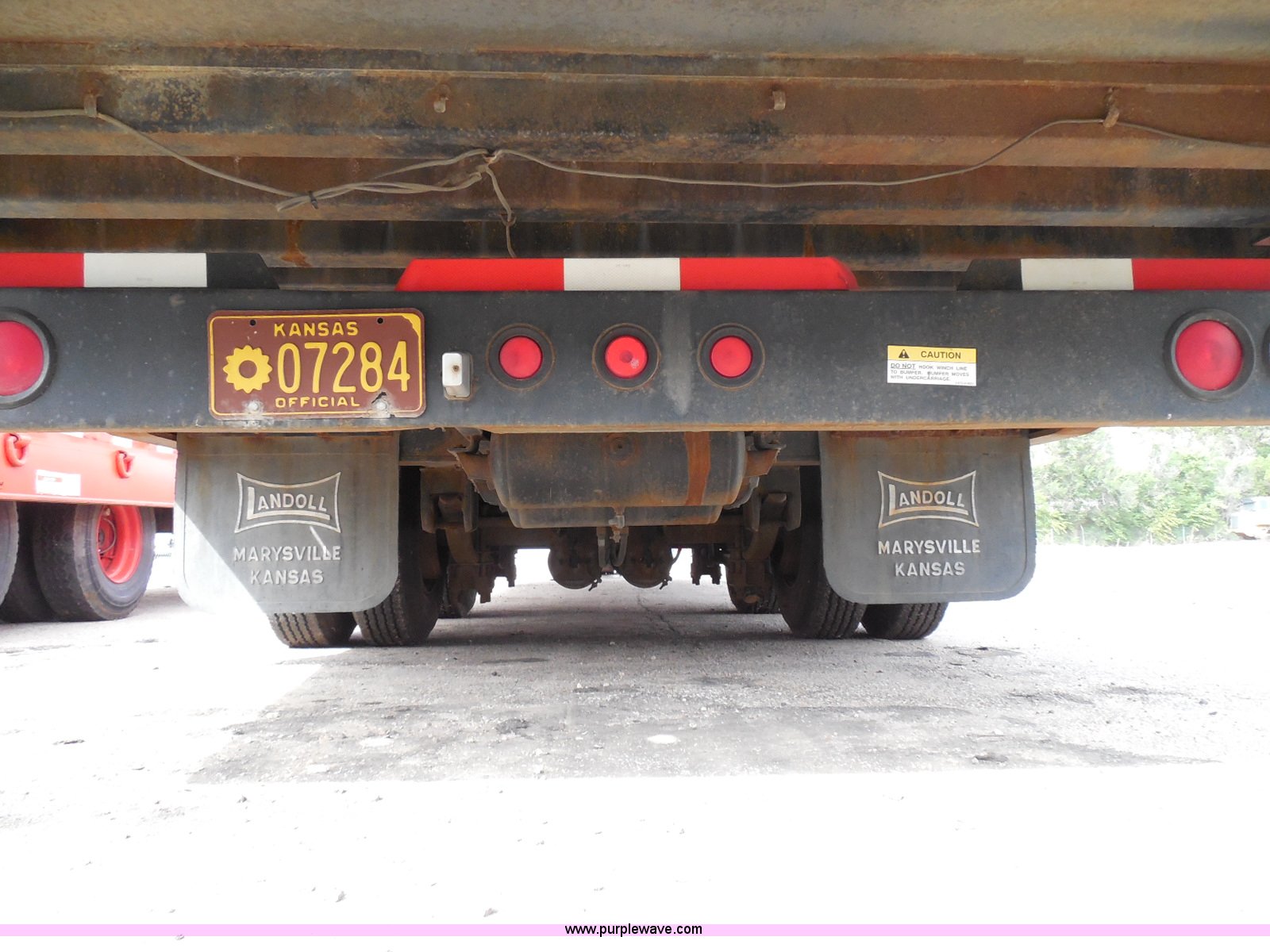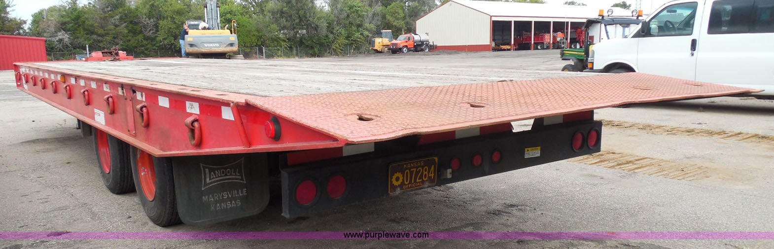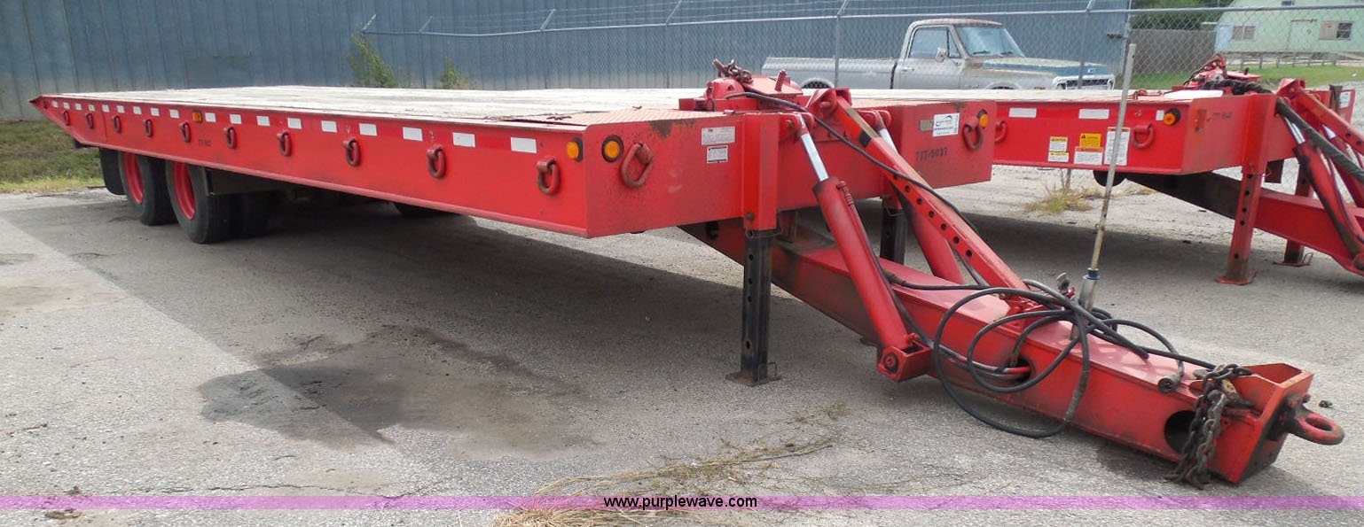 Purple Wave is selling a used Equip. Trailer in Kansas. This item is a 1998 Landoll 345-31 tilt deck equipment trailer with the following: 31'L x 102"W deck, D-ring tie downs, Side stake pockets, Wedge tail, Twin cylinder tilt, Hydraulic three lever ground controls, Braden cable winch, Chain well, Oil bath hubs, Spring suspension, Air brakes, 10R17.5 tires, Stringers rusted, Boards damaged, Unit needs work, KDOT ID 777-5037