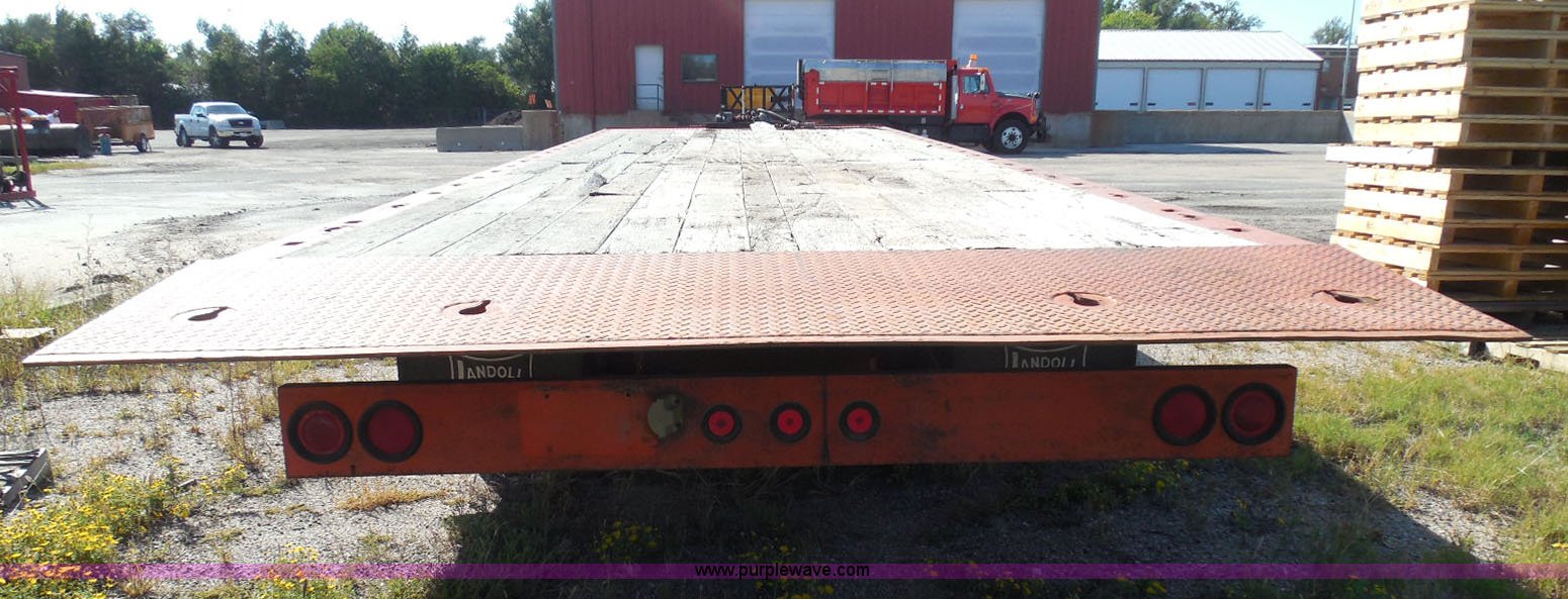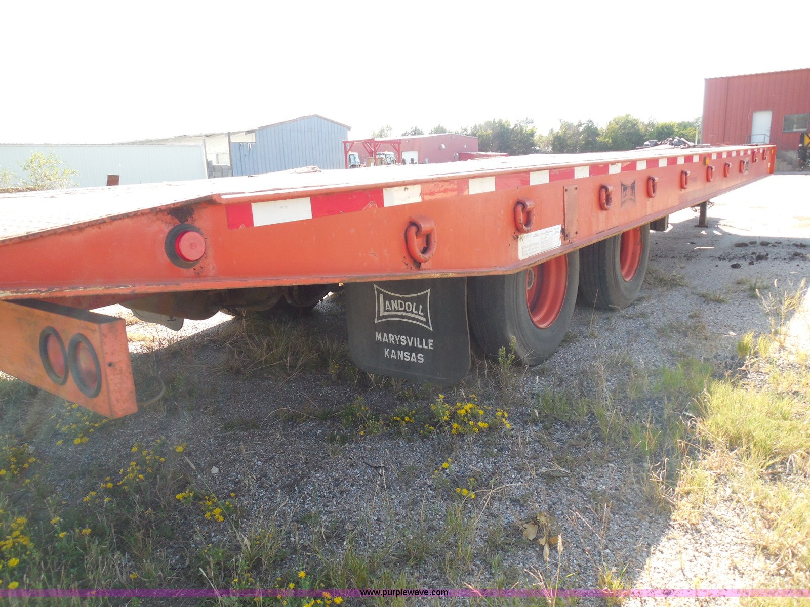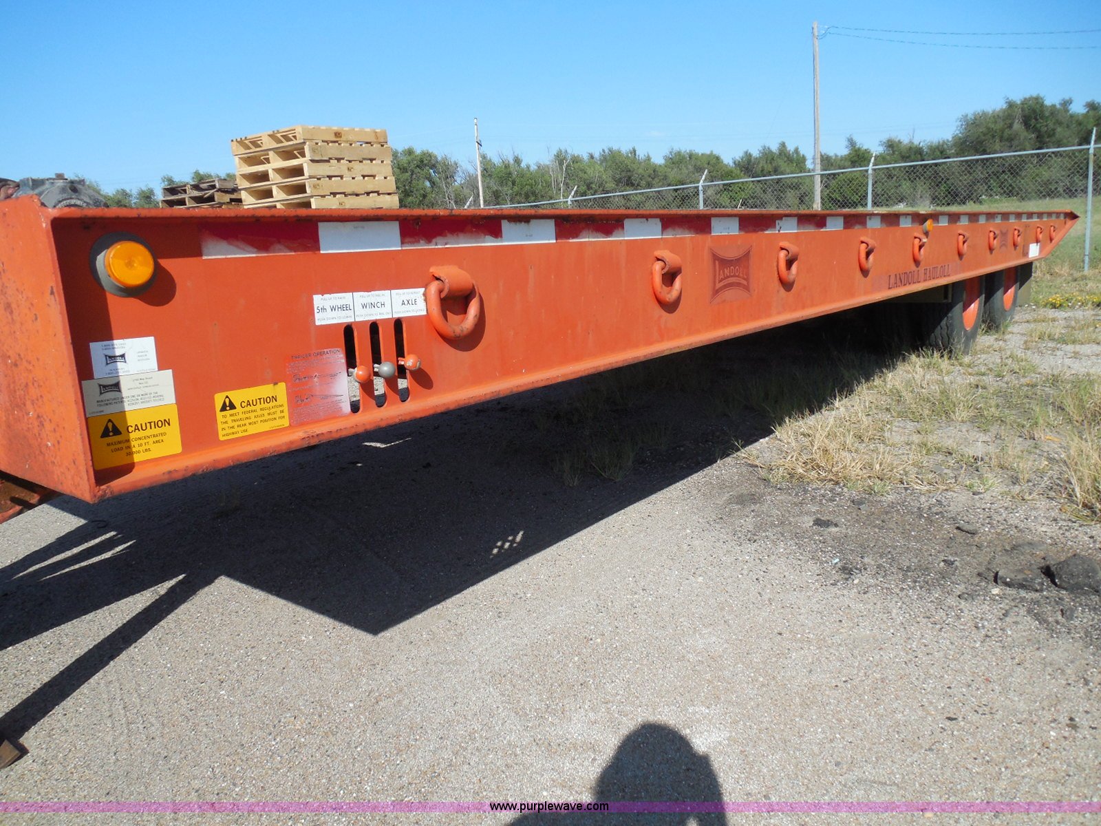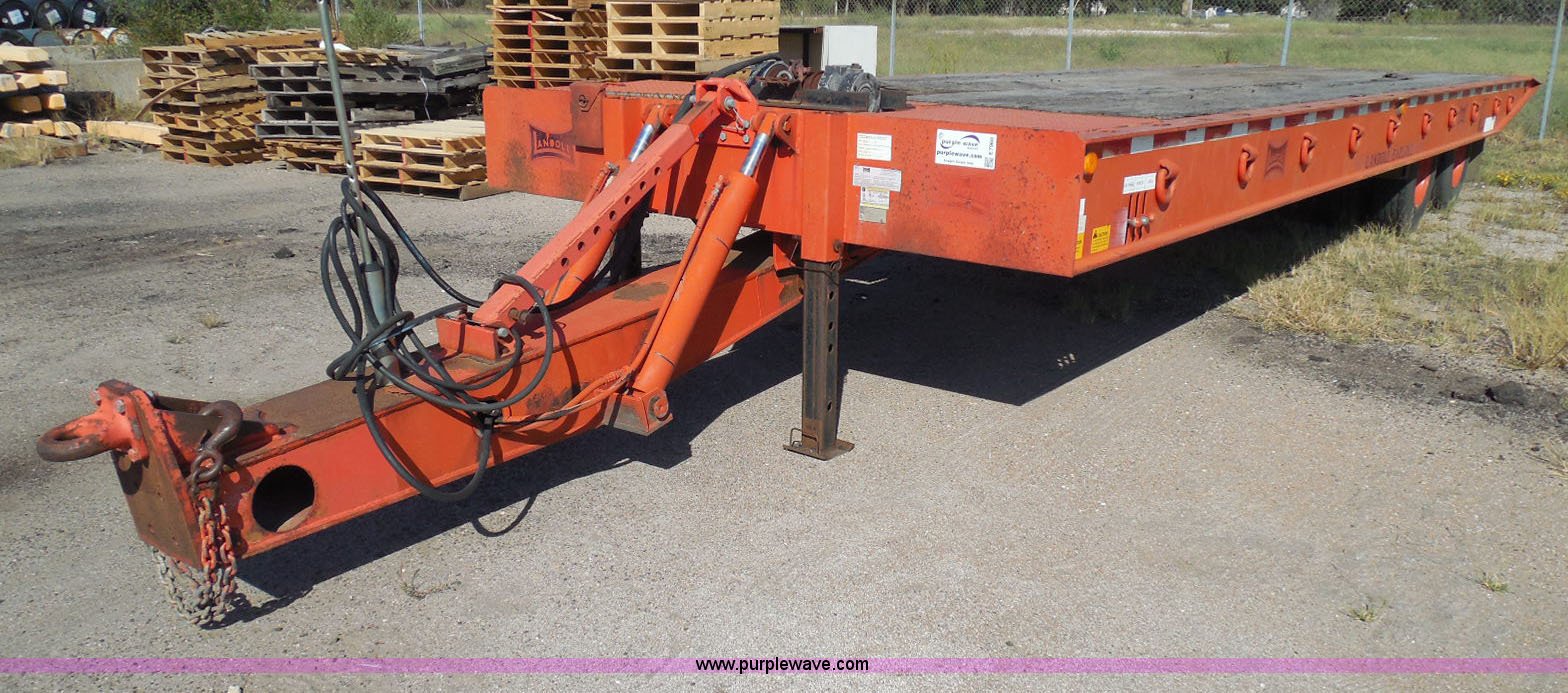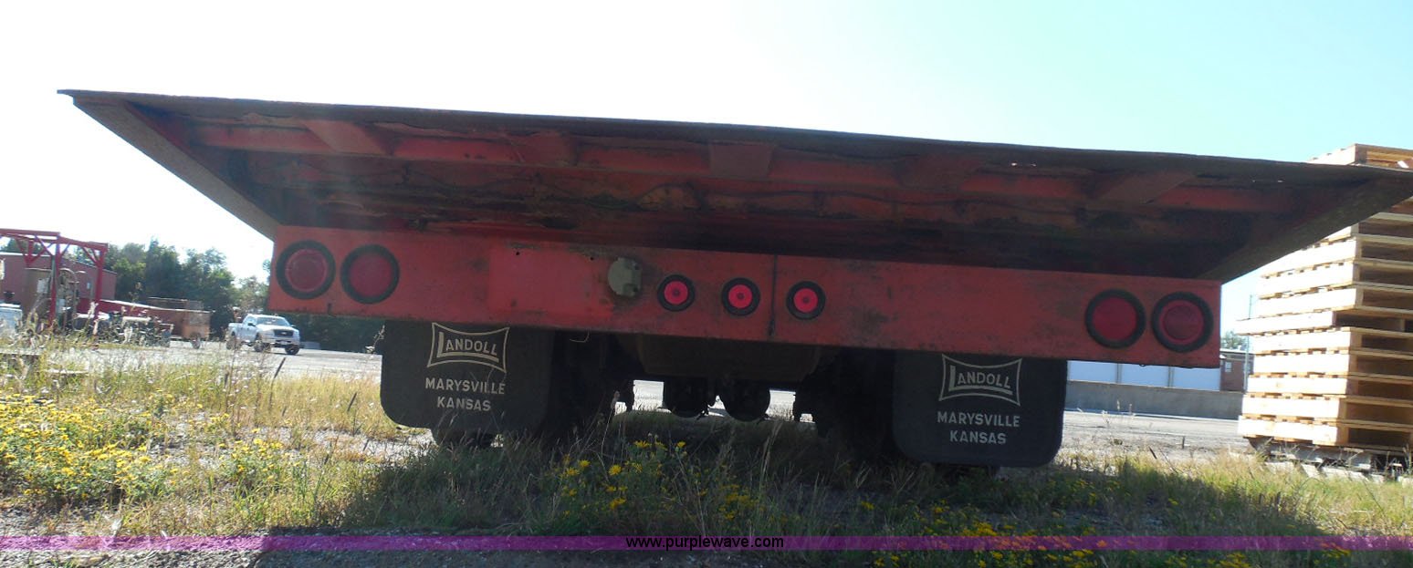Purple Wave is selling a used Equip. Trailer in Kansas. This item is a 1996 Landoll 345-31 tilt deck equipment trailer with the following: 31'L x 102"W deck, D-ring tie downs, Side stake pockets, Wedge tail, Twin cylinder tilt, Hydraulic three lever ground controls, Braden cable winch, Chain well, Oil bath hubs, Spring suspension, Air brakes, 10R17.5 tires, Stringers rusted, Boards damaged, KDOT ID 777-5055