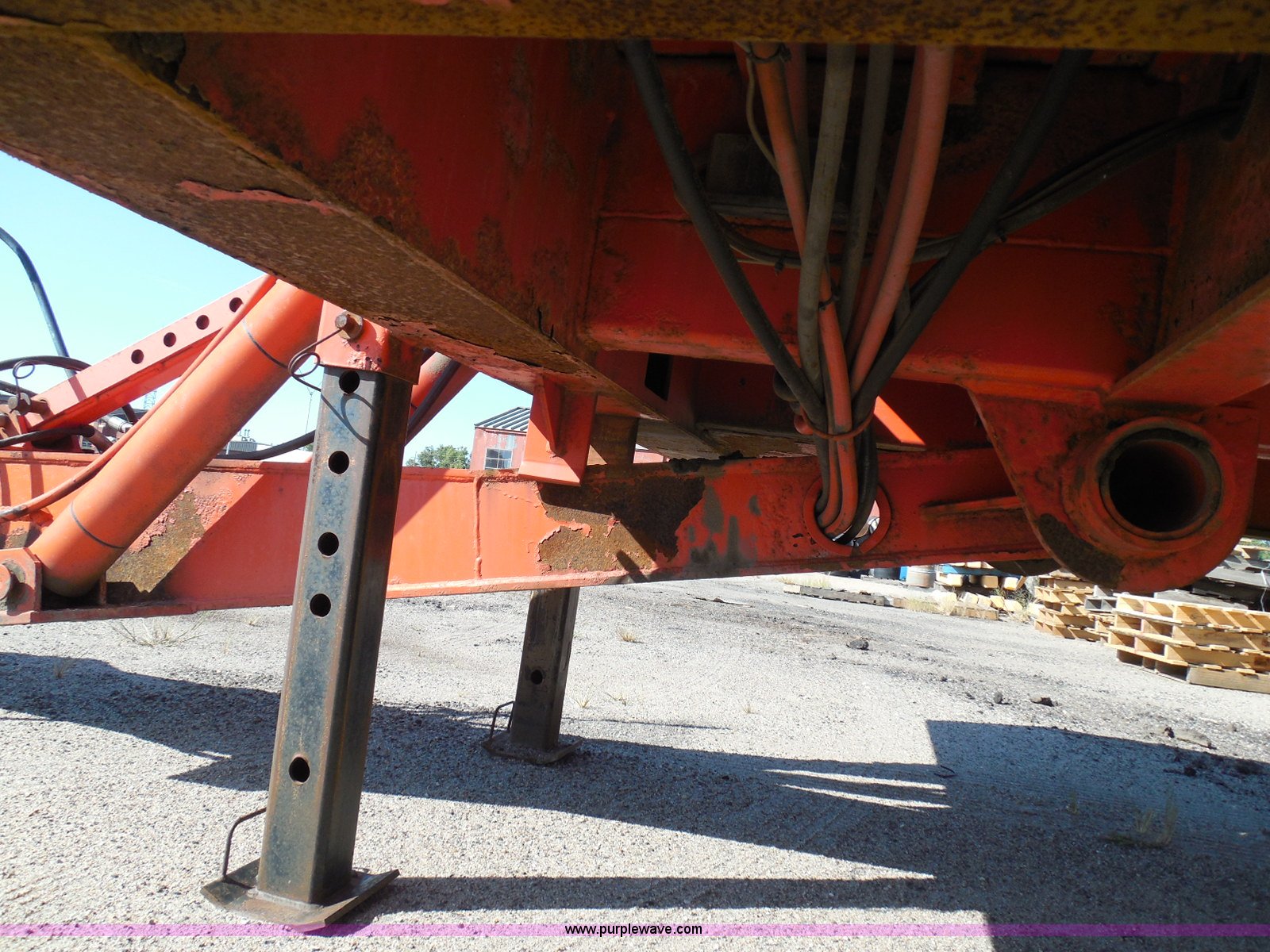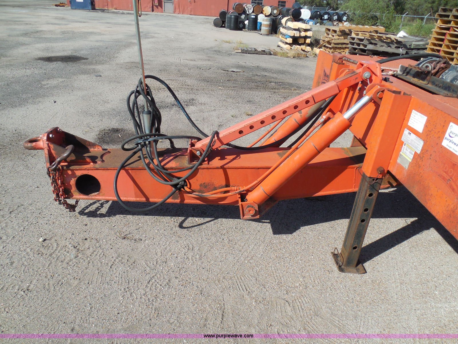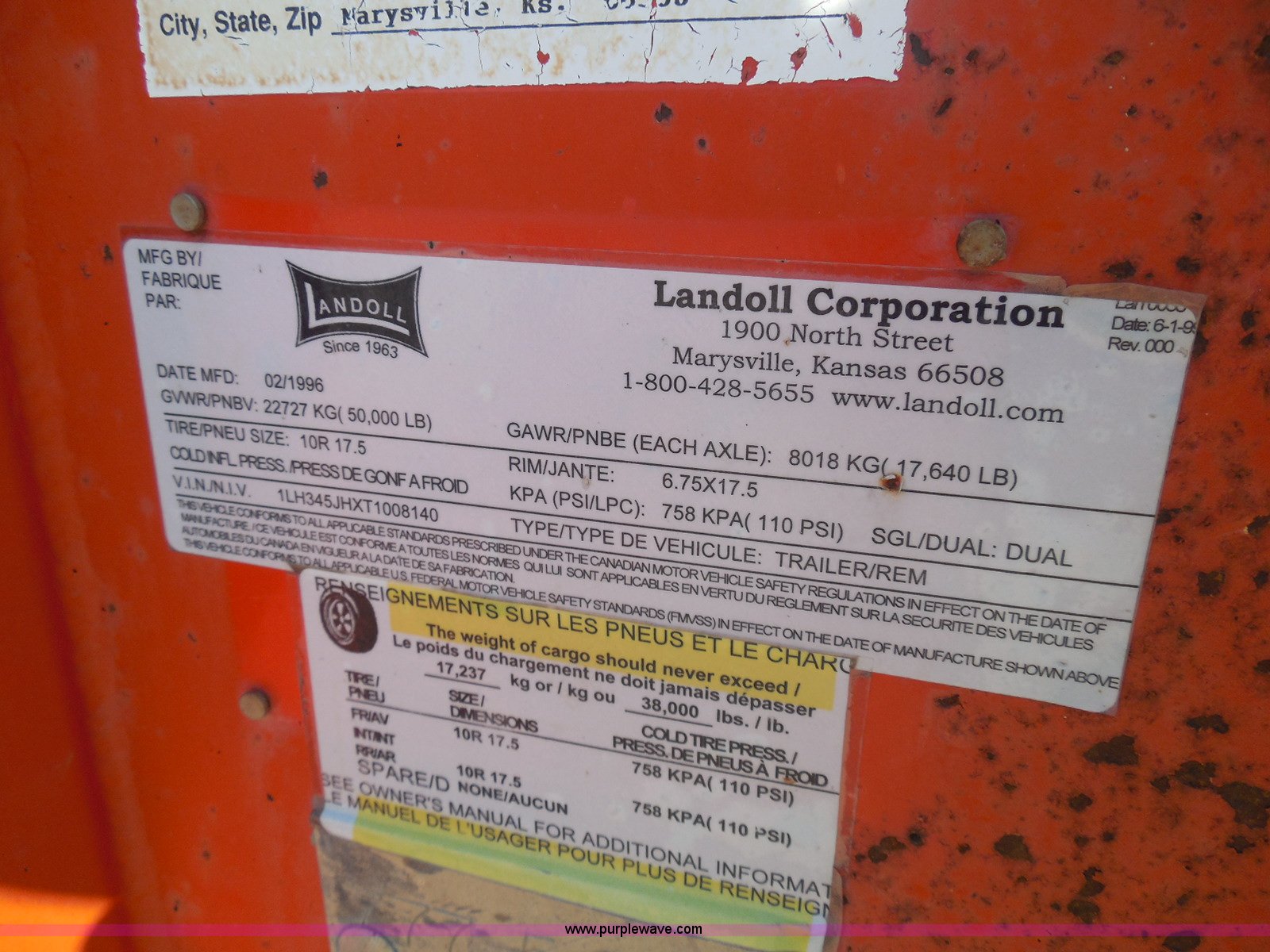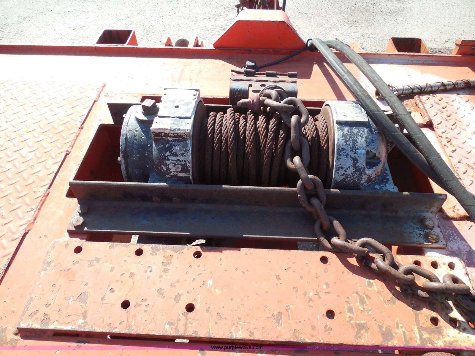Purple Wave is selling a used Equip. Trailer in Kansas. This item is a 1996 Landoll 345-31 tilt deck equipment trailer with the following: 31'L x 102"W deck, D-ring tie downs, Side stake pockets, Wedge tail, Twin cylinder tilt, Hydraulic three lever ground controls, Braden cable winch, Chain well, Oil bath hubs, Spring suspension, Air brakes, 10R17.5 tires, Stringers rusted, Boards damaged, KDOT ID 777-5055