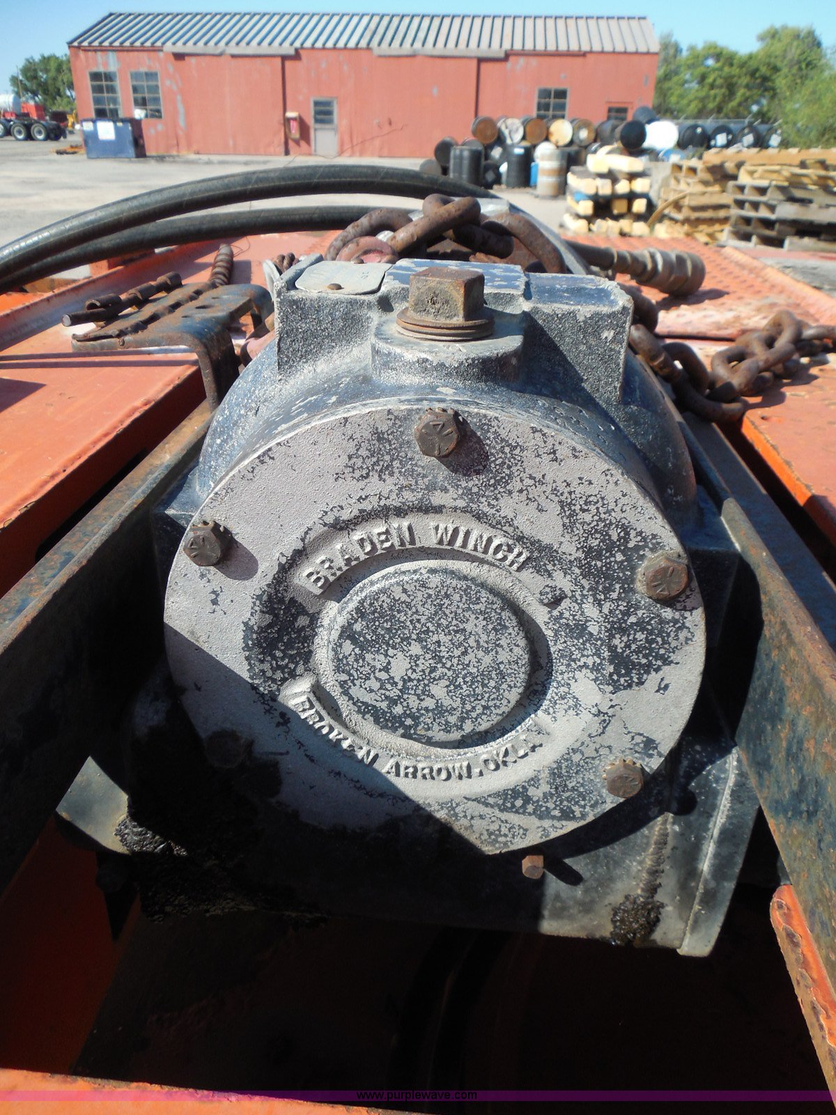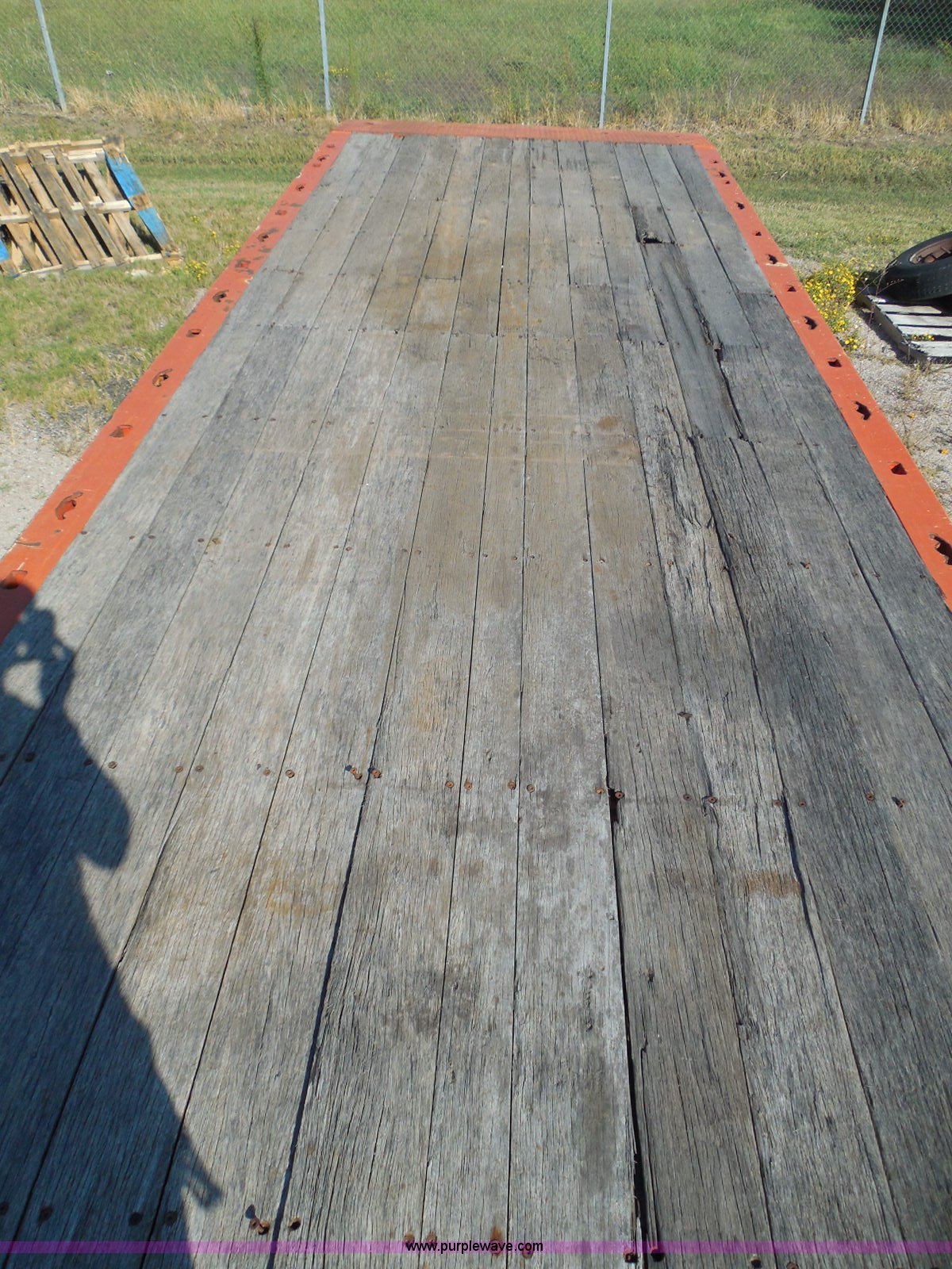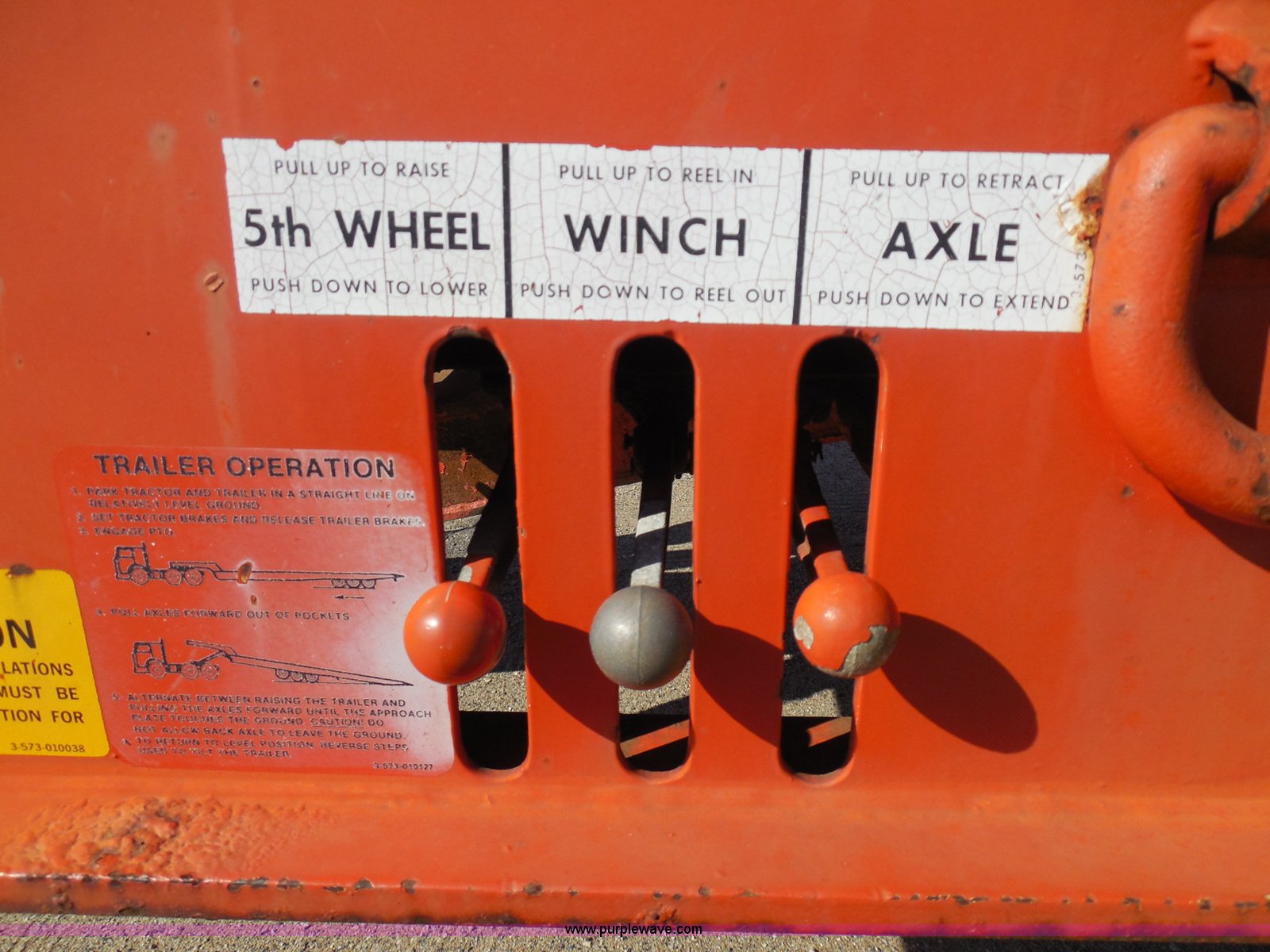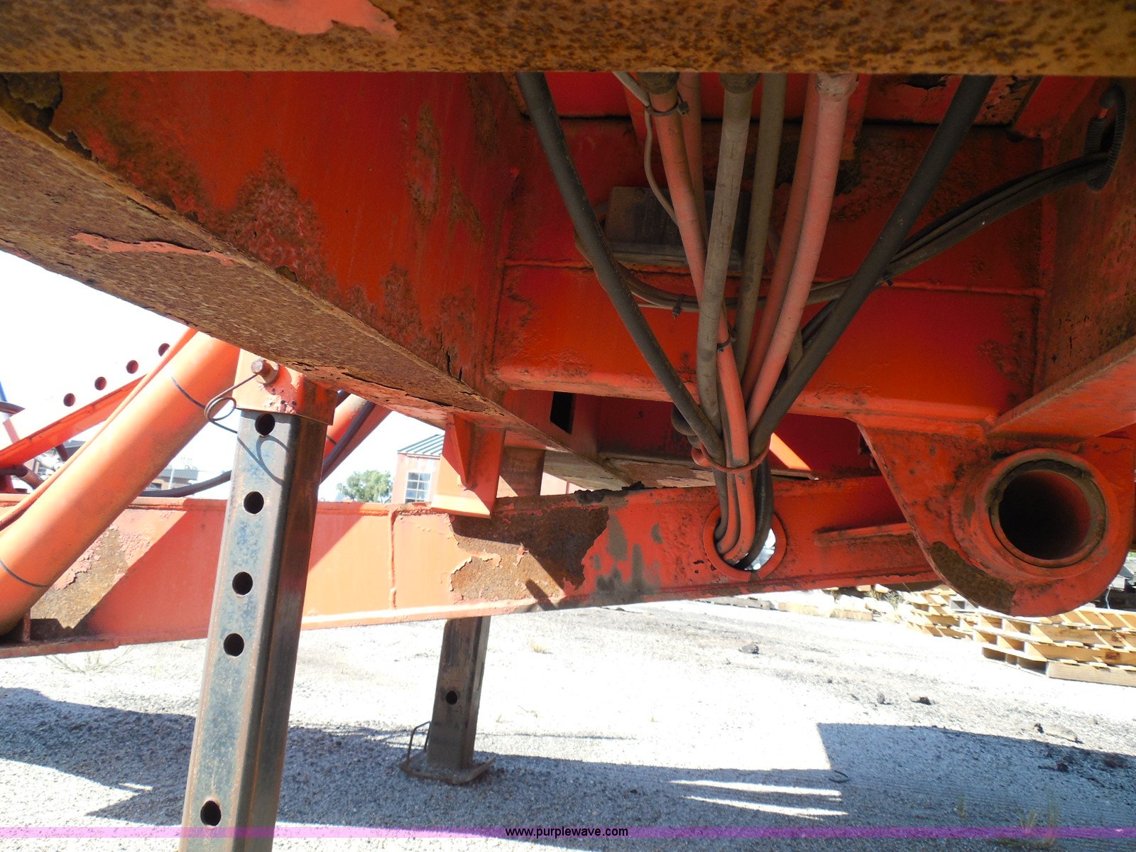 Purple Wave is selling a used Equip. Trailer in Kansas. This item is a 1996 Landoll 345-31 tilt deck equipment trailer with the following: 31'L x 102"W deck, D-ring tie downs, Side stake pockets, Wedge tail, Twin cylinder tilt, Hydraulic three lever ground controls, Braden cable winch, Chain well, Oil bath hubs, Spring suspension, Air brakes, 10R17.5 tires, Stringers rusted, Boards damaged, KDOT ID 777-5055