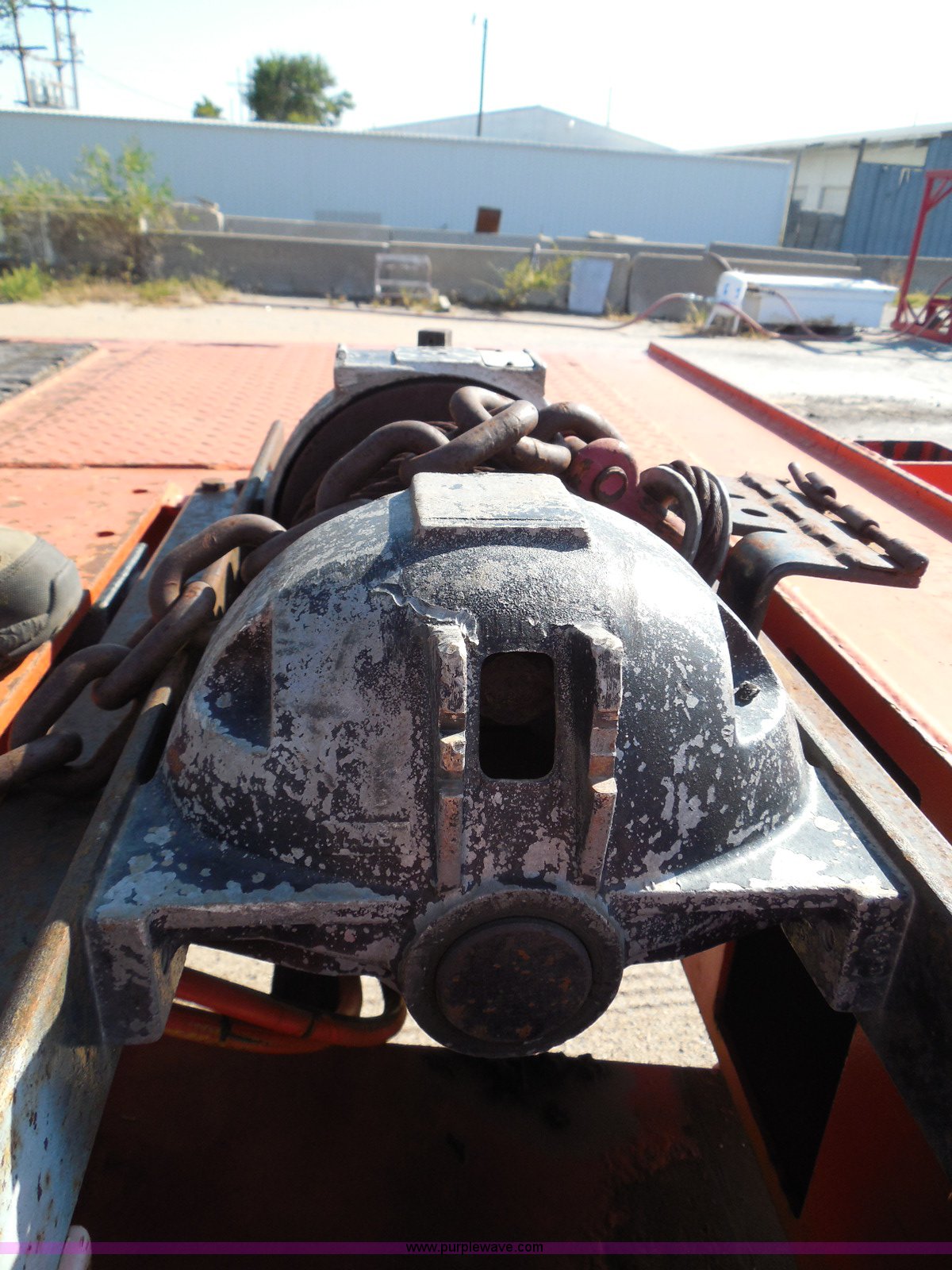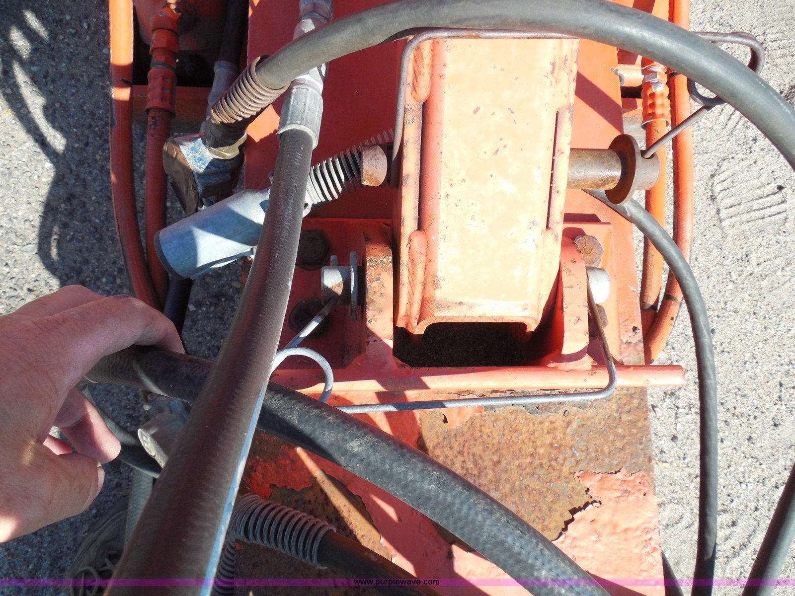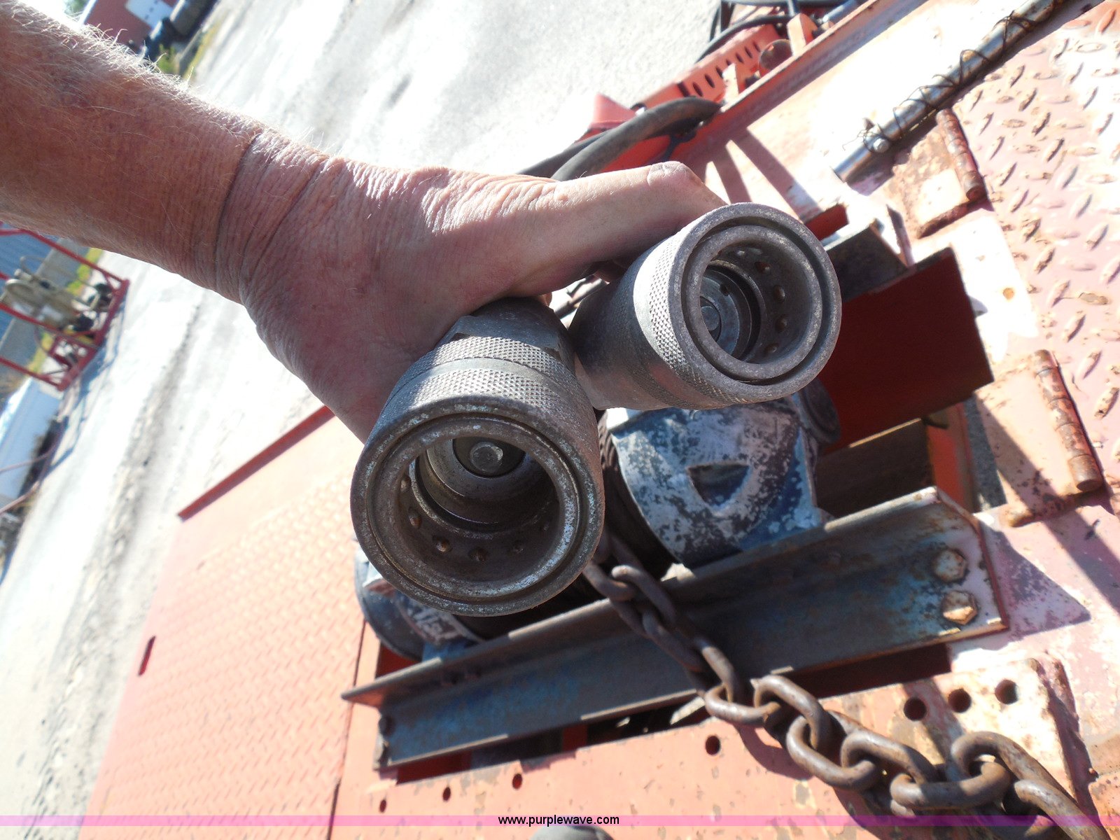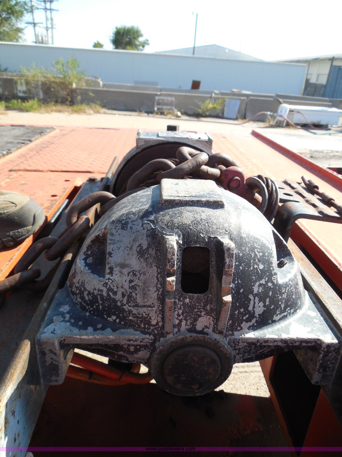 Purple Wave is selling a used Equip. Trailer in Kansas. This item is a 1996 Landoll 345-31 tilt deck equipment trailer with the following: 31'L x 102"W deck, D-ring tie downs, Side stake pockets, Wedge tail, Twin cylinder tilt, Hydraulic three lever ground controls, Braden cable winch, Chain well, Oil bath hubs, Spring suspension, Air brakes, 10R17.5 tires, Stringers rusted, Boards damaged, KDOT ID 777-5055