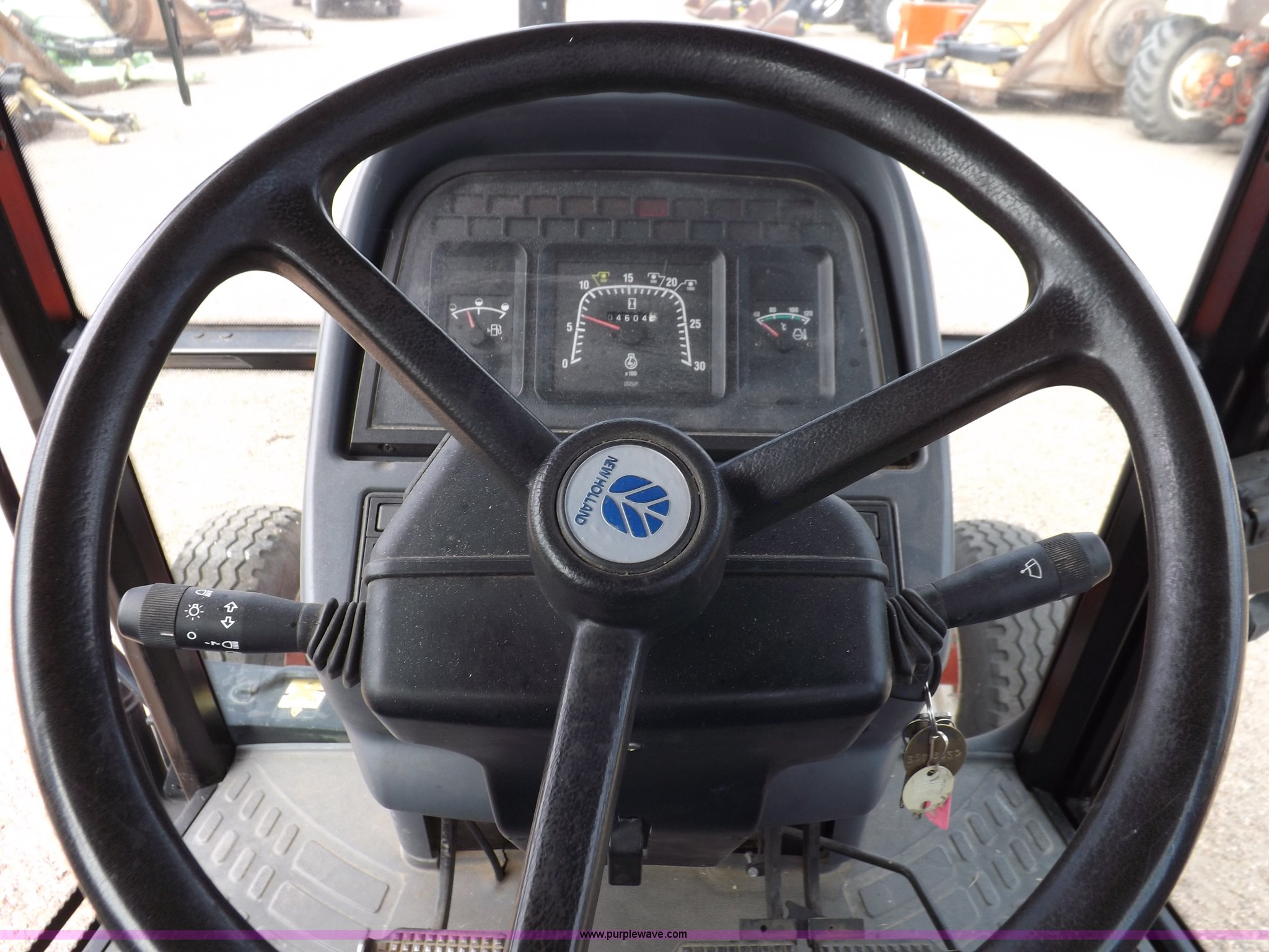 Purple Wave is selling a used Tractor in Kansas. This item is a 2000 New Holland TS100 tractor with the following: 4,604 hours on meter, New Holland four cylinder diesel engine, 70 HP, Manual transmission, 12F-12R gears, AC and heat, AM/FM/CD, Air suspension seat, Rear window screen, Three point, No top link, Draw bar, 540 PTO, (4) rear hydraulic remote sets, 88" wheelbase, 11L-16 front tires, 18.4-30 rear tires, Serial 138716B, KDOT ID 352-6030