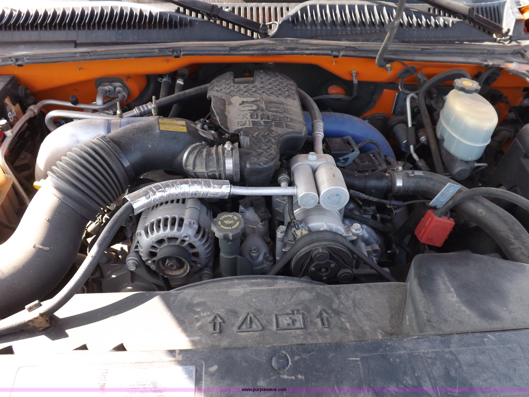 Purple Wave is selling a used Service Truck in Kansas. This item is a 2002 Chevrolet Silverado 2500HD utility truck with the following: 165,351 actual miles, 6.6L V8 OHV 32V turbo diesel engine, Automatic transmission, AC and heat, Tilt, Cruise, AM/FM, Manual windows and locks, Cloth interior, Knapheide utility bed, 8'L x 6.5'W, (6) storage compartments, Headache rack, Amber rotating beacon, 245/75R16 tires, GVWR 9,200 lbs, Interior/exterior cosmetic damage, Seat torn, Windshield chipped, Grill trim damage, Paint damage, Scratches, Dents, Engine issues, will not start or run, Must be towed or hauled, Non-operational, unit, KDOT ID 122-6022