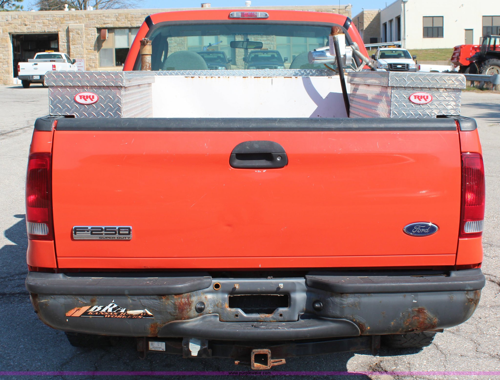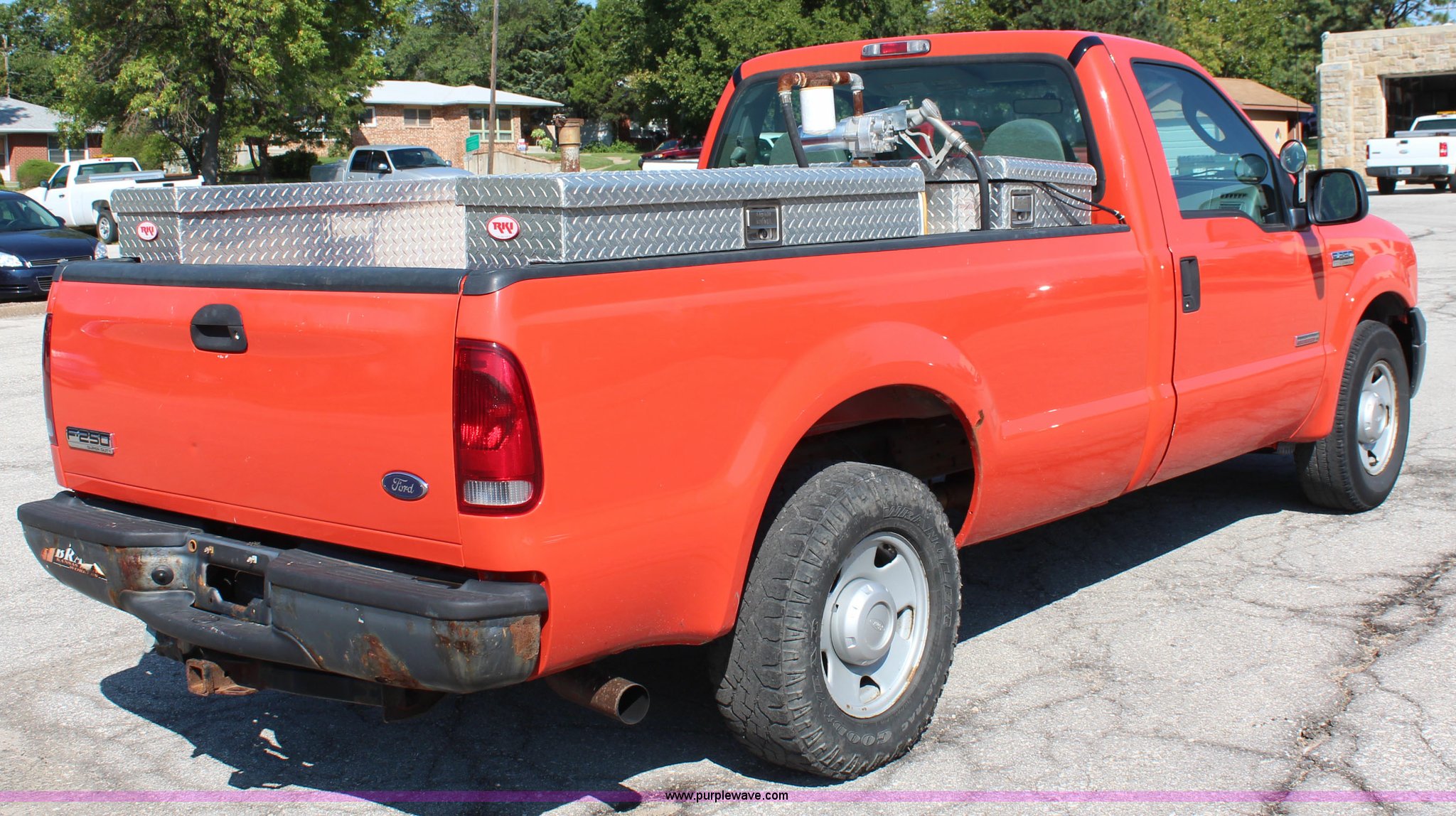 Purple Wave is selling a used 3/4 or 1 Ton Pickup or Van in Kansas. This item is a 2006 Ford F250 Super Duty XL pickup truck with the following: 195,441 miles on odometer, 6.0L V8 OHV 32V turbo diesel engine, Automatic transmission, AC and heat, Tilt, Cruise, AM/FM, Manual windows and locks, Vinyl interior, Toolboxes, Weatherguard fuel tank, 90 gallon capacity, 12V pump, Strobe light in toolbox, Receiver hitch, 245/75R17 tires, Windshield chipped, KDOT ID 113-1206