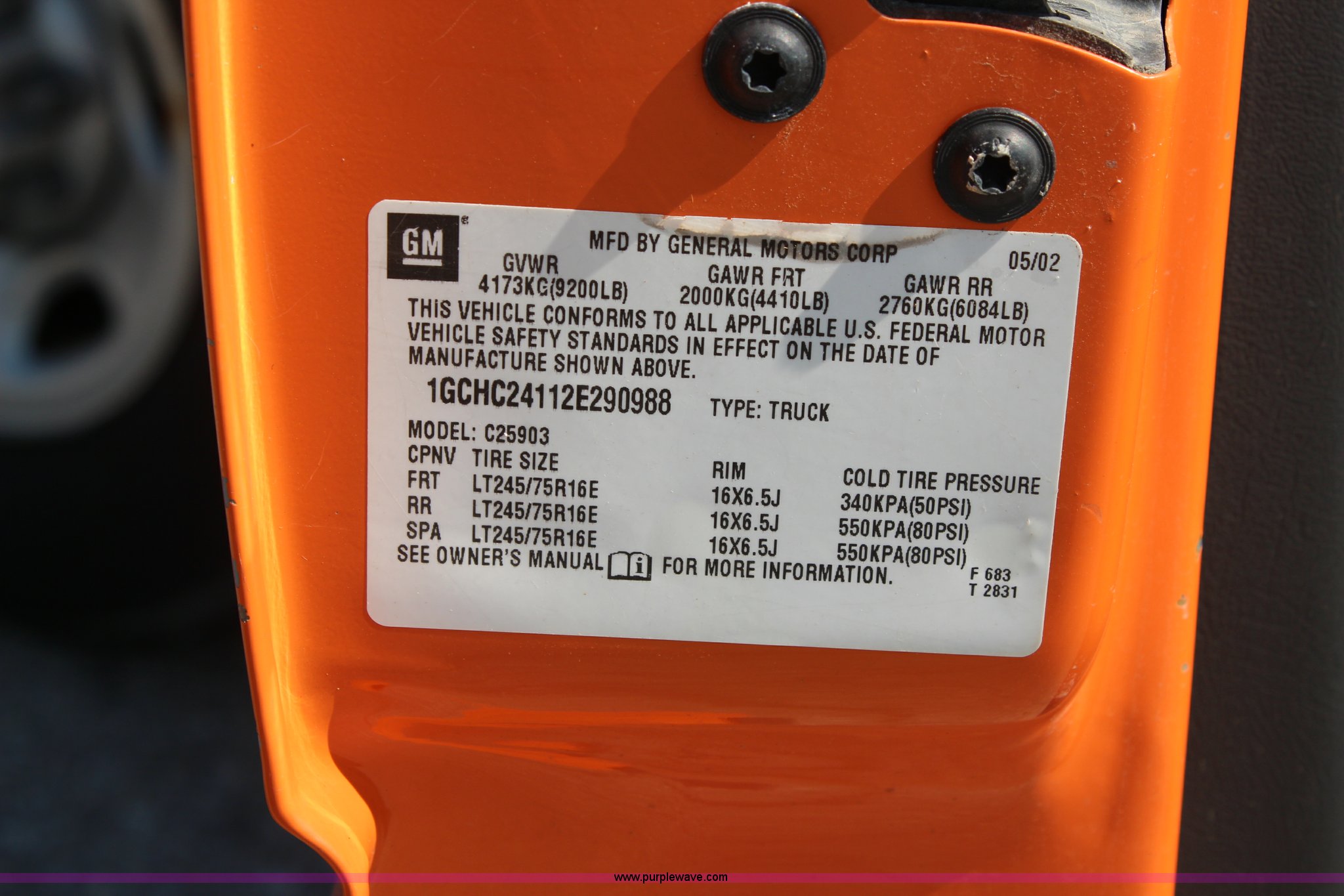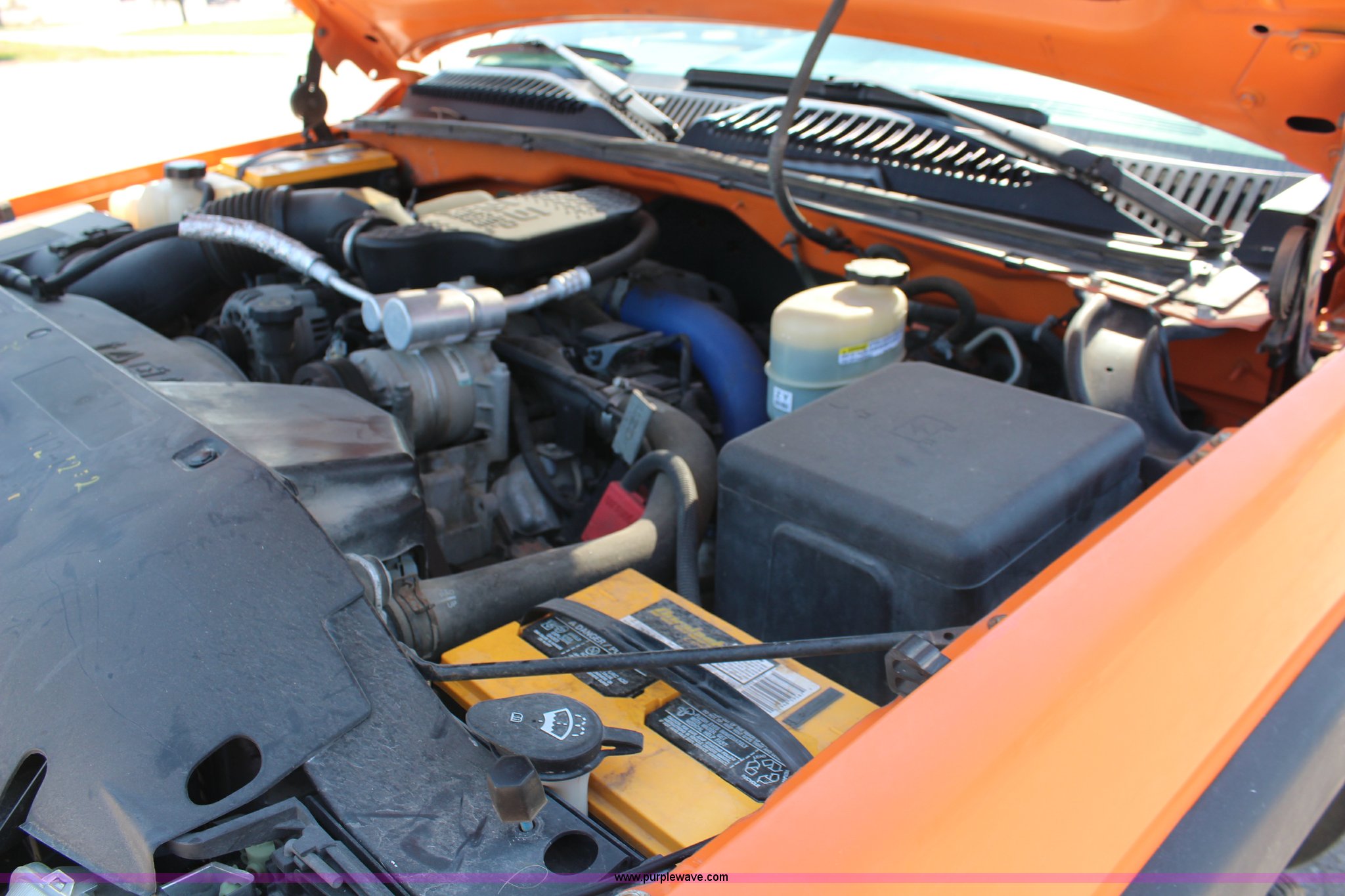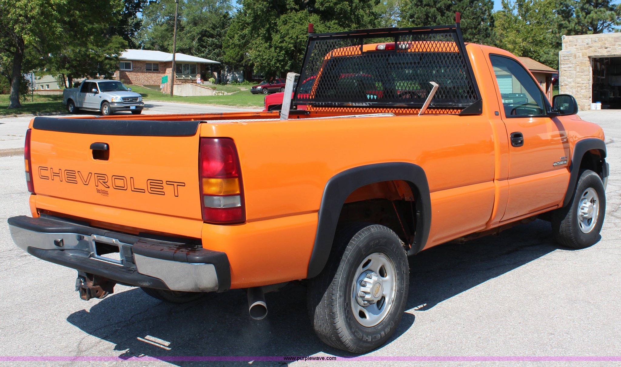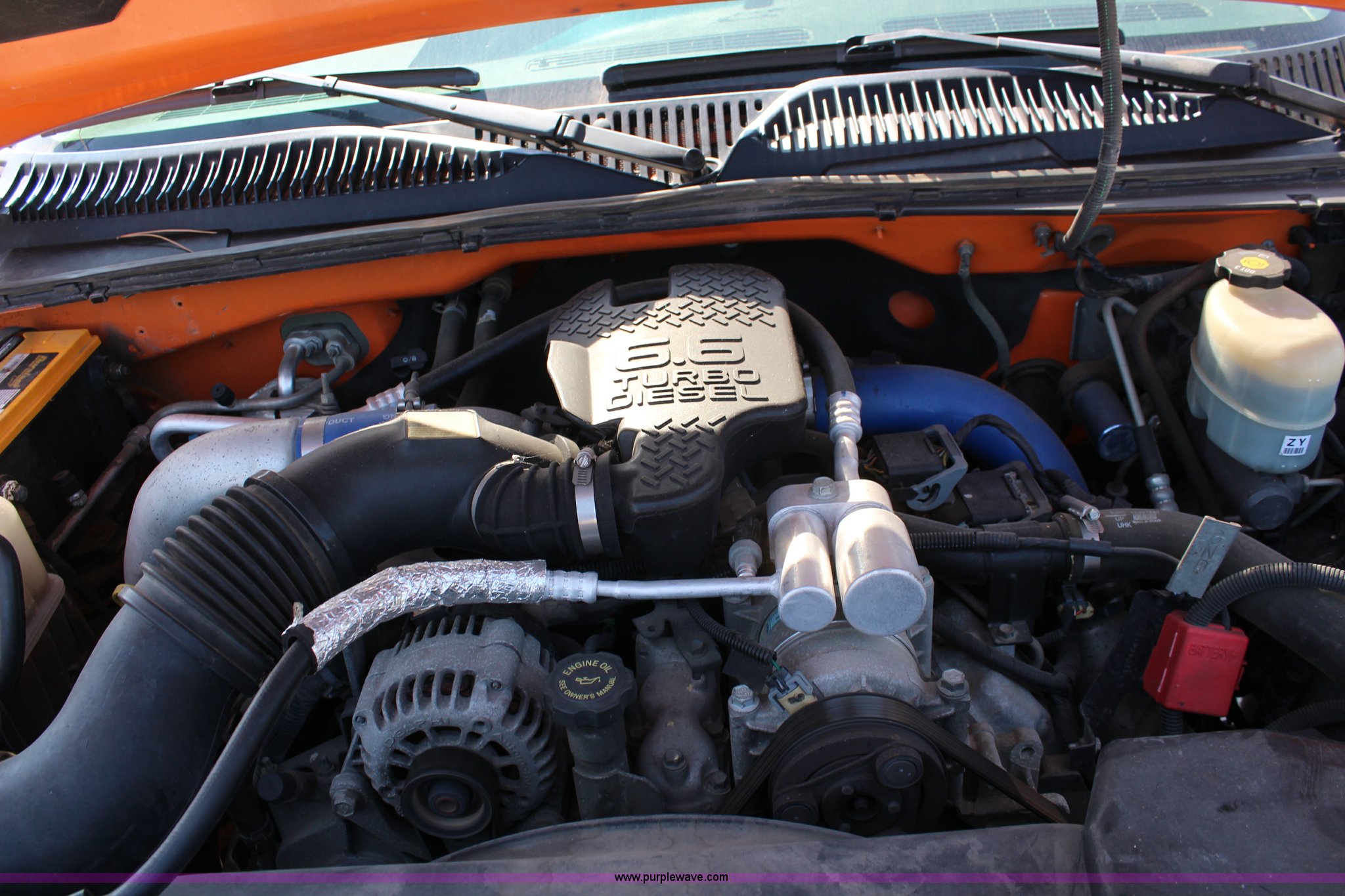 Purple Wave is selling a used 3/4 or 1 Ton Pickup or Van in Kansas. This item is a 2002 Chevrolet Sliverado 2500HD pickup truck with the following: 176,363 miles on odometer, 6.6L V8 OHV 32V turbo diesel engine, Automatic transmission, AC and heat, Tilt, Cruise, AM/FM, Manual windows and locks, Vinyl interior, Toolboxes, Receiver hitch, 245/75R16 tires, Engine smokes, Batteries weak, Paint faded and scratched, KDOT ID 112-1212