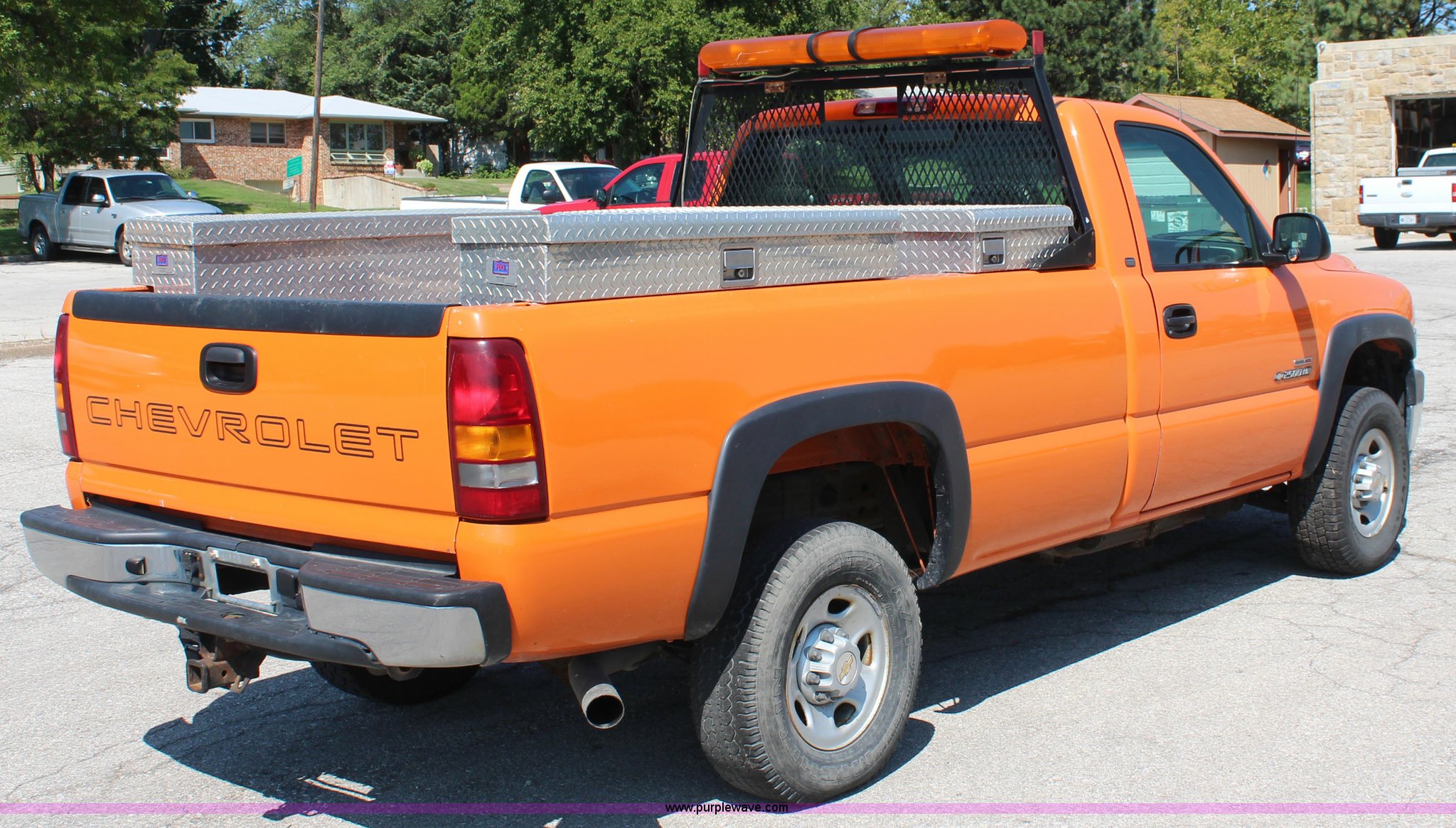 Purple Wave is selling a used 3/4 or 1 Ton Pickup or Van in Kansas. This item is a 2002 Chevrolet Silverado 2500HD pickup truck with the following: 176,734 miles on odometer, 6.6L V8 OHV 32V turbo diesel engine, Automatic transmission, AC and heat, Tilt, Cruise, AM/FM, Manual windows and locks, Vinyl interior, Toolboxes, Strobe light, Receiver hitch, 245/75R16 tires, Paint faded and scratched, KDOT ID 112-1192