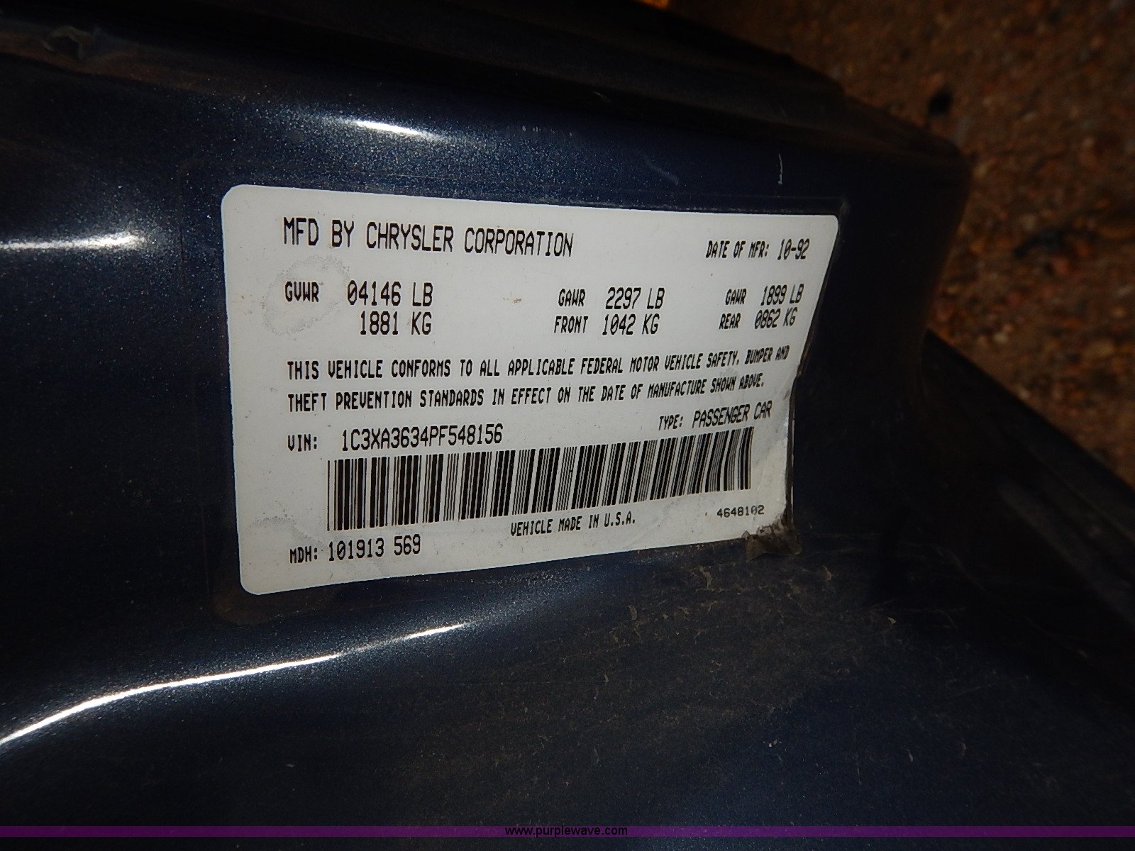 1993 Chrysler Lebaron LE has sold in Wichita, Kansas for $330. Item I5412 sold on October 20th, 2014.