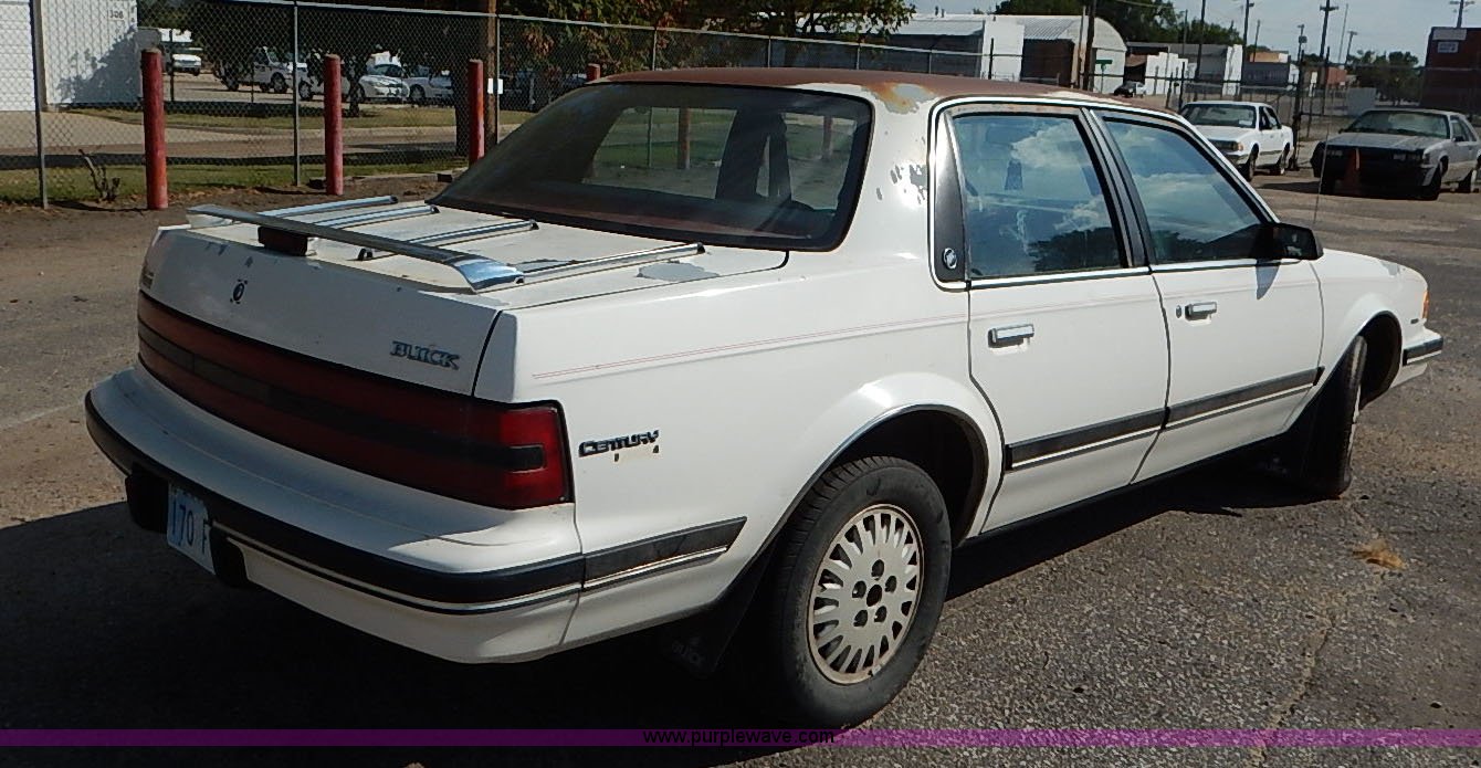 Purple Wave is selling a used Passenger Vehicle in Kansas. This item is a 1990 Buick Century Limited with the following: 126,278 miles on odometer, 3.3L V6 OHV 12V gas engine, Automatic transmission, Heat, Tilt, Cruise, AM/FM, Cloth interior, 195/70R14 tires, Flat, Interior/exterior cosmetic damage, Driver side door does not open, Paint peeling, Windows rolled down, Contents included, Unknown operating condition, Case# 14C046557