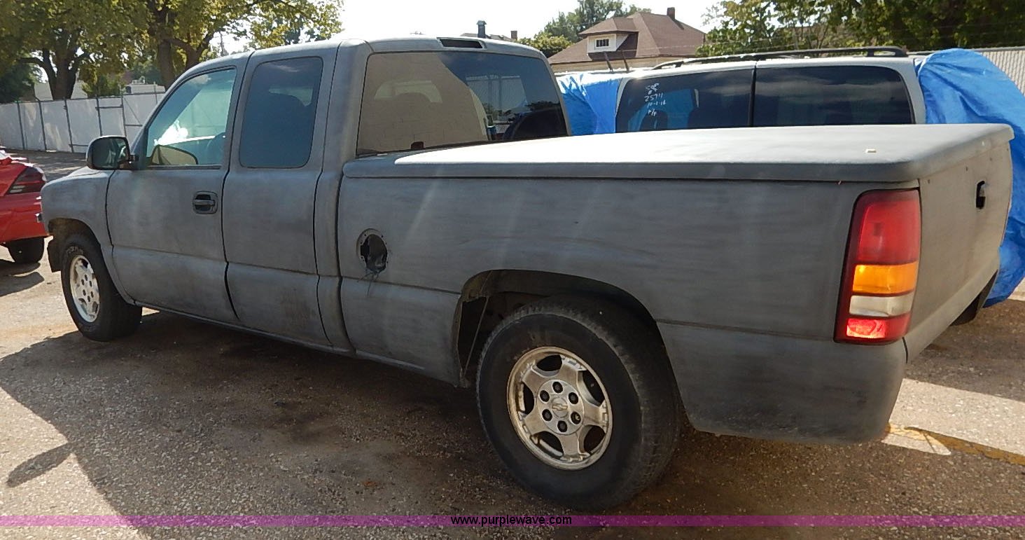 Purple Wave is selling a used 1/2 Ton Pickup or Van in Kansas. This item is a 2001 Chevrolet Silverado 1500 Ext. Cab pickup truck with the following: Unknown miles on odometer, 5.3L V8 OHV 16V gas engine, Automatic transmission, AC and heat, Tilt, Cruise, AM/FM/CD, Power windows, locks, and mirrors, Cloth interior, Bed cover, 255/70R16 tires, Interior/exterior cosmetic damage, Missing hood latch, Frond end damage, Contents included, Rear passenger window missing, No bumper, Unknown operating condition, Case# 14C050898