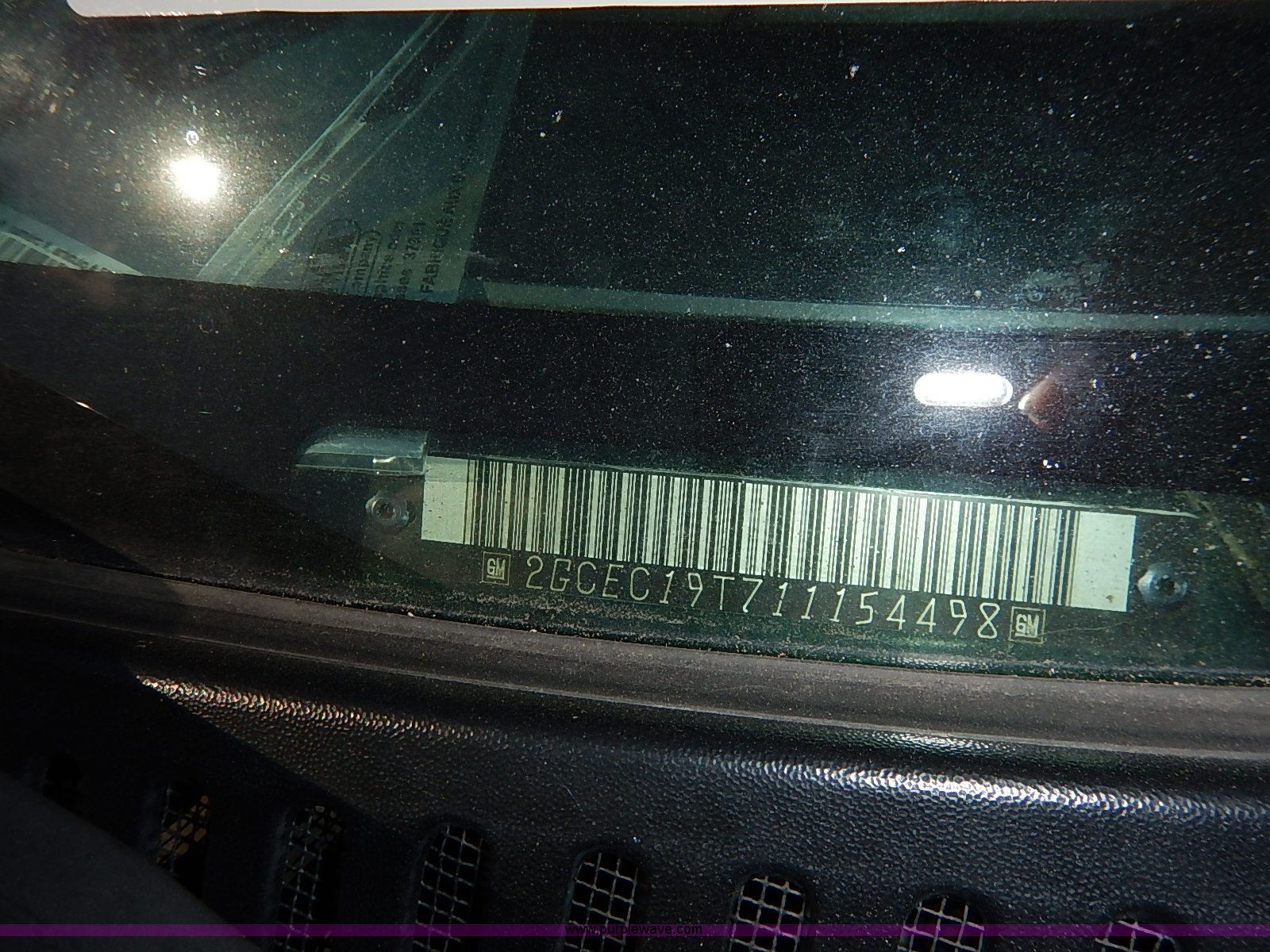 2001 Chevrolet Silverado 1500 Ext. Cab pickup truck. Unknown miles on odometer, 5.3L V8 OHV 16V gas engine, Automatic transmission, AC and heat, Tilt, Cruise, AM/FM/CD, Power windows, locks, and mirrors, Cloth interior, Bed cover, 255/70R16 tires, Interior/exterior cosmetic damage, Missing hood latch, Frond end damage, Contents included, Rear passenger window missing, No bumper, Unknown operating condition, Case# 14C050898. Vehicle is abandoned. Condition and history are unknown. No additional information is available. Vehicle does not have keys unless notated otherwise in the item listing.. View City Of Wichita Terms for title acquisition and item removal requirements.. 2GCEC19T711154498. Bud Roat Towing. 310 N Handley. Wichita, KS 67203