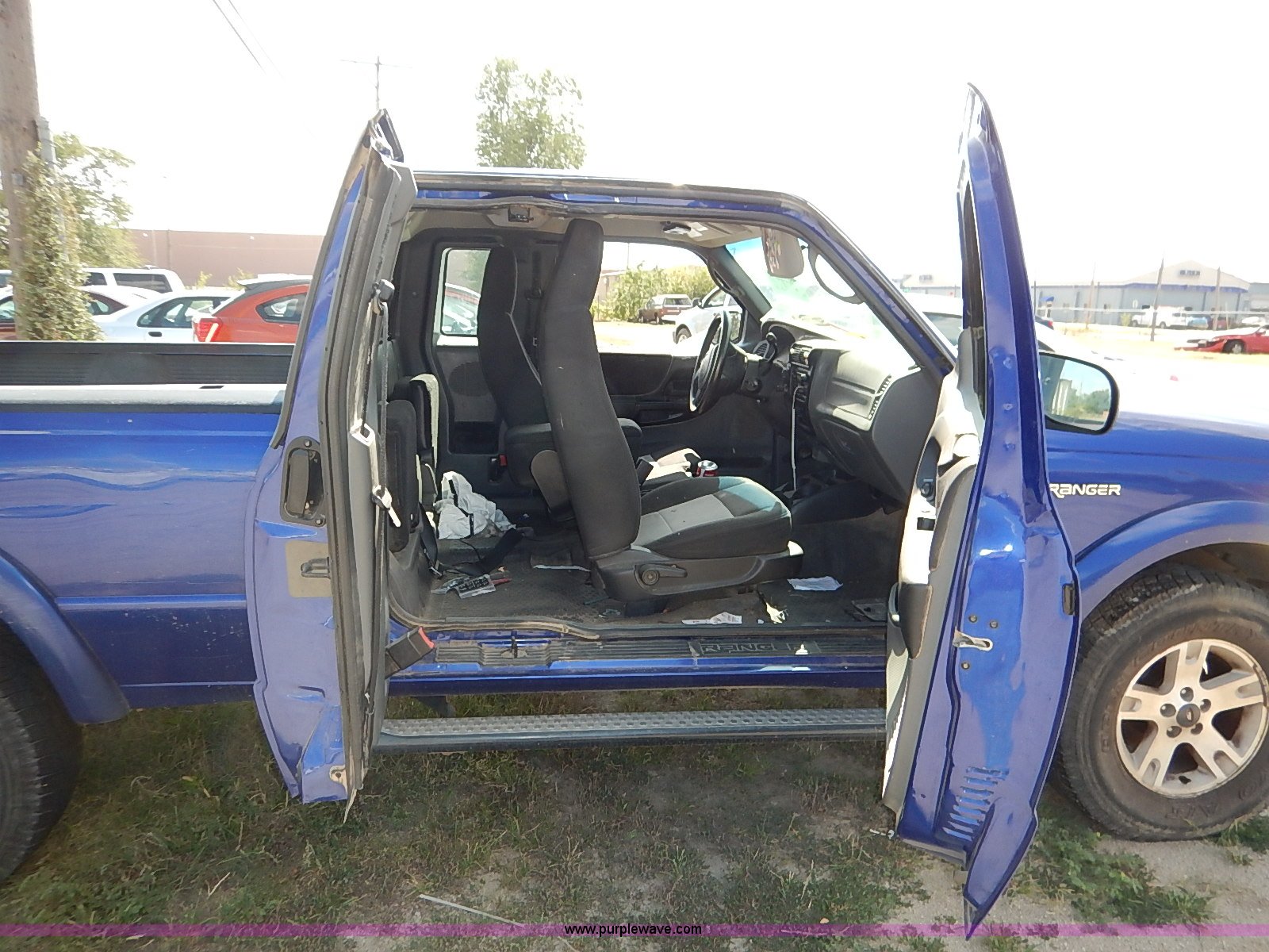 Purple Wave is selling a used Compact Pickup or Van in Kansas. This item is a 2005 Ford Ranger SuperCab pickup truck with the following: Unknown miles on odometer, 4.0L V6 SOHC 12V gas engine, Automatic transmission, Four wheel drive, AC and heat, Tilt, Cruise, AM/FM/cassette, Power windows, locks, and mirrors, Cloth interior, Bed liner, Front tow hooks, Fog lights, Running boards, 245/75R16 tires, Interior/exterior cosmetic damage, Driver side mirror cracked, Dents, Scratches, Contents included, Window rolled down, Unknown operating condition, Case# 14C54731