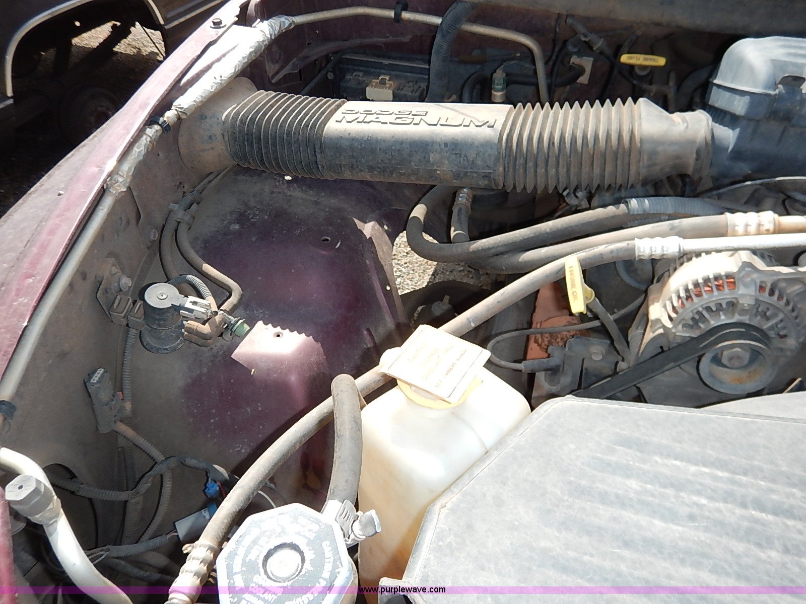 Purple Wave is selling a used 1/2 Ton Pickup or Van in Kansas. This item is a 2000 Dodge Ram 1500 Quad Cab pickup truck with the following: Unknown miles on odometer, 5.9L V8 OHV 16V gas engine, Automatic transmission, Tilt, Cruise, Manual windows and locks, Cloth interior, Receiver hitch, Three-way ball hitch, Trailer wiring, 225/65R16 tires, Interior/exterior cosmetic damage, Driver side mirror broken, Stereo missing, Window rolled down, Dents, Scratches, Hood missing, Front end damage, Taillight broken, Contents included, Unknown operating condition, Case# 14C44500