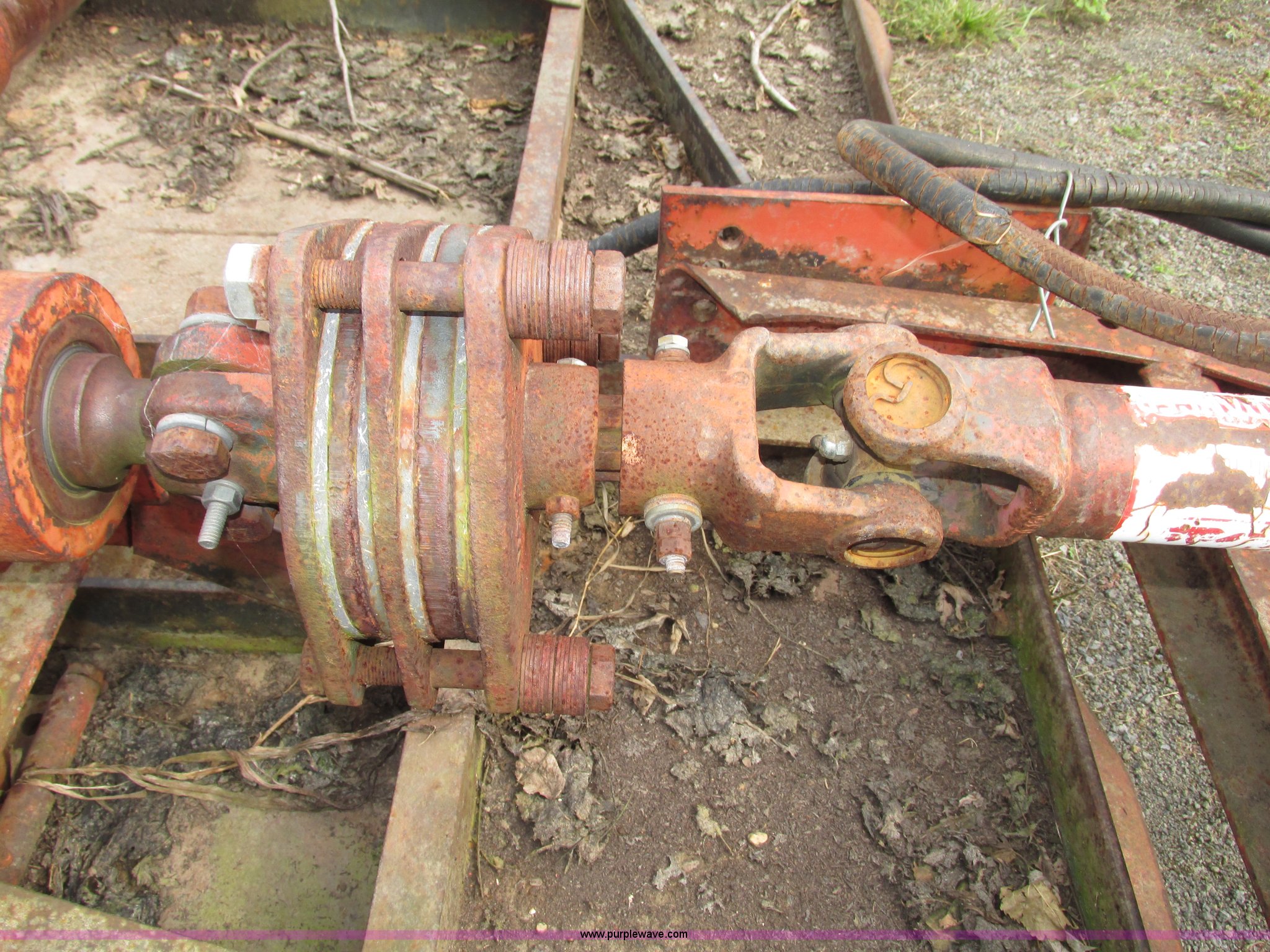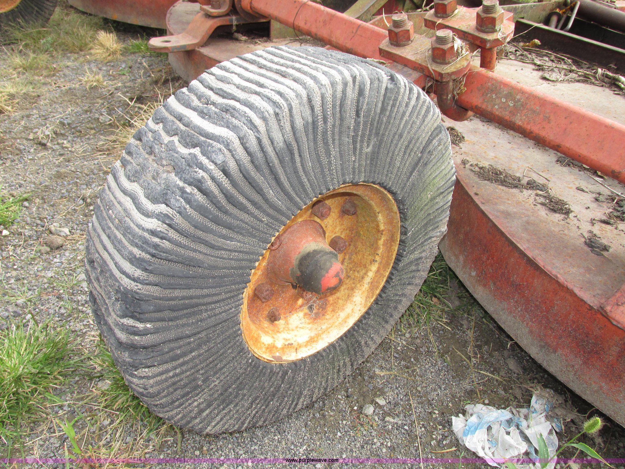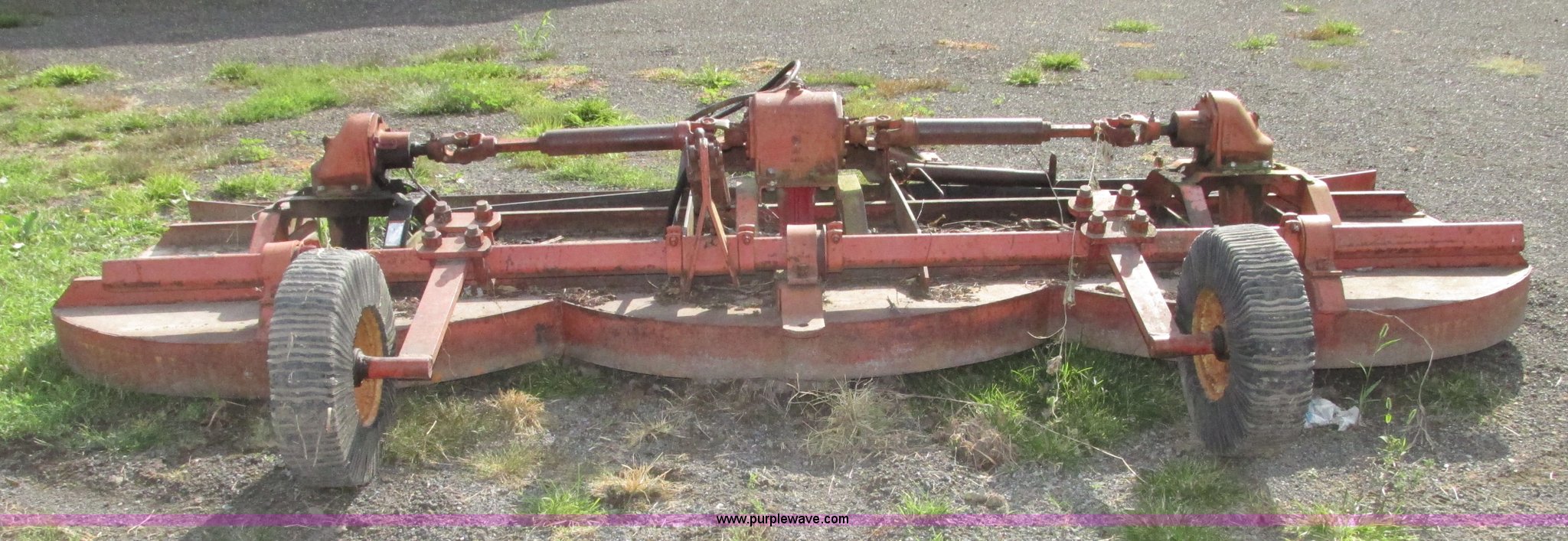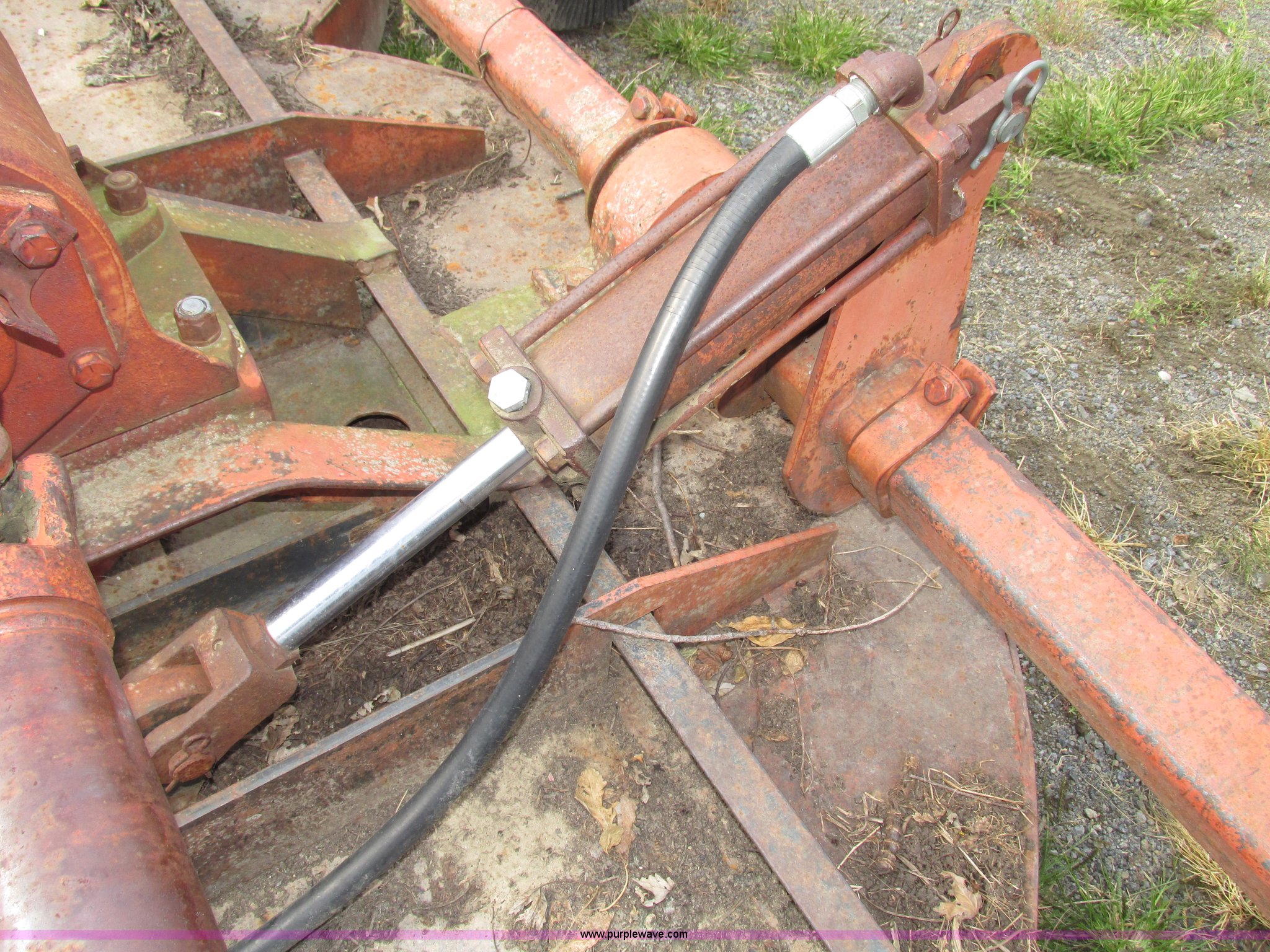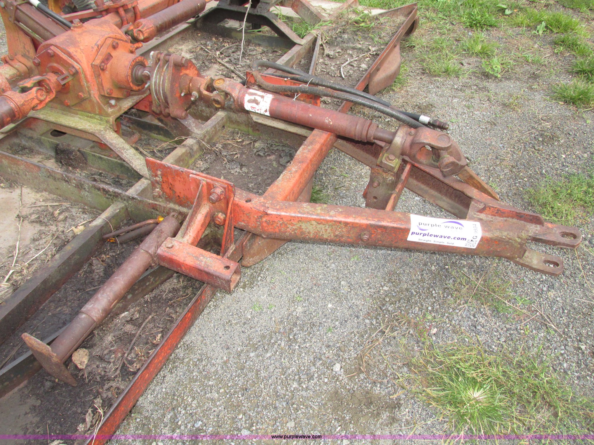 Purple Wave is selling a used Mower, Cutter, Shredder in Iowa. This item is a Bush Hog 160 rotary mower with the following: 13'W, Three blade design, Pin hitch, 10 1/4"L x 3" diameter lift cylinder, Hydraulic hose with male Pioneer fitting, 540 PTO, Shaft end included, Adjustable jack stand, Rear pin hitch, 21" laminated wheels, 10 5/8" five bolt steel wheels, Hydraulic hose weather cracked and worn, Serial 16873