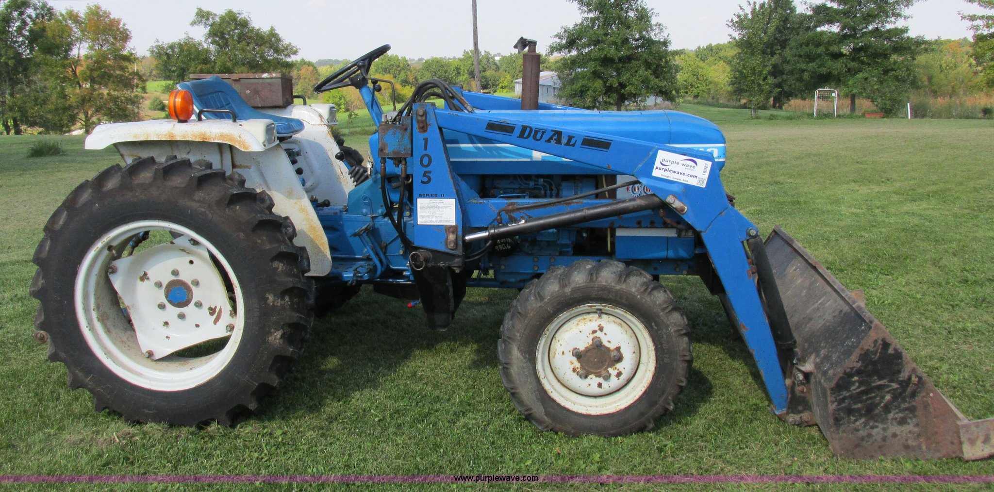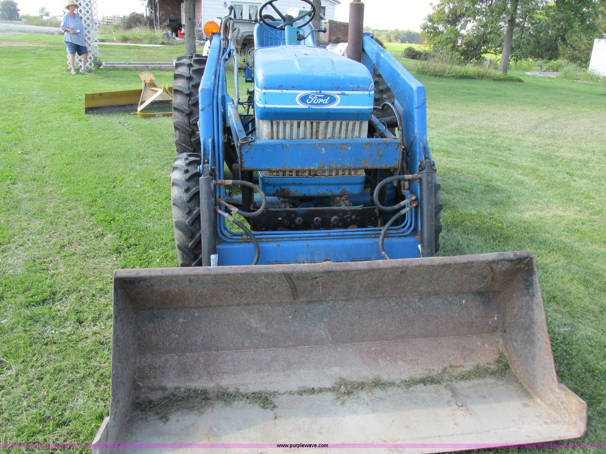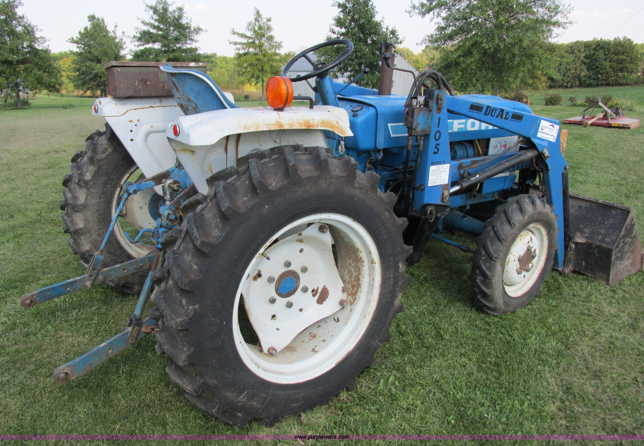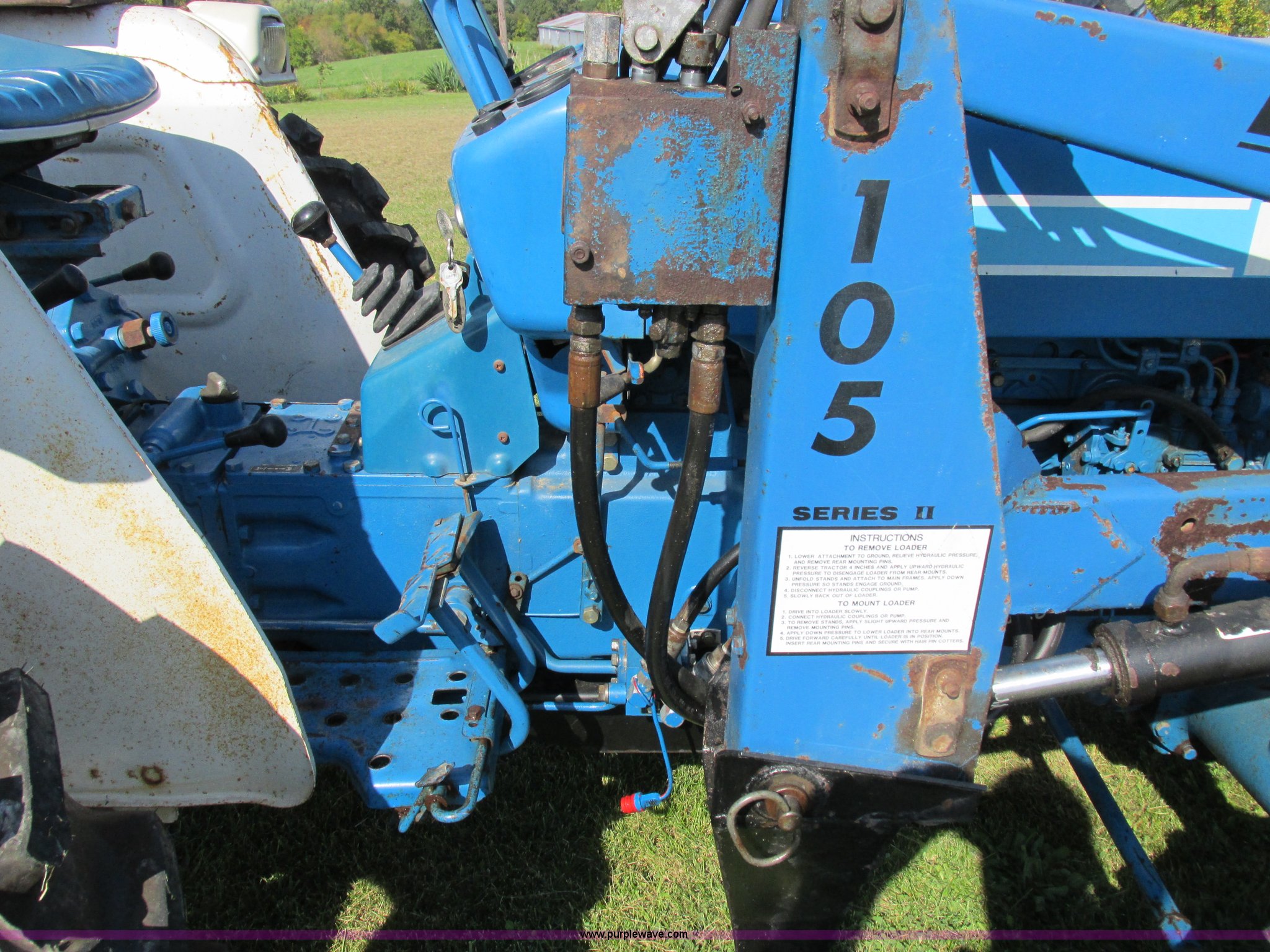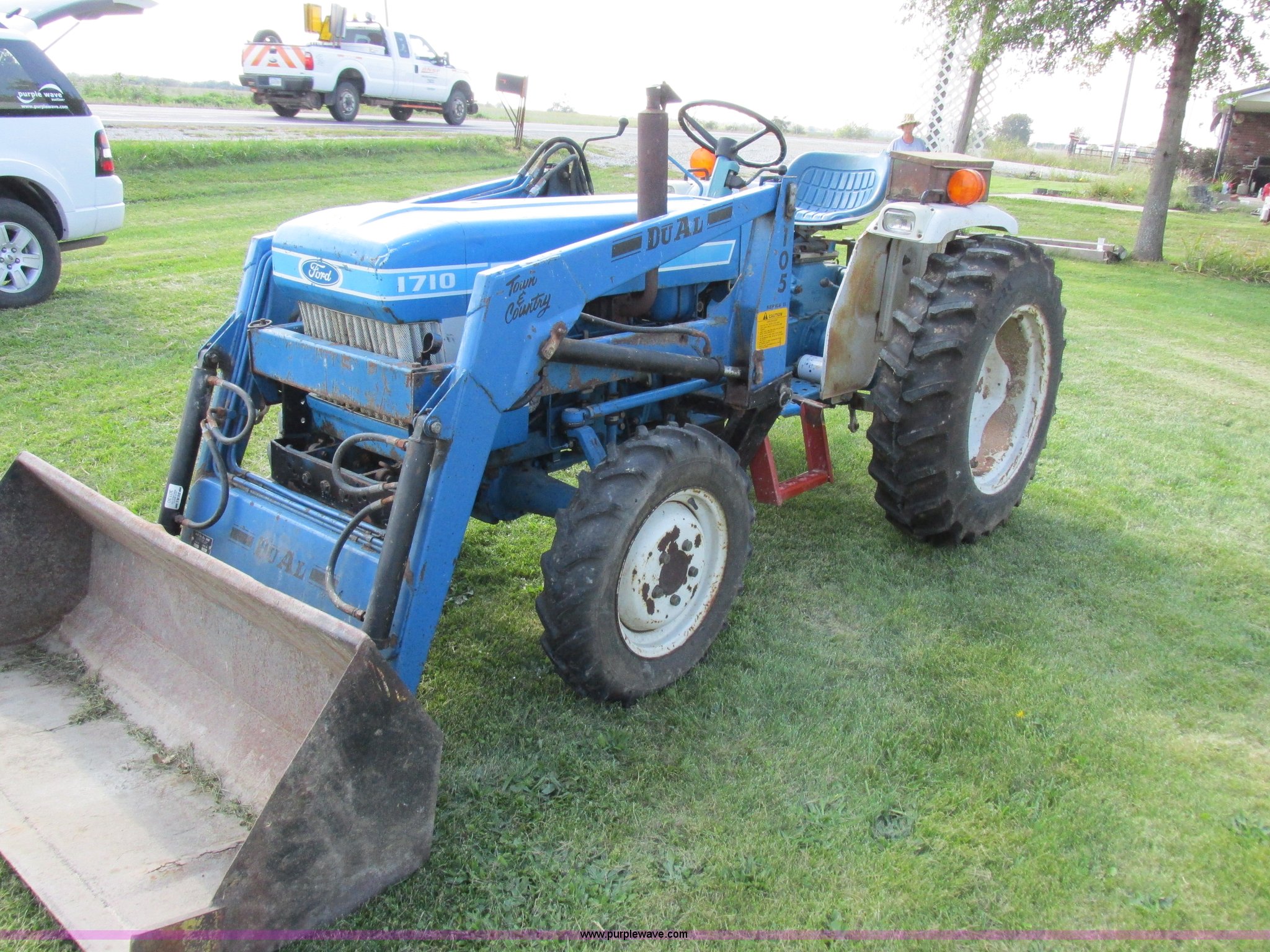 Purple Wave is selling a used Tractor in Missouri. This item is a Ford 1710 MFWD tractor with the following: 982 hours on meter, Three cylinder diesel engine, Model 104303-2450, Serial 341J905046, Manual transmission, 4F-4R gears, Loader, Model 105, 5'W bucket, Joystick controls, Serial 3171, Three point, Front hydraulic remotes, 6.00-16 front tires, 11.2-24 rear tires, Serial 00275