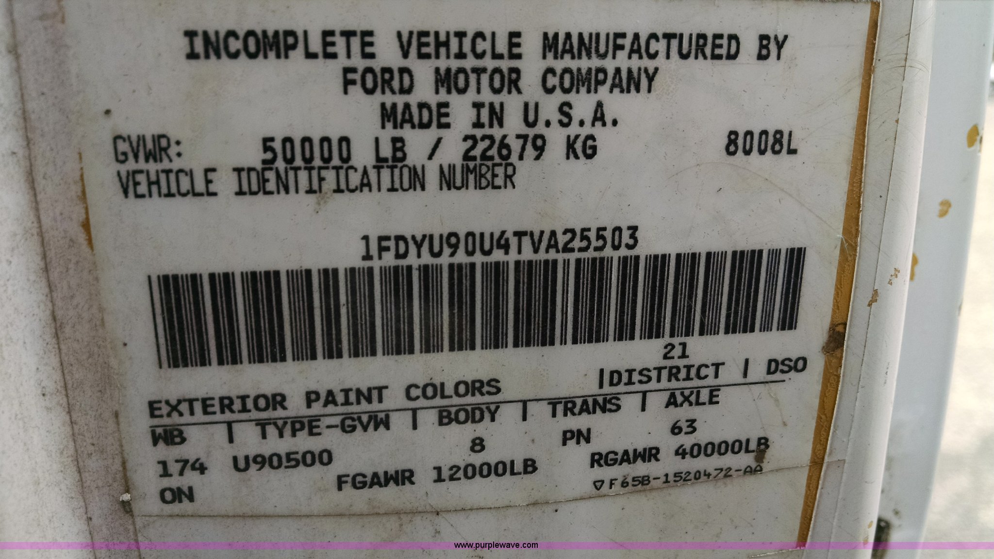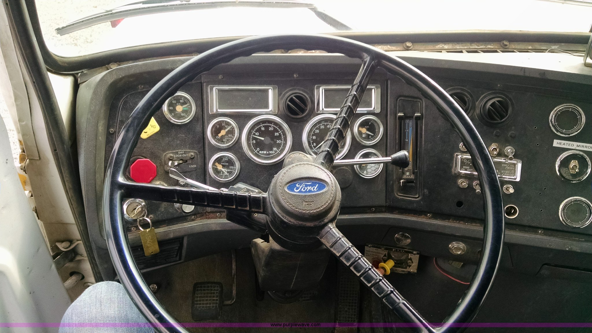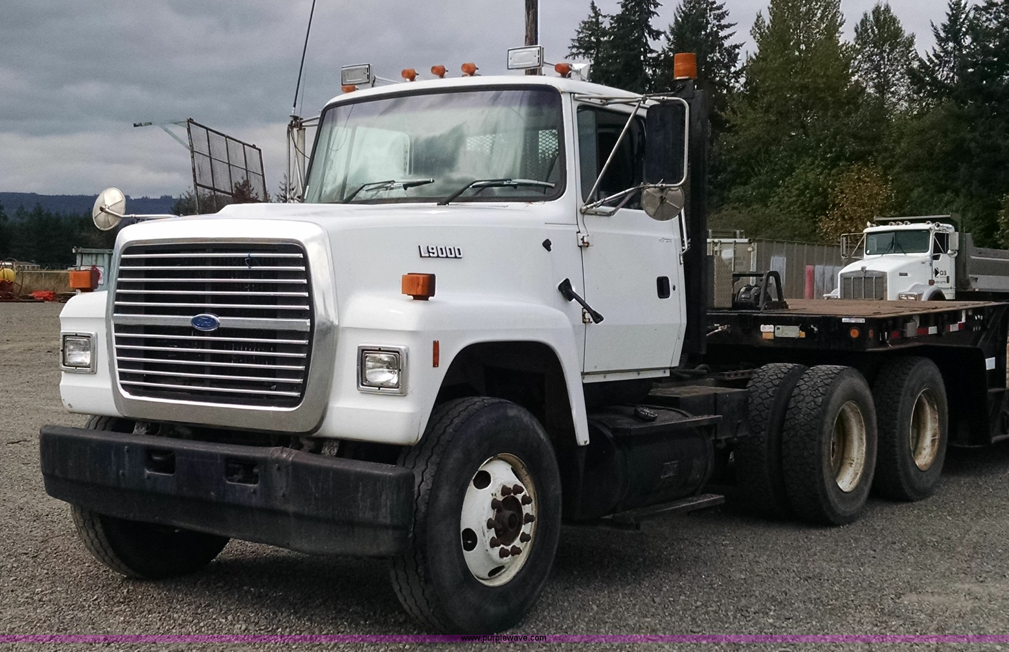 Purple Wave is selling a used Truck Tractor in Washington. This item is a 1996 Ford L9000 semi truck with the following: 270,847 miles on odometer, Cummins N14 14.0L L6 diesel engine, Eaton Fuller 10 speed manual transmission, Locking differential, Heat, Heated mirrors, Air suspension seat, Headache rack, Storage, Chain hanger, Dual 75 gallon fuel tanks, Steel deck plate, Single rear exhaust stack, Air suspension, Air brakes, Jake brake, 174" wheelbase, 11R22.5 tires, GVWR 50,000 lbs, Interior/exterior cosmetic damage