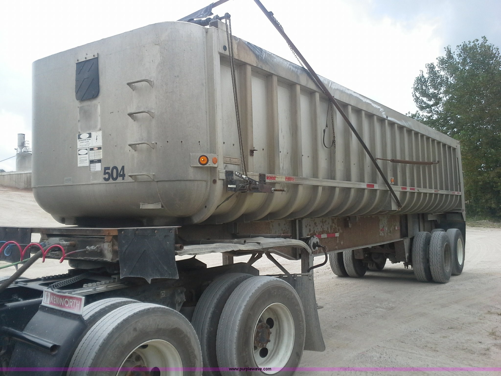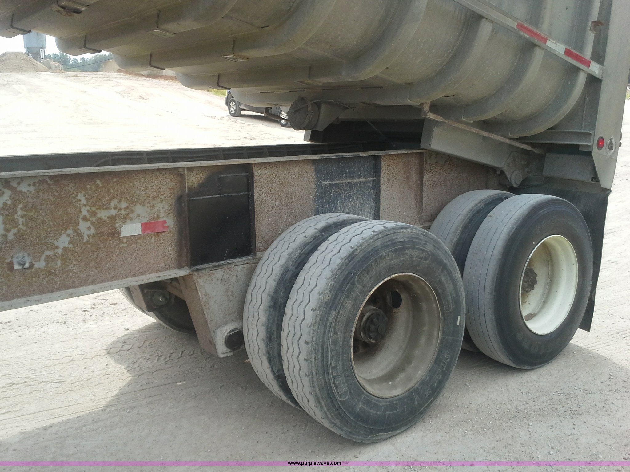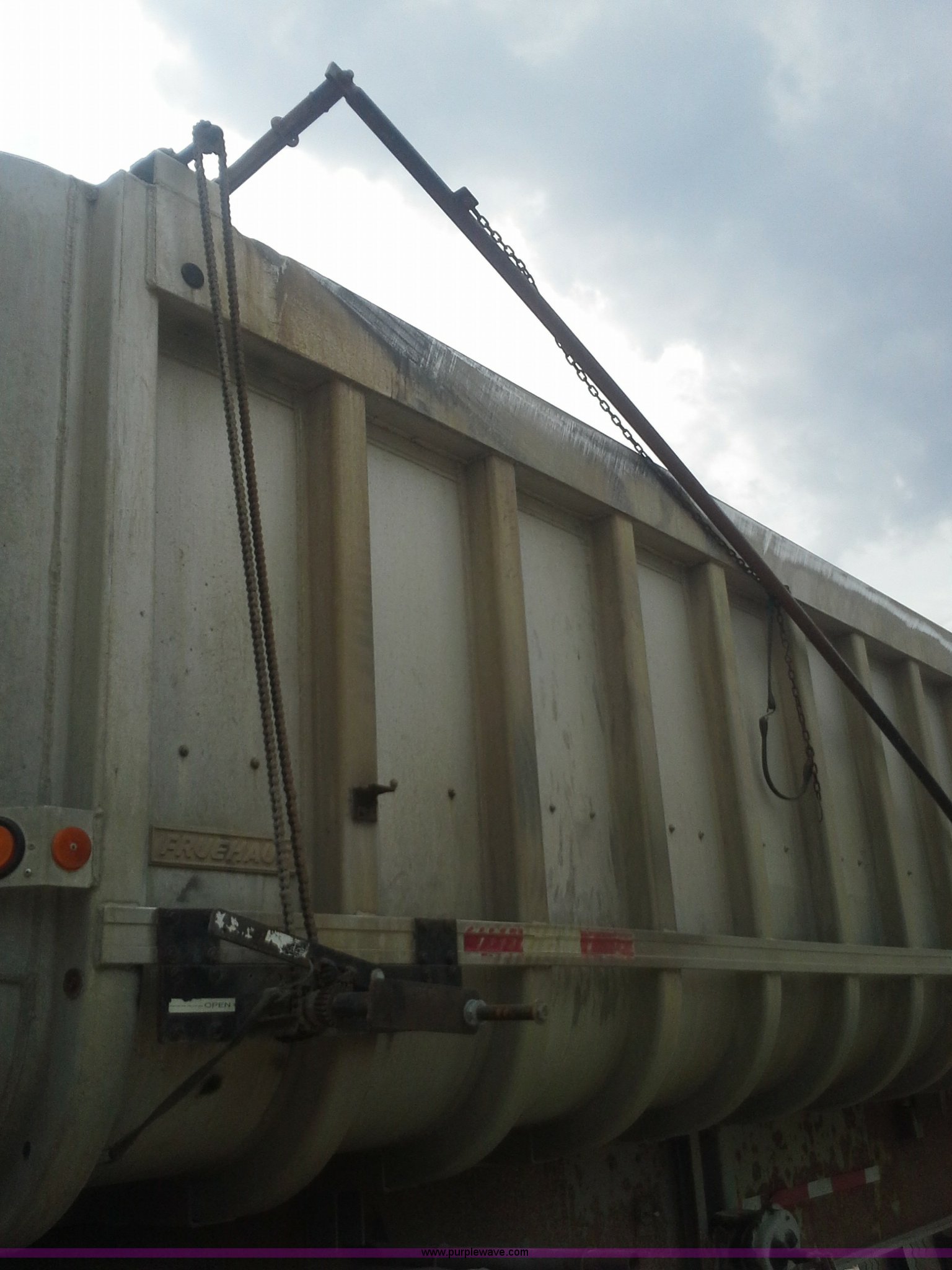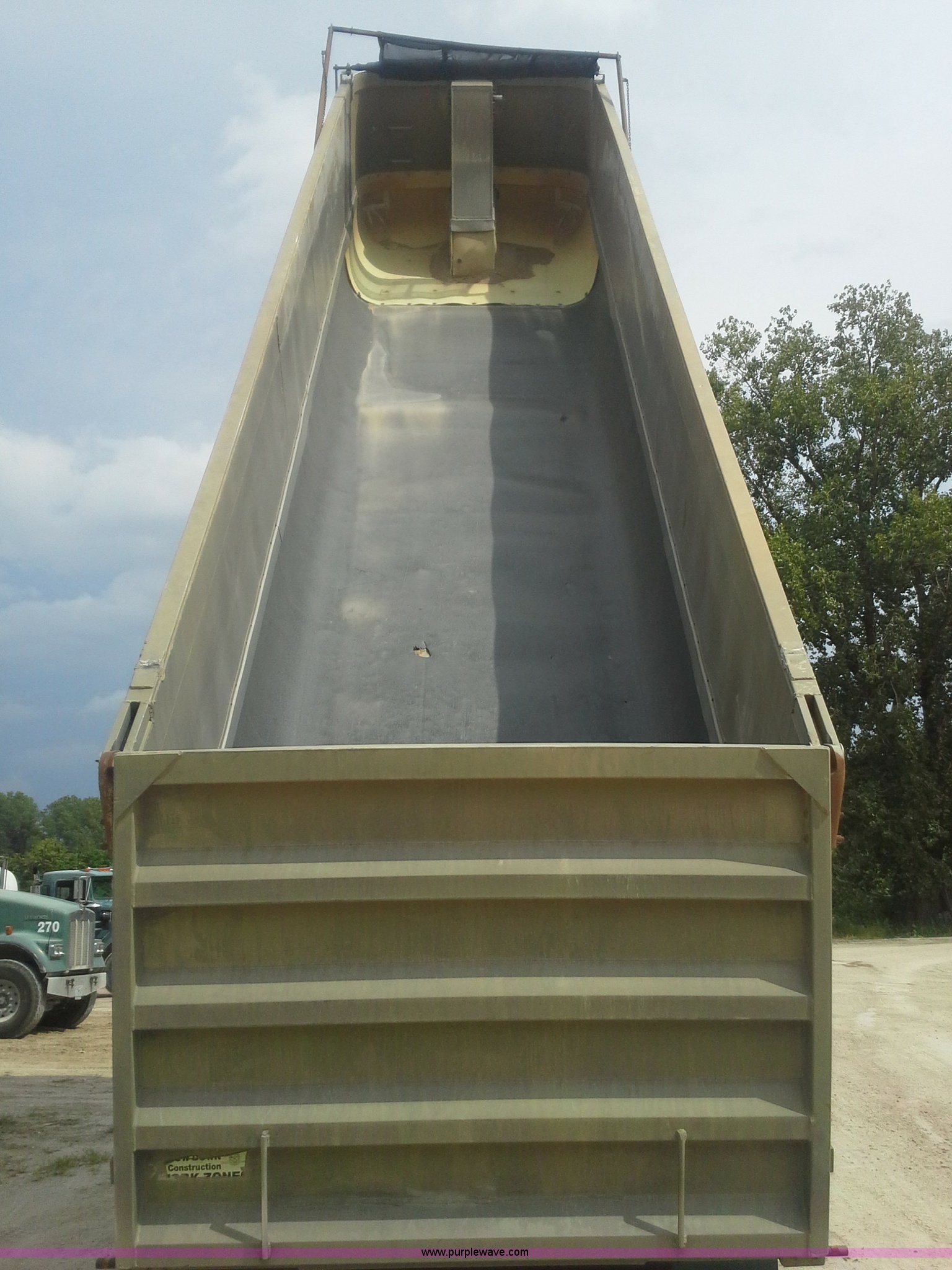 Purple Wave is selling a used End Dump Rock Trailer in Missouri. This item is a 1990 Fruehauf aluminum end dump trailer with the following: Model DA6-32-NDZ-TZ-315, 32'L x 95"W x 61"H sides, Bed liner, Spring assist rollover tarp, Dump valves, Air end gate, Two speed jack stand, Rear mudflap/skirt, Steel frame, Air suspension, Air brakes, 11R22.5 tires, GVWR 90,000 lbs, Recently replaced rear bushings, Rear axle tracking is out of sync