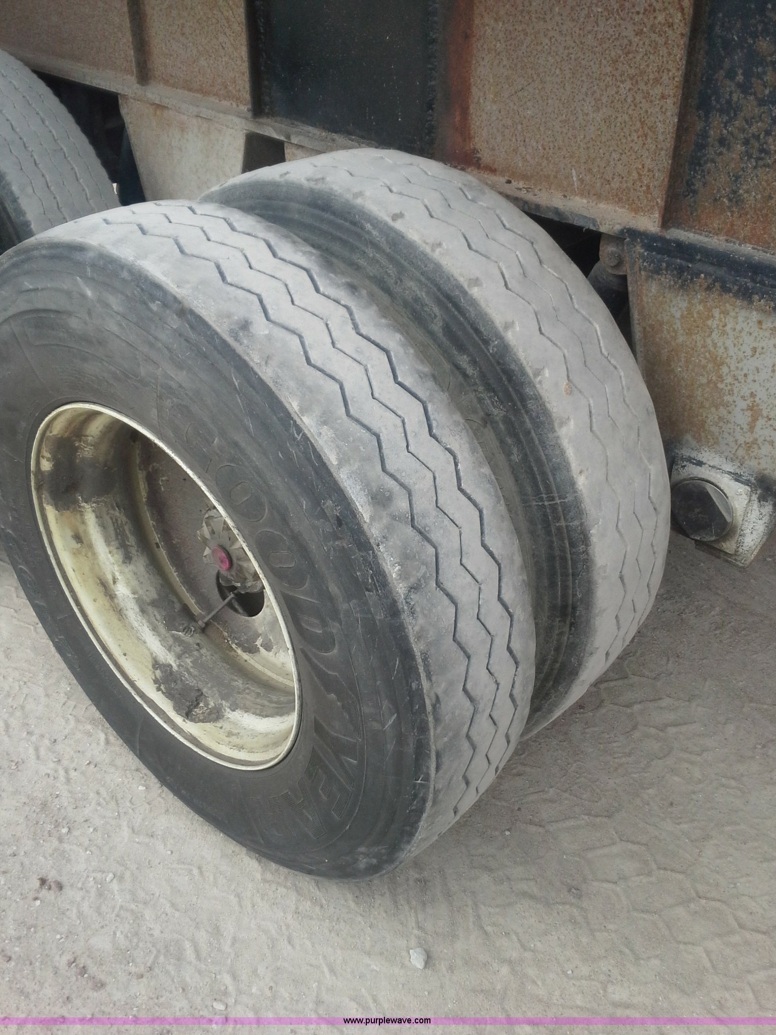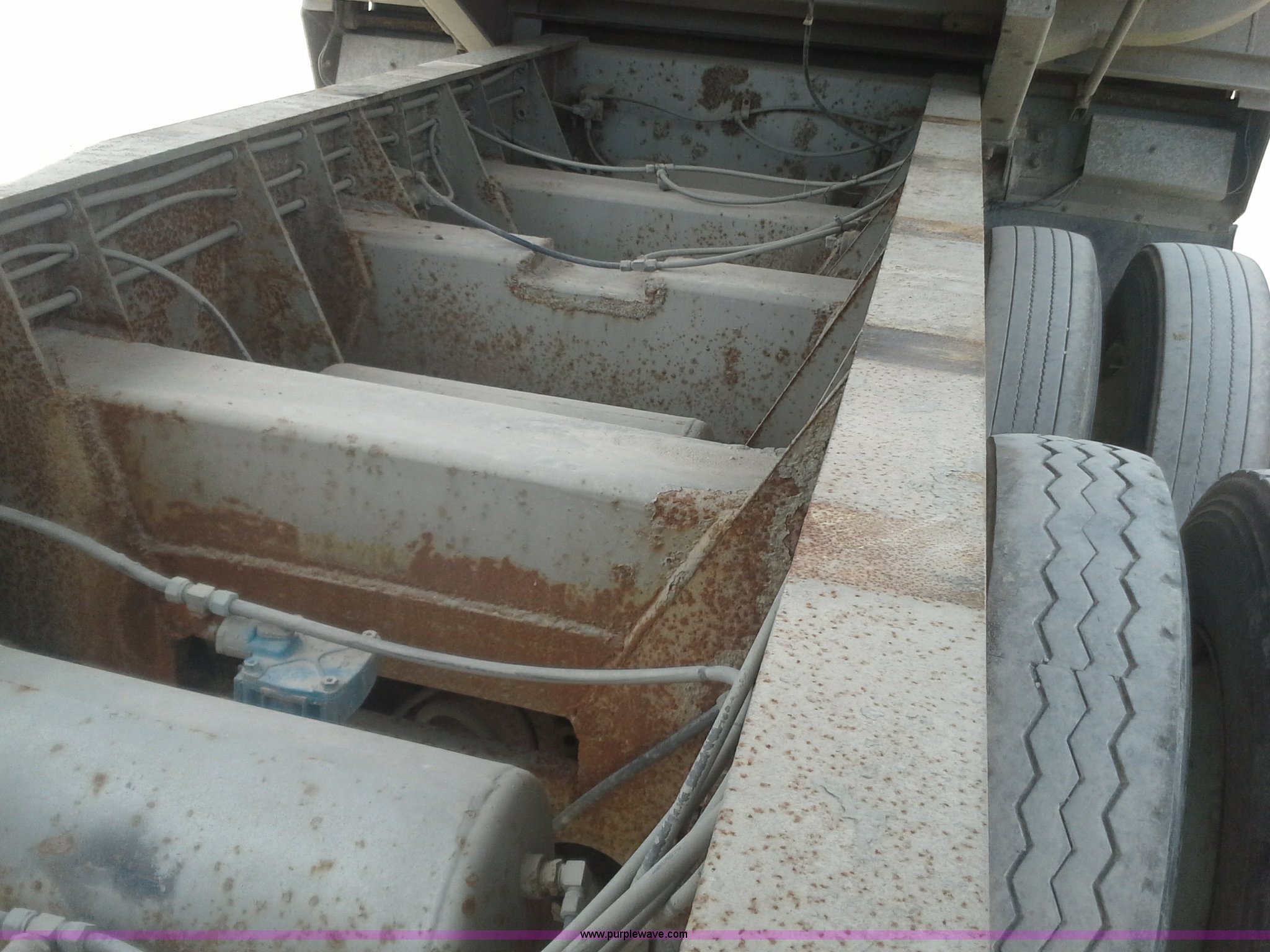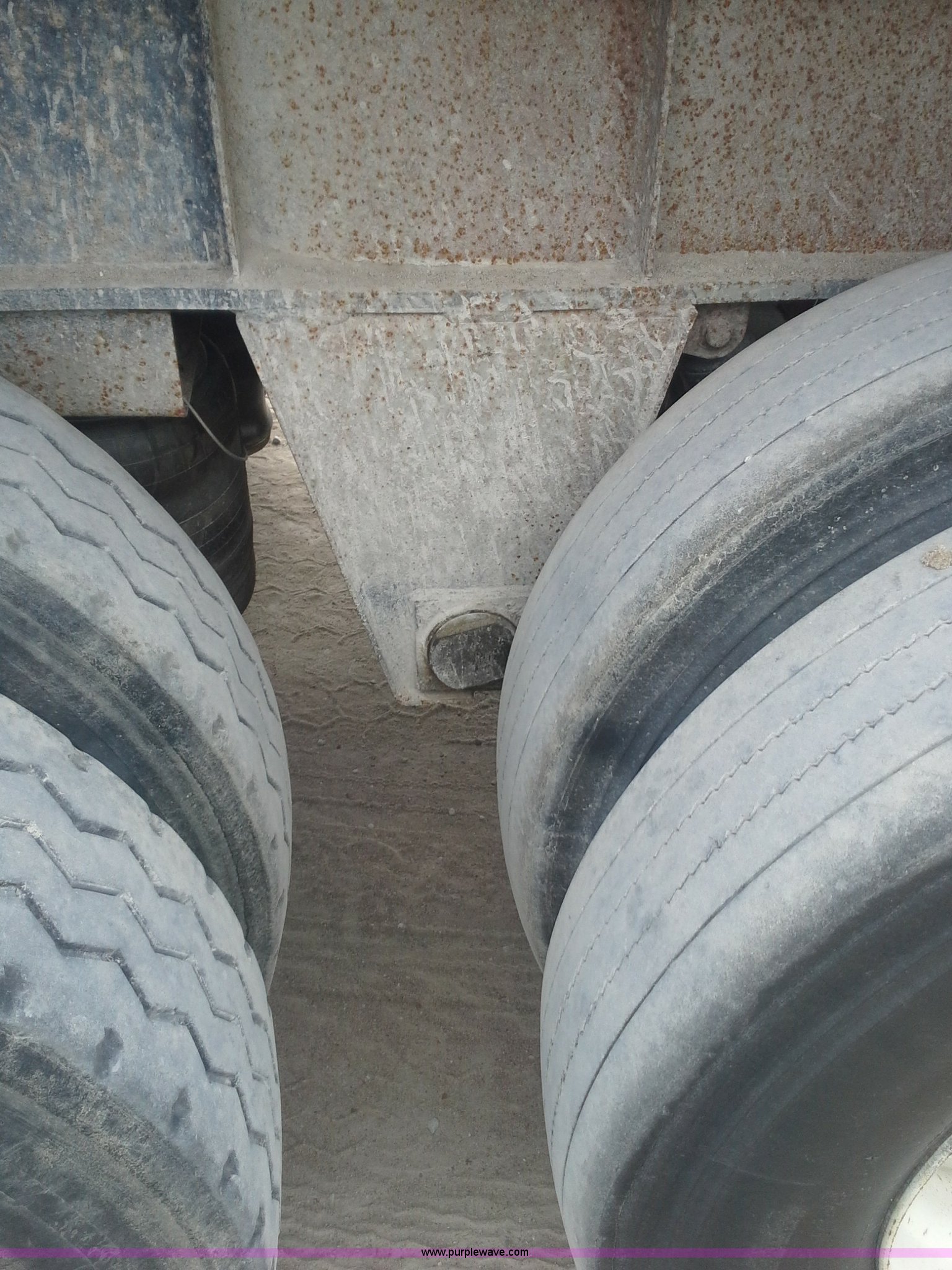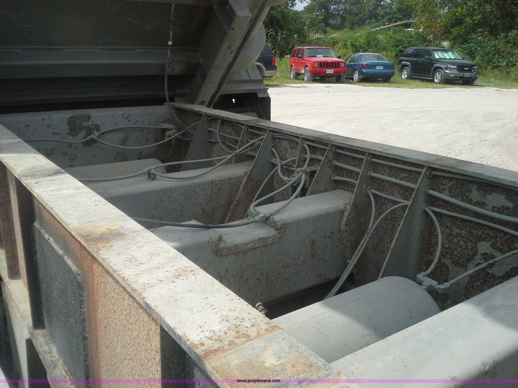 Purple Wave is selling a used End Dump Rock Trailer in Missouri. This item is a 1990 Fruehauf aluminum end dump trailer with the following: Model DA6-32-NDZ-TZ-315, 32'L x 95"W x 61"H sides, Bed liner, Spring assist rollover tarp, Dump valves, Air end gate, Two speed jack stand, Rear mudflap/skirt, Steel frame, Air suspension, Air brakes, 11R22.5 tires, GVWR 90,000 lbs, Recently replaced rear bushings, Rear axle tracking is out of sync
