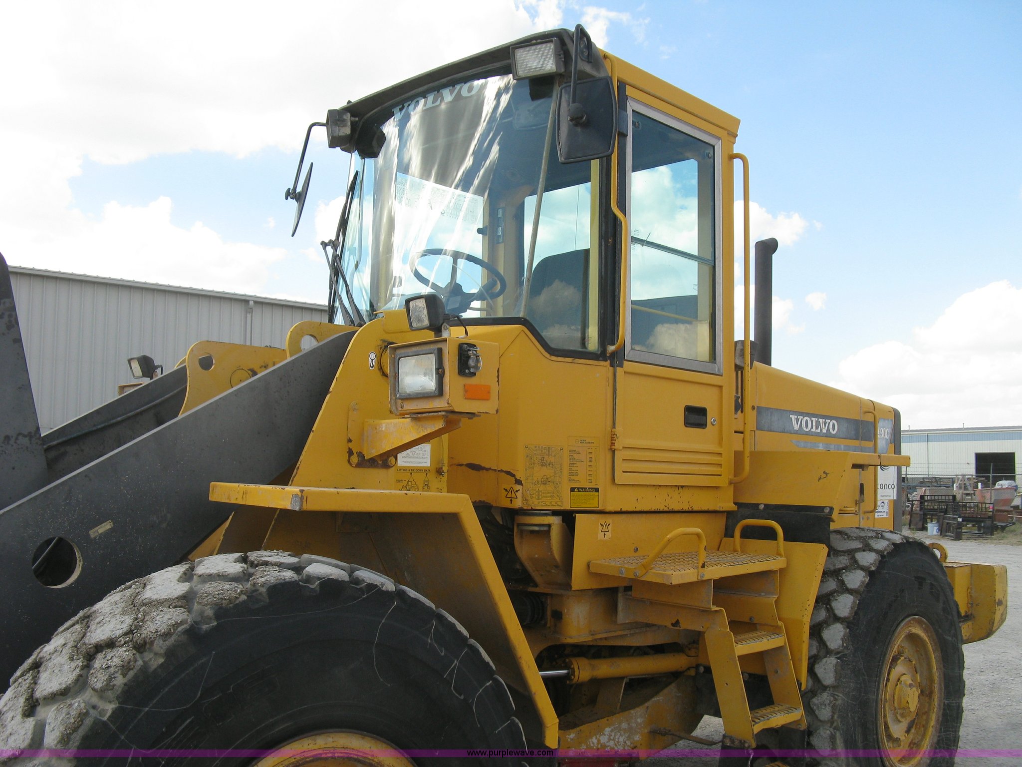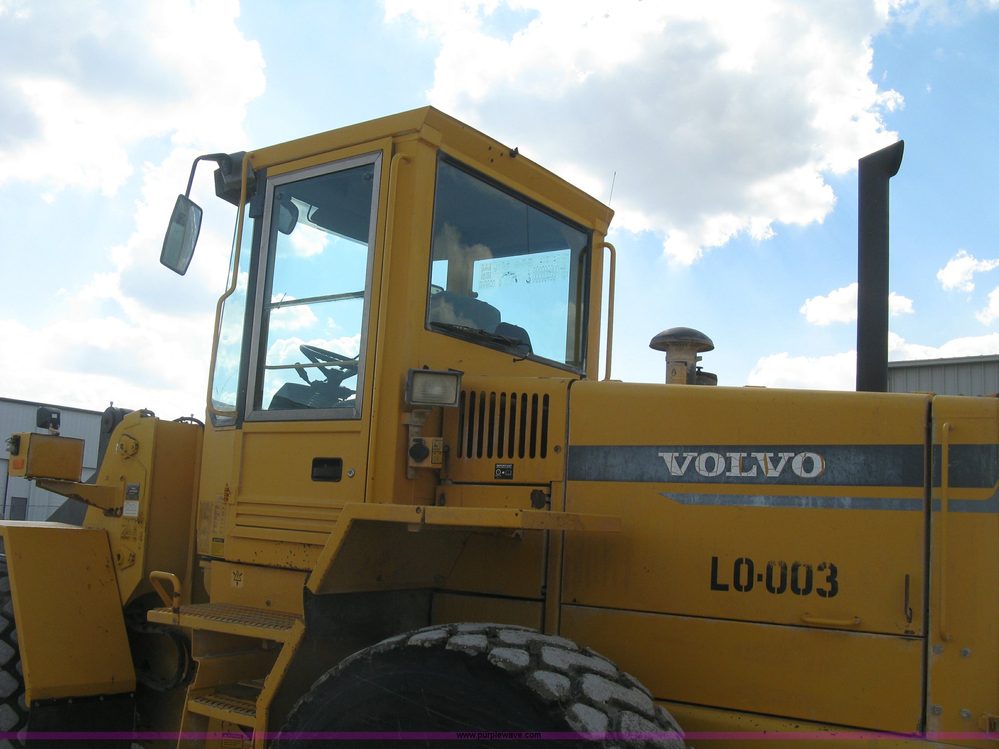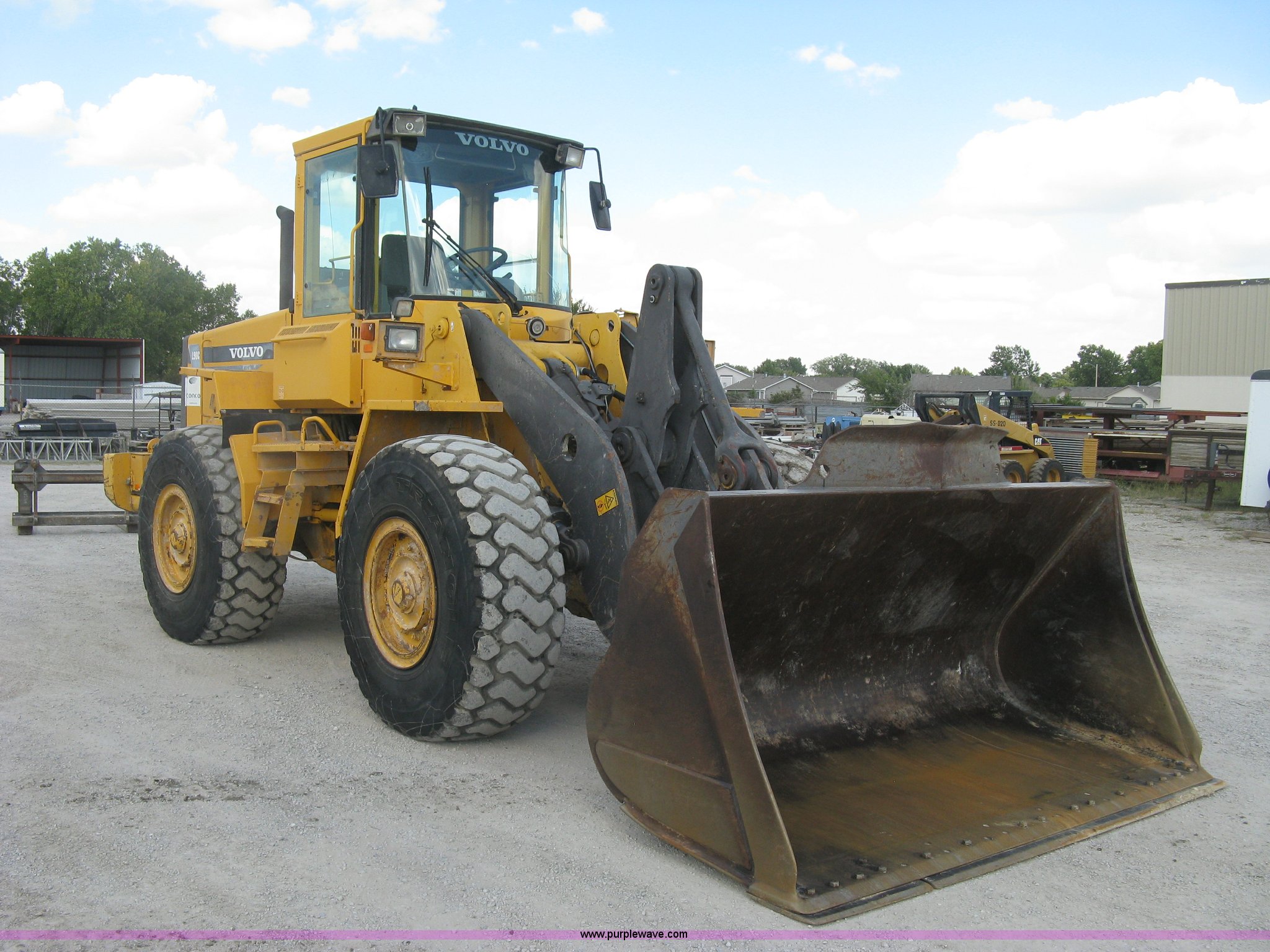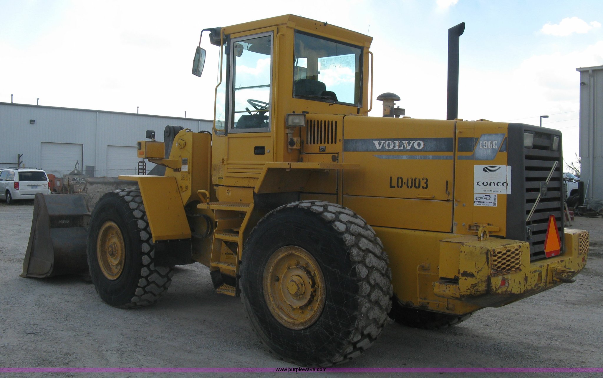 Purple Wave is selling a used Wheel Loader in Kansas. This item is a 1999 Volvo L90C wheel loader with the following: 13,111 hours on meter, Hours will vary, still in use, Volvo 5.5L six cylinder diesel engine, Four speed powershift transmission, Shuttle shift on column, Right side forward/reverse toggle, Four wheel drive, Enclosed cab, AC and heat, Suspension seat, Tilt steering wheel, Two stick loader control, Kick down button,, Front and rear work lights, Rear counter weights, Pin hitch, 104"W bucket, Bolt-on cutting edge, Quick attach forks, 60"W assembly, 56"L x 6"W forks, Quick attach coupler, Triangle TB516 20.5R25 tires, 32,550 lbs. base operating weight, Manuals, One owner, Serial L090CV63420, Unit# L0-003