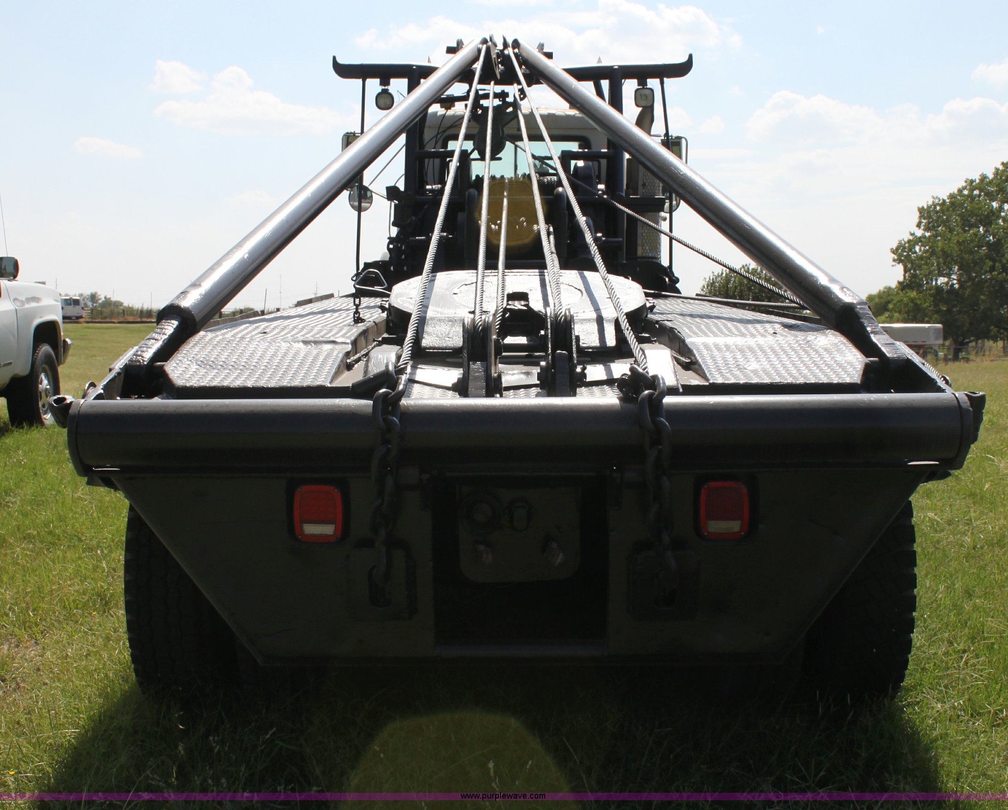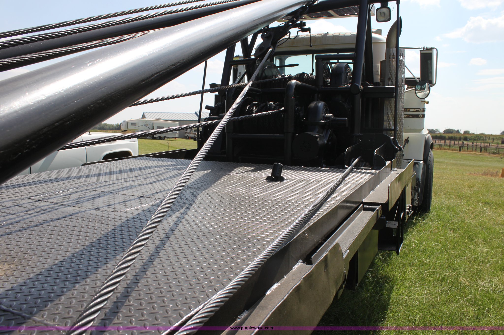 Purple Wave is selling a used Rollback or Tow Truck in Oklahoma. This item is a 1995 Mack RD6 rigging truck with the following: 520,317 miles on odometer, 27,692 hours on meter, Mack E7 12.0L L6 diesel engine, 13 speed manual transmission, Heat, AM/FM, Air suspension seat, PTO, Approximately 16'L oil field bed, Rolling tail board, Approximately 17' gin poles, Adjustable, Winch operated, Pipe front bumper, (2) PTO driven winches, Pipe front bumper, Spring suspension, Air brakes, 445/65R22.5 front tires, 11R22.5 rear tires, Interior/exterior cosmetic damage