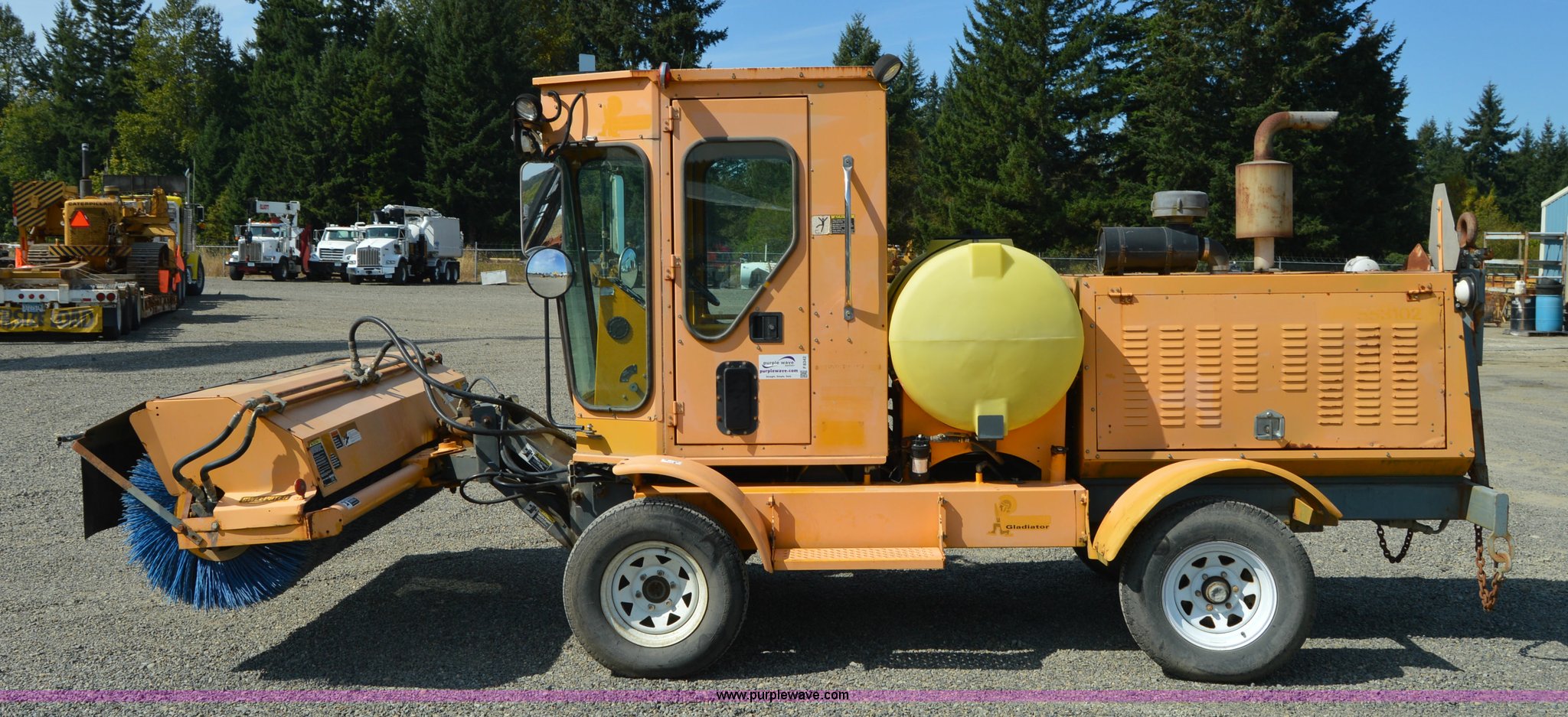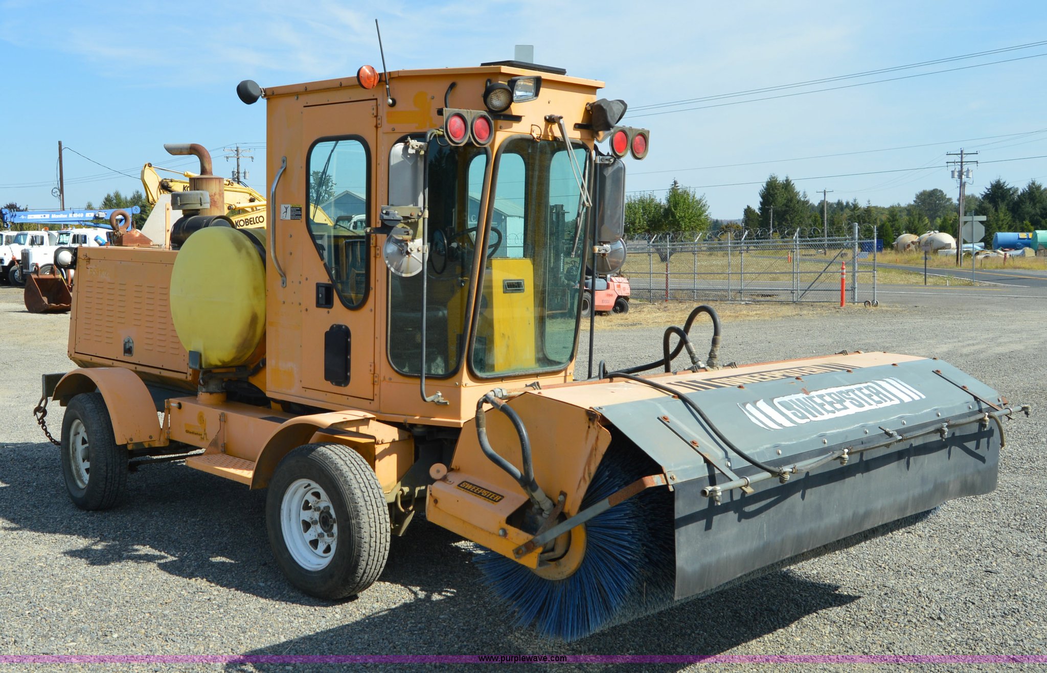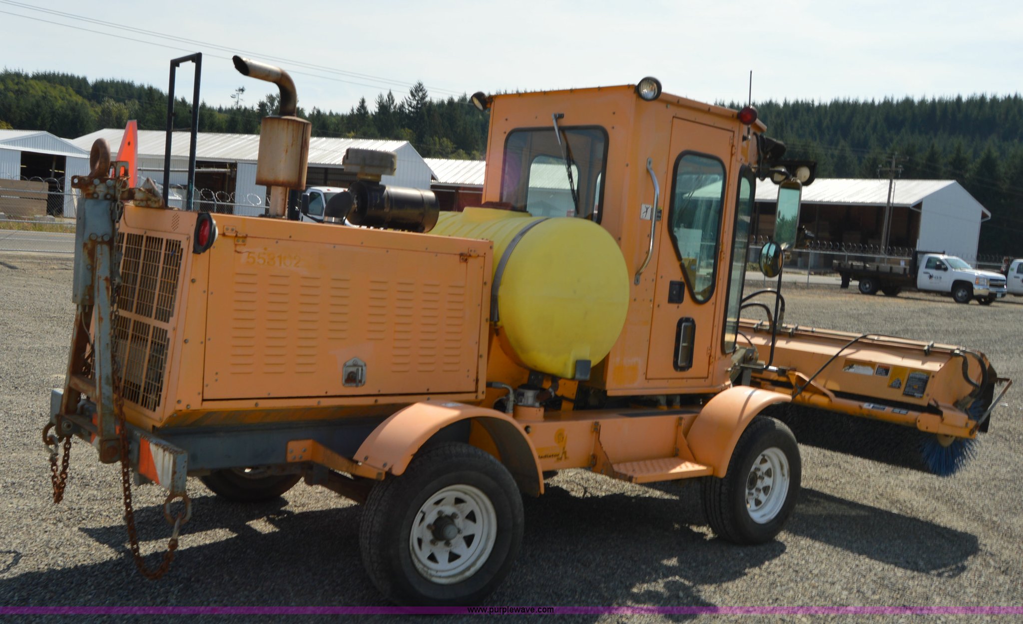 Purple Wave is selling a used Broom in Washington. This item is a 2001 Sweepster road broom with the following: 545 hours on meter, Cummins four cylinder diesel engine, Hi-Lo transmission, EROPS, AC and heat, AM/FM/cassette, Work lights, Water system, 8'W broom, Rear tow hitch, 225/75R15 tires, Serial 0125041
