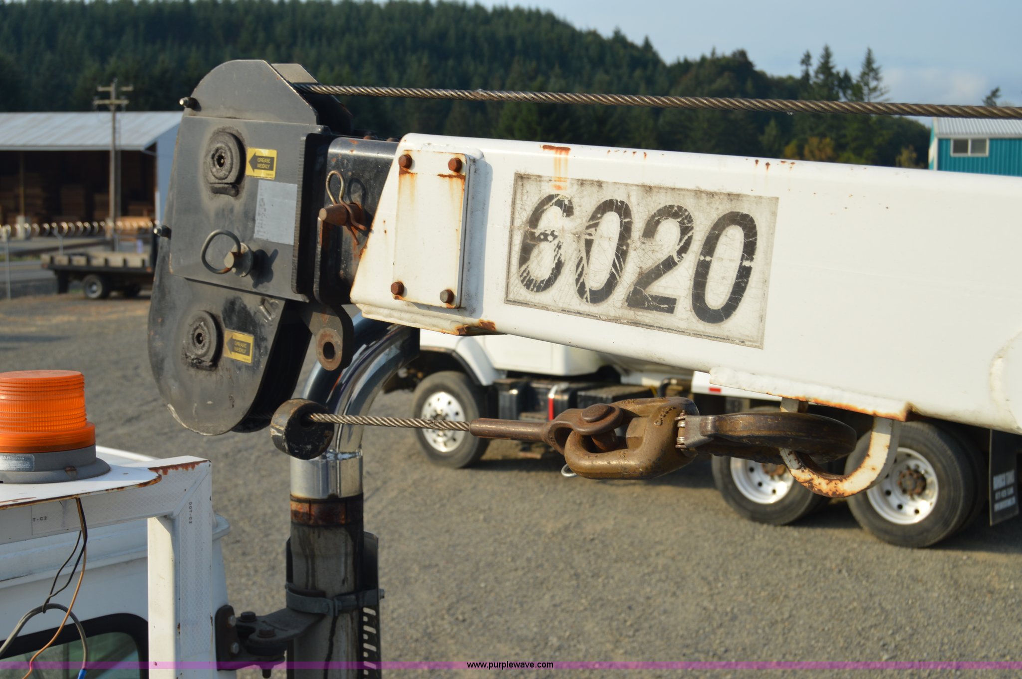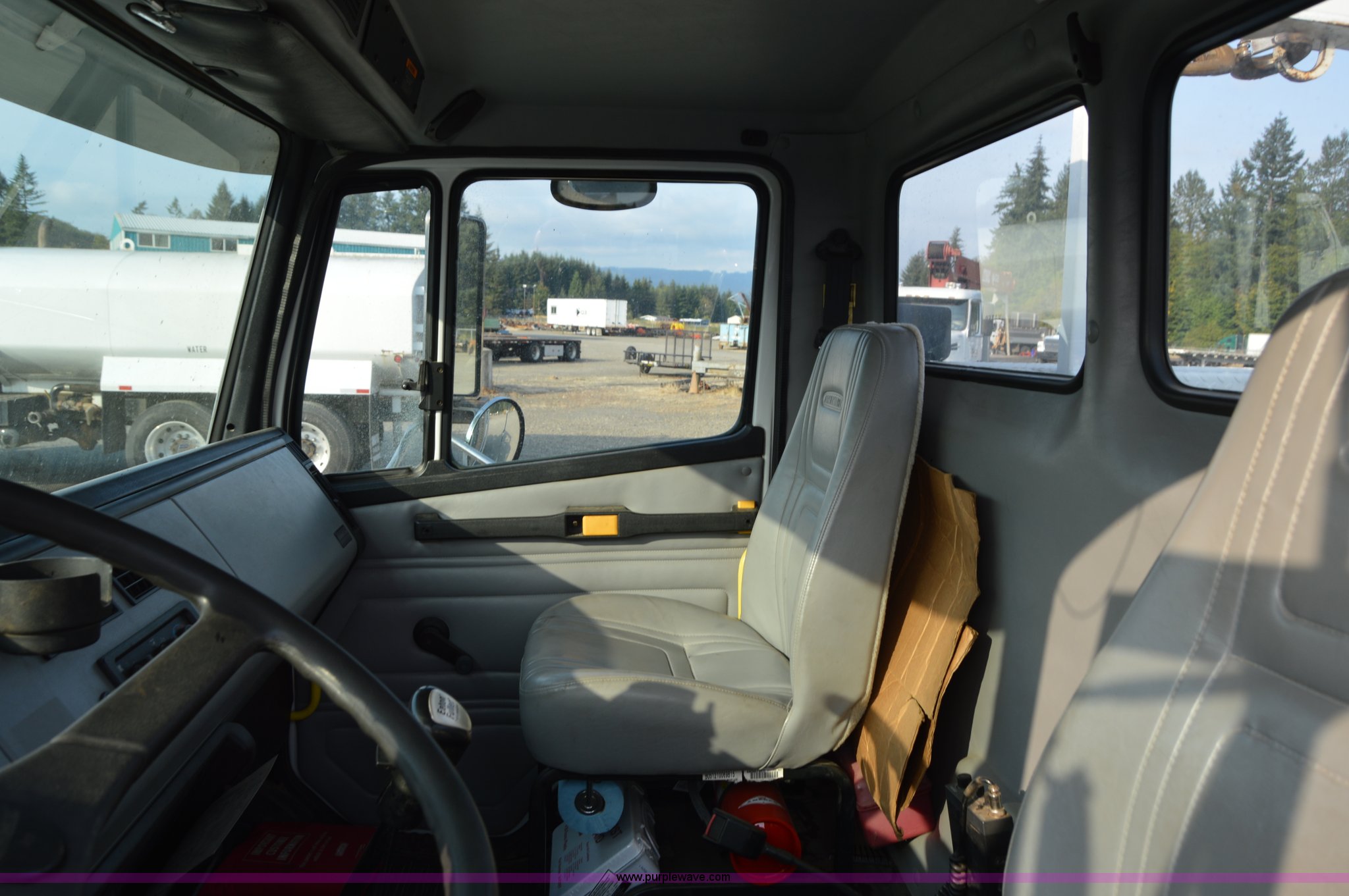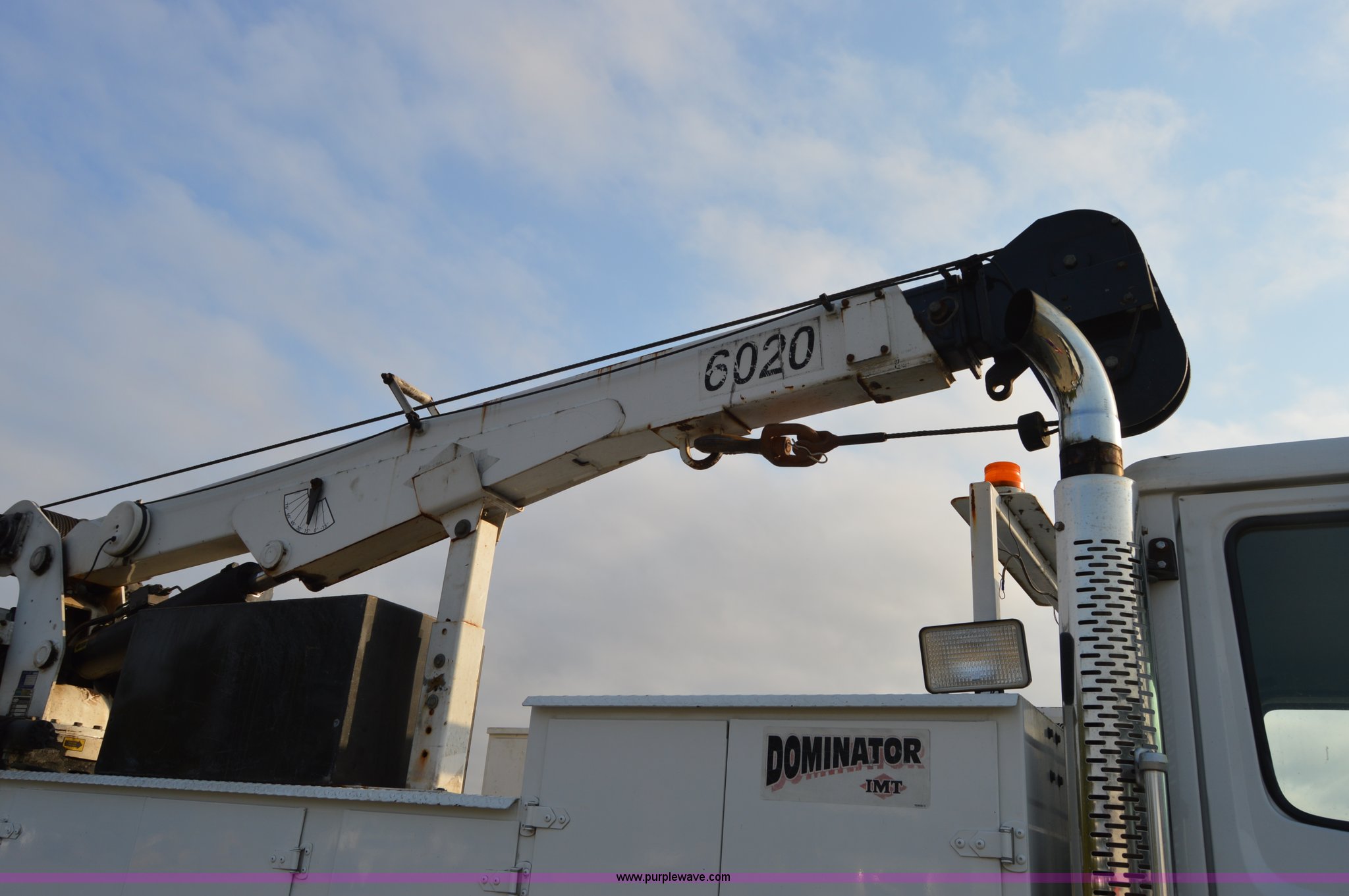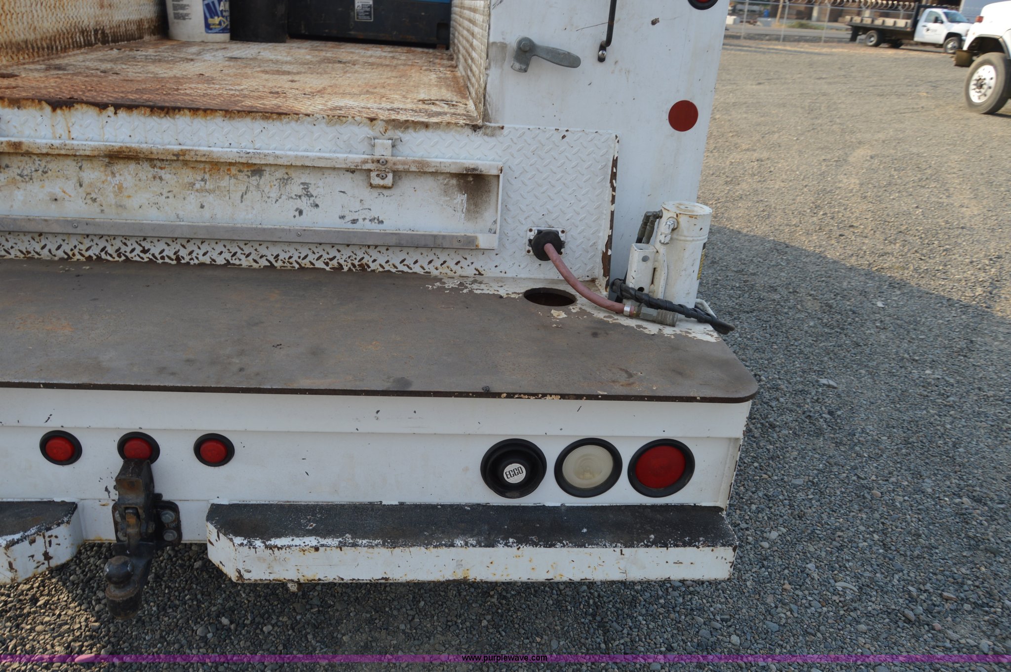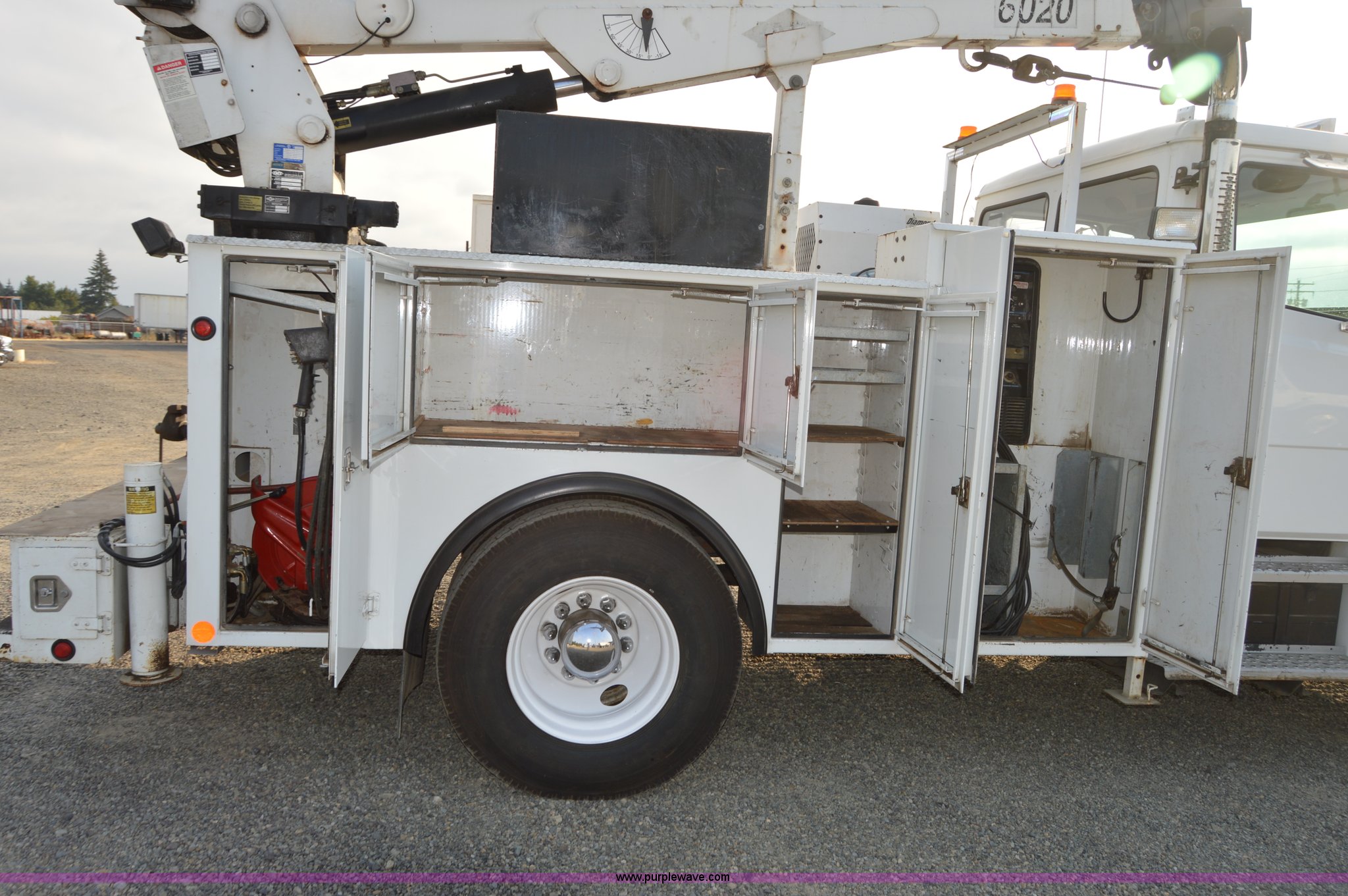 Purple Wave is selling a used Service Truck in Washington. This item is a 2000 Freightliner FL70 service truck with the following: 120,754 miles on odometer, 5,453 hours on meter, Caterpillar 3126 7.2L L6 diesel engine, Serial 8YL47709, Eaton Fuller nine speed manual transmission, AC and heat, Cruise, AM/FM/cassette, Manual windows and locks, Vinyl interior, Air suspension seat, Trailer brake controller, IMT D0M2-11 utility bed, Rear hydraulic outriggers, Rear work bench bumper, Rear vise, IMT DA435HA hydraulic air compressor, Work lights, Miller Trailblazer 28NT welder/generator, 337 hours on meter, 240/120V outputs, 8,000 watts, IMT Rotator 6020 crane, Model 170-00014-1, Serial 00B00023-01,, Exterior visor, Dual 50 gallon fuel tanks, Chrome front bumper, Air brakes, Aluminum wheels, 11R22.5 tires, GVWR 33,000 lbs, FAWR 12,000 lbs, RAWR 21,000 lbs, Unit# 110439