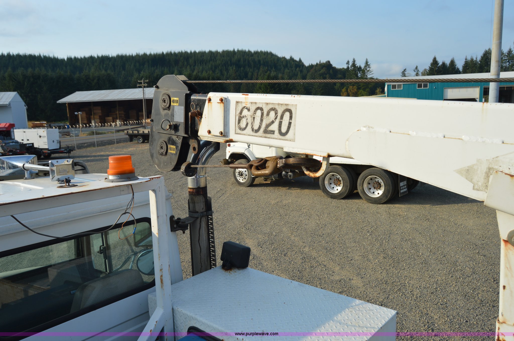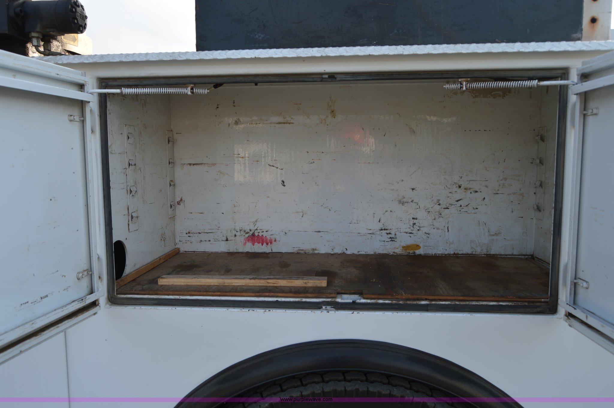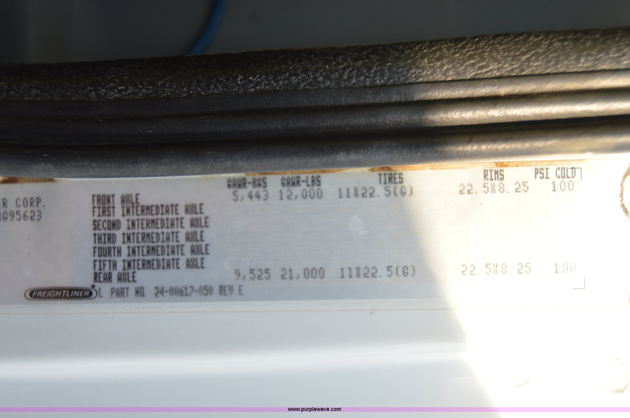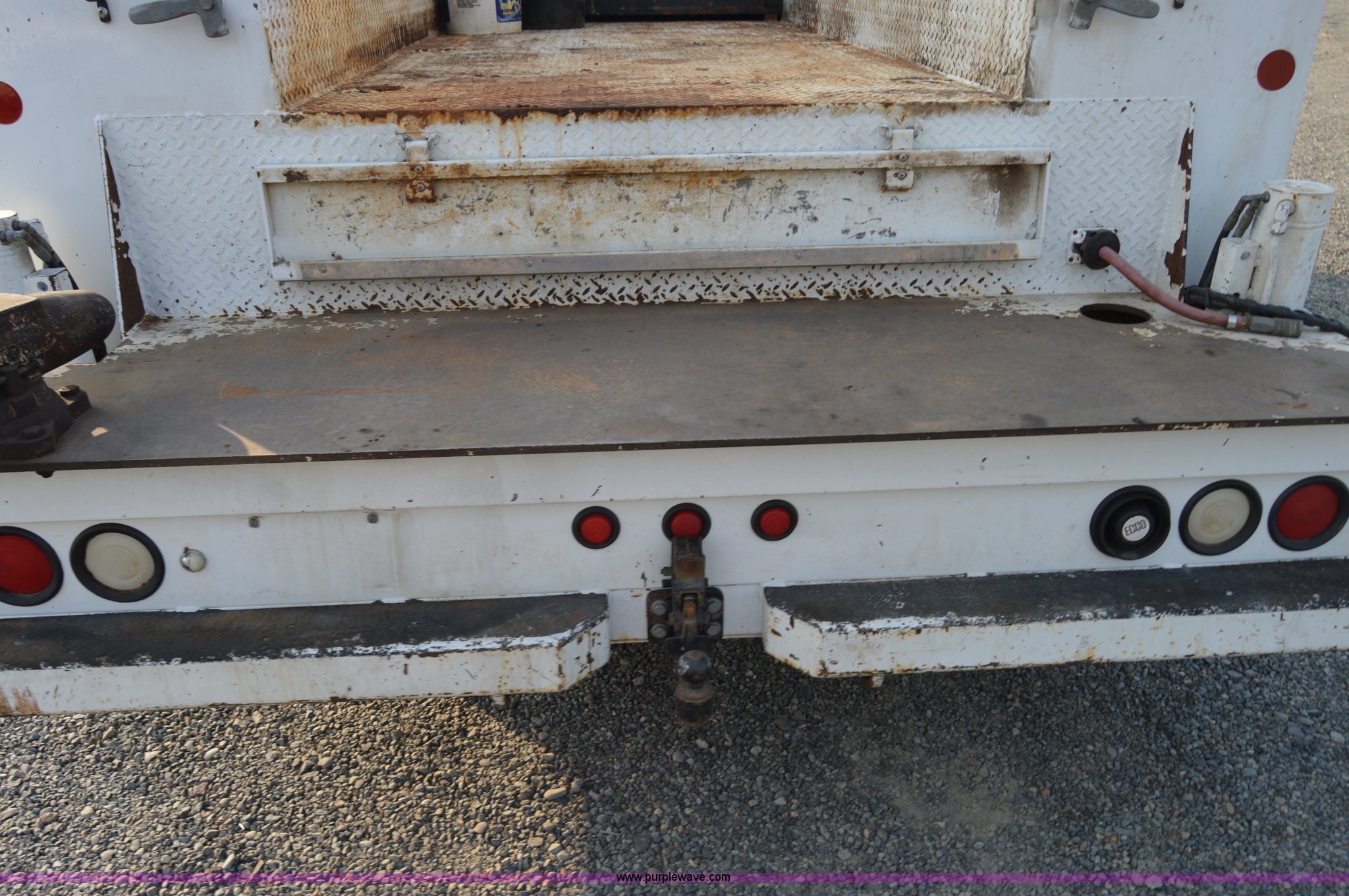 Purple Wave is selling a used Service Truck in Washington. This item is a 2000 Freightliner FL70 service truck with the following: 120,754 miles on odometer, 5,453 hours on meter, Caterpillar 3126 7.2L L6 diesel engine, Serial 8YL47709, Eaton Fuller nine speed manual transmission, AC and heat, Cruise, AM/FM/cassette, Manual windows and locks, Vinyl interior, Air suspension seat, Trailer brake controller, IMT D0M2-11 utility bed, Rear hydraulic outriggers, Rear work bench bumper, Rear vise, IMT DA435HA hydraulic air compressor, Work lights, Miller Trailblazer 28NT welder/generator, 337 hours on meter, 240/120V outputs, 8,000 watts, IMT Rotator 6020 crane, Model 170-00014-1, Serial 00B00023-01,, Exterior visor, Dual 50 gallon fuel tanks, Chrome front bumper, Air brakes, Aluminum wheels, 11R22.5 tires, GVWR 33,000 lbs, FAWR 12,000 lbs, RAWR 21,000 lbs, Unit# 110439