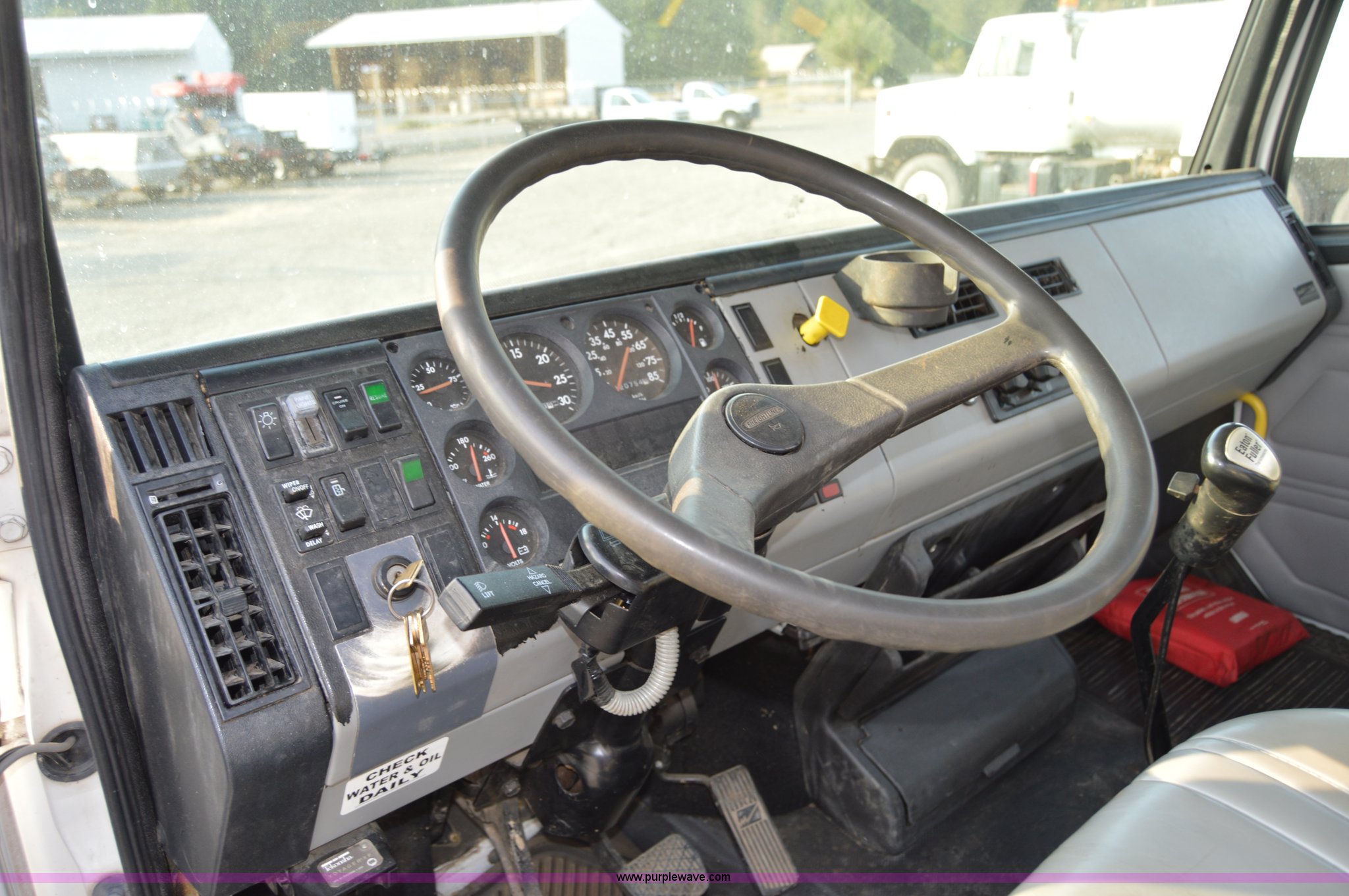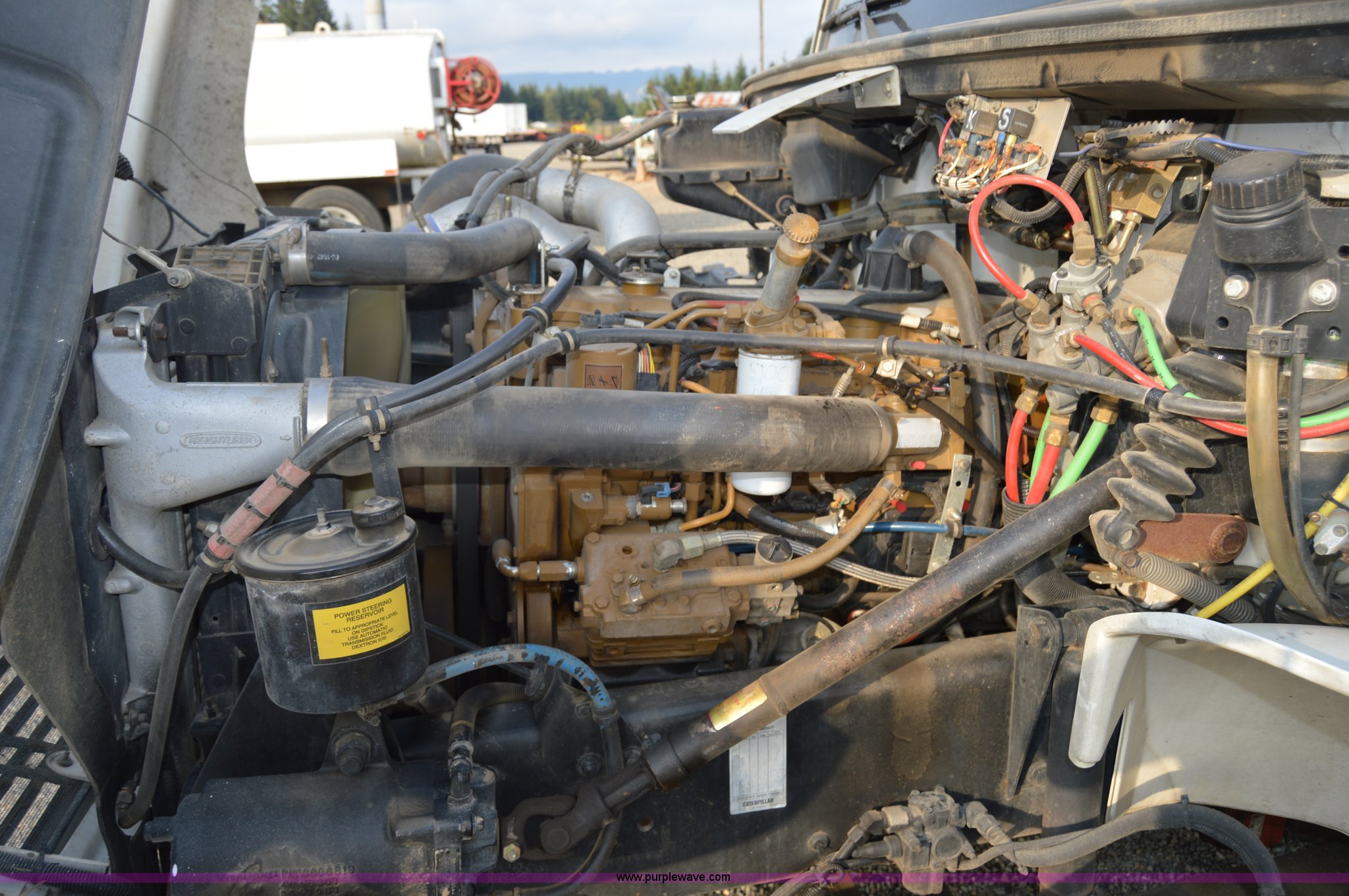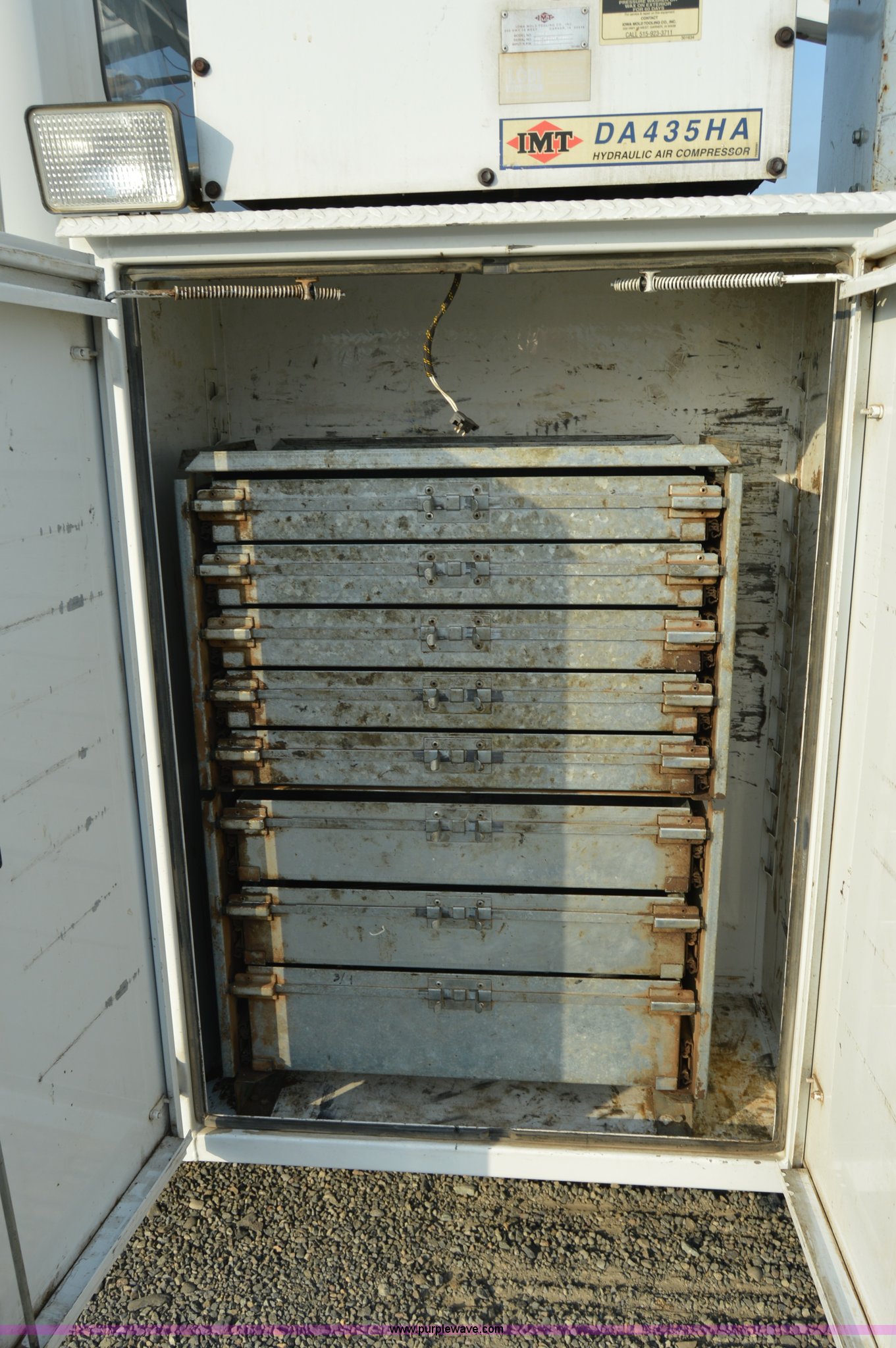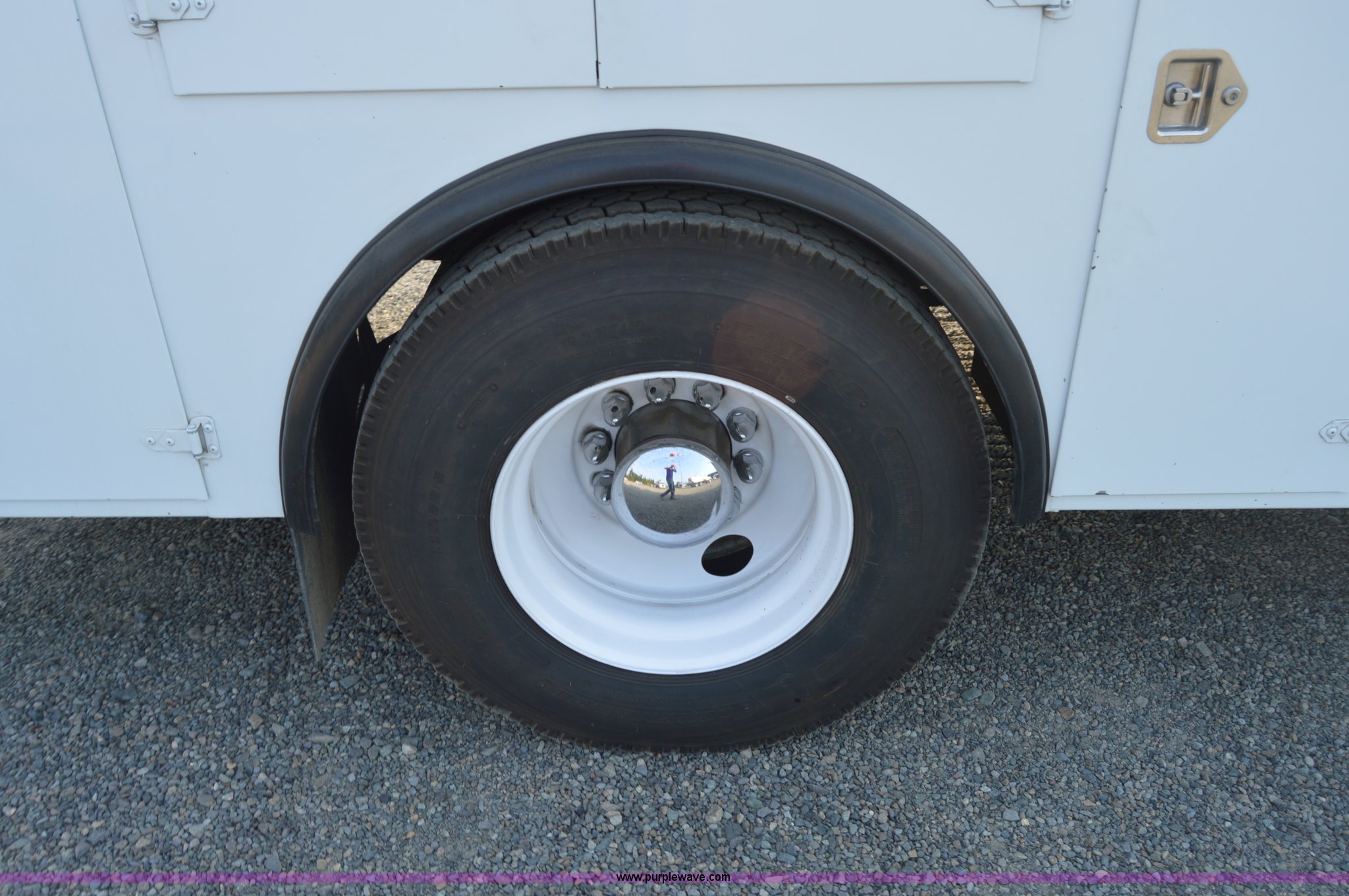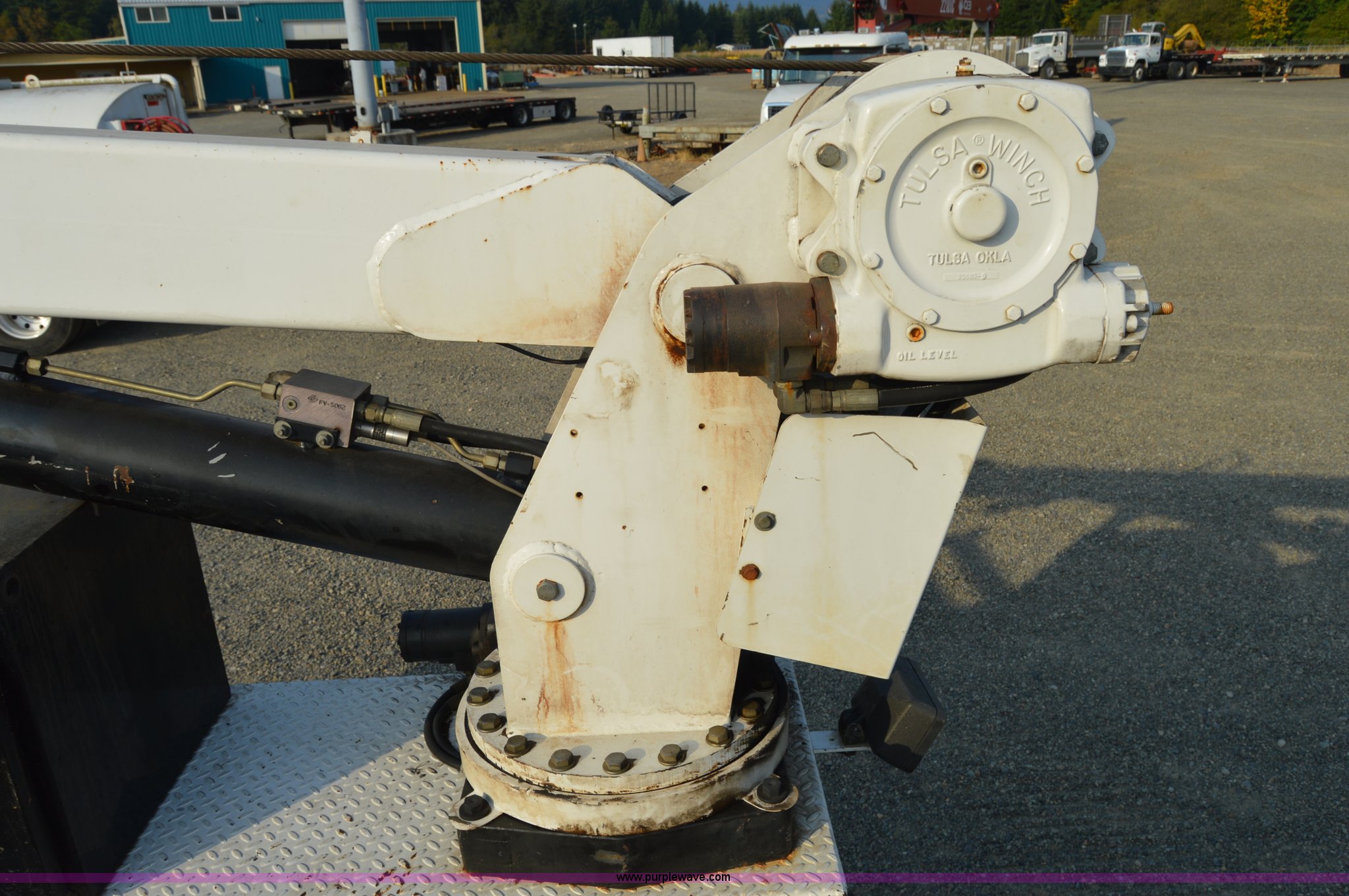 Purple Wave is selling a used Service Truck in Washington. This item is a 2000 Freightliner FL70 service truck with the following: 120,754 miles on odometer, 5,453 hours on meter, Caterpillar 3126 7.2L L6 diesel engine, Serial 8YL47709, Eaton Fuller nine speed manual transmission, AC and heat, Cruise, AM/FM/cassette, Manual windows and locks, Vinyl interior, Air suspension seat, Trailer brake controller, IMT D0M2-11 utility bed, Rear hydraulic outriggers, Rear work bench bumper, Rear vise, IMT DA435HA hydraulic air compressor, Work lights, Miller Trailblazer 28NT welder/generator, 337 hours on meter, 240/120V outputs, 8,000 watts, IMT Rotator 6020 crane, Model 170-00014-1, Serial 00B00023-01,, Exterior visor, Dual 50 gallon fuel tanks, Chrome front bumper, Air brakes, Aluminum wheels, 11R22.5 tires, GVWR 33,000 lbs, FAWR 12,000 lbs, RAWR 21,000 lbs, Unit# 110439