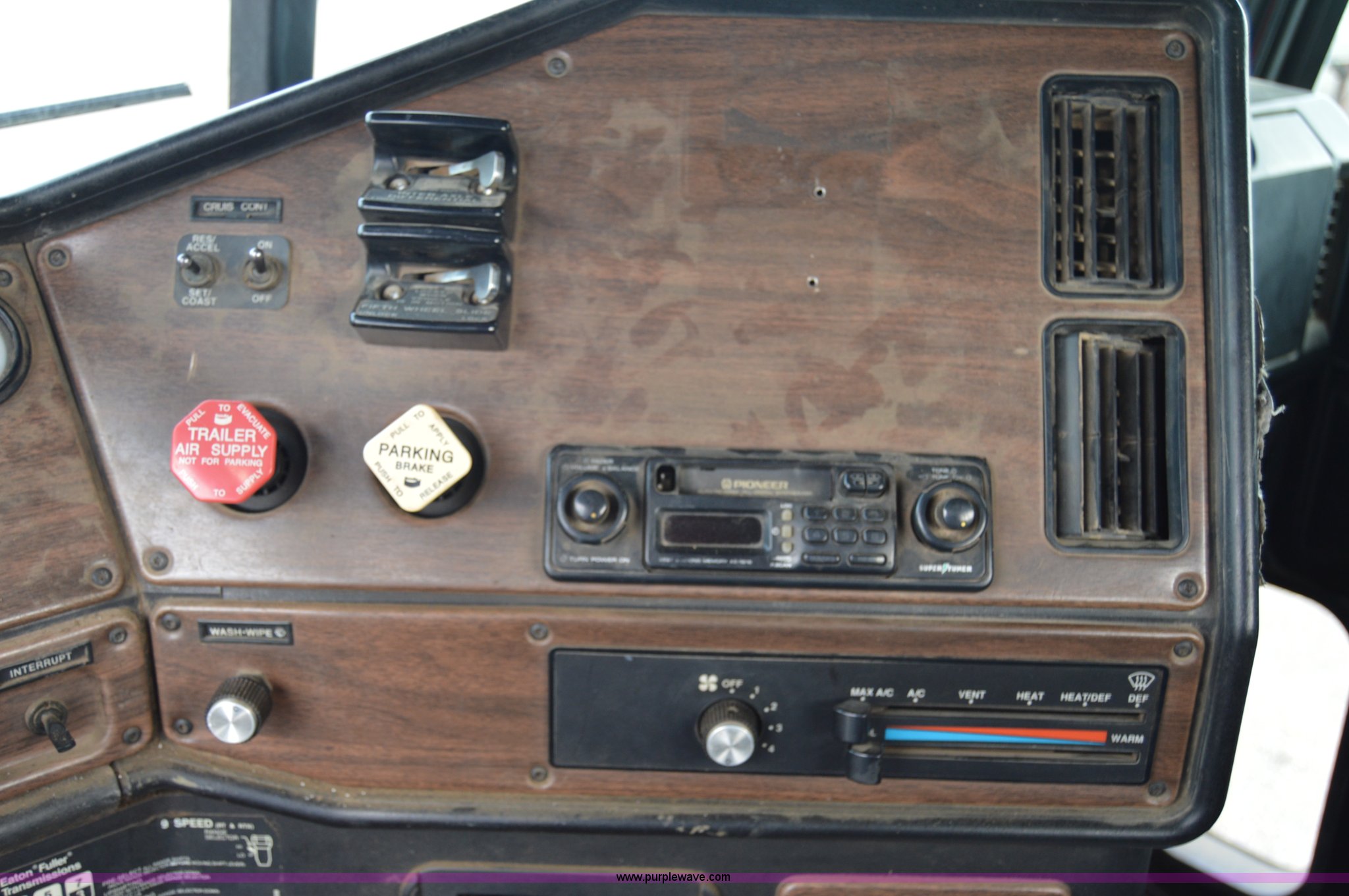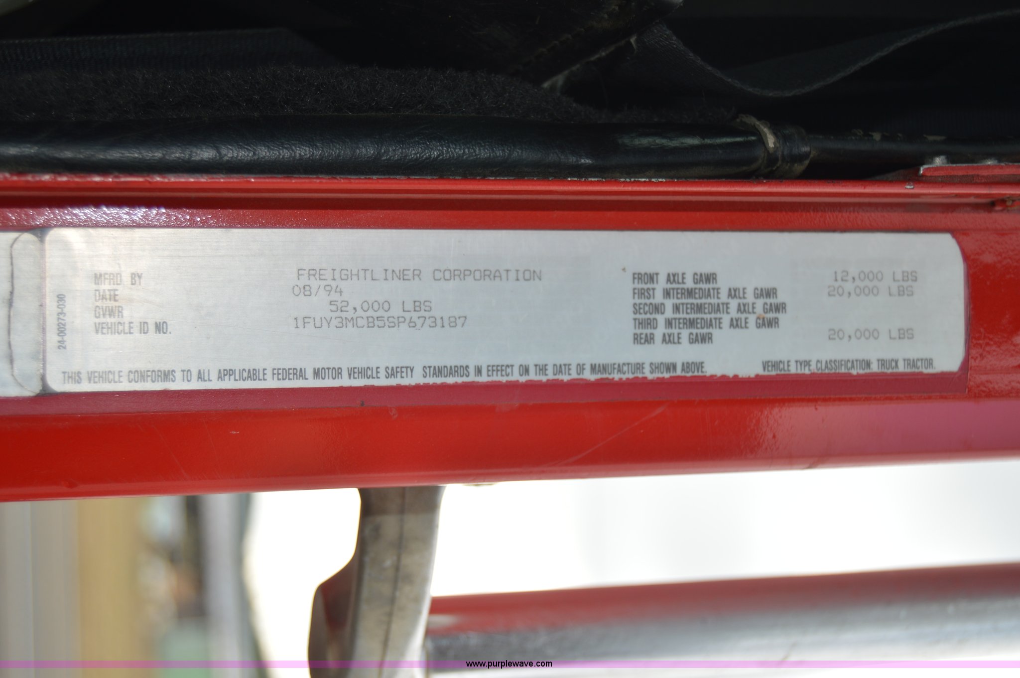 Purple Wave is selling a used Truck Tractor in Washington. This item is a 1995 Freightliner FLD112 semi truck with the following: 317,777 miles on odometer, Cummins M11 10.8L L6 diesel engine, Eaton Fuller nine speed transmission, AC and heat, Cruise, AM/FM/cassette, Air suspension seat, Passenger daylight door, Exterior visor, Headache rack, Window, Chain hanger, Air slide fifth wheel plate, Stainless steel quarter fenders, Dual fuel tanks, Aluminum deck plate, Single rear exhaust stack, Air suspension, Air brakes, Aluminum wheels, 11R22.5 tires, GVWR 52,000 lbs, FAWR 12,000 lbs, IAWR 20,000 lbs, RAWR 20,000 lbs, Interior/exterior cosmetic damage, Batteries dead