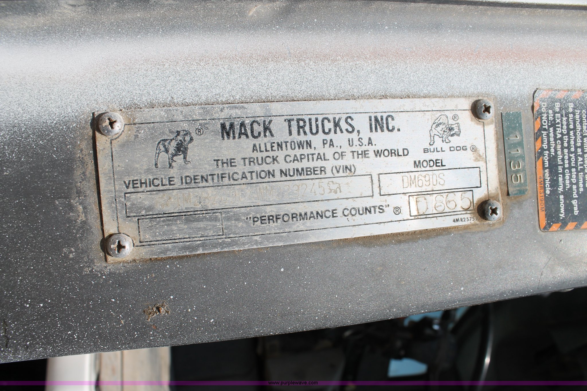 Purple Wave is selling a used Ready Mix or Pump Truck in Texas. This item is a 1998 Mack DM690S mixer truck with the following: 222,006 miles on odometer, Mack EM6-250L six cylinder diesel engine, Seven speed manual transmission, Heat, AM/FM/CD, Air suspension seat, McNeilus 10.5 cubic yard mixer, 125 gallon water tank, (3) delivery chute extensions, Front mounted hydraulic pump, 70 gallon fuel tank, Single rear exhaust stack, Spring suspension, Air brakes, 204" wheelbase, 385/65R22.5 tires, Recently repainted, Recent DOT certification