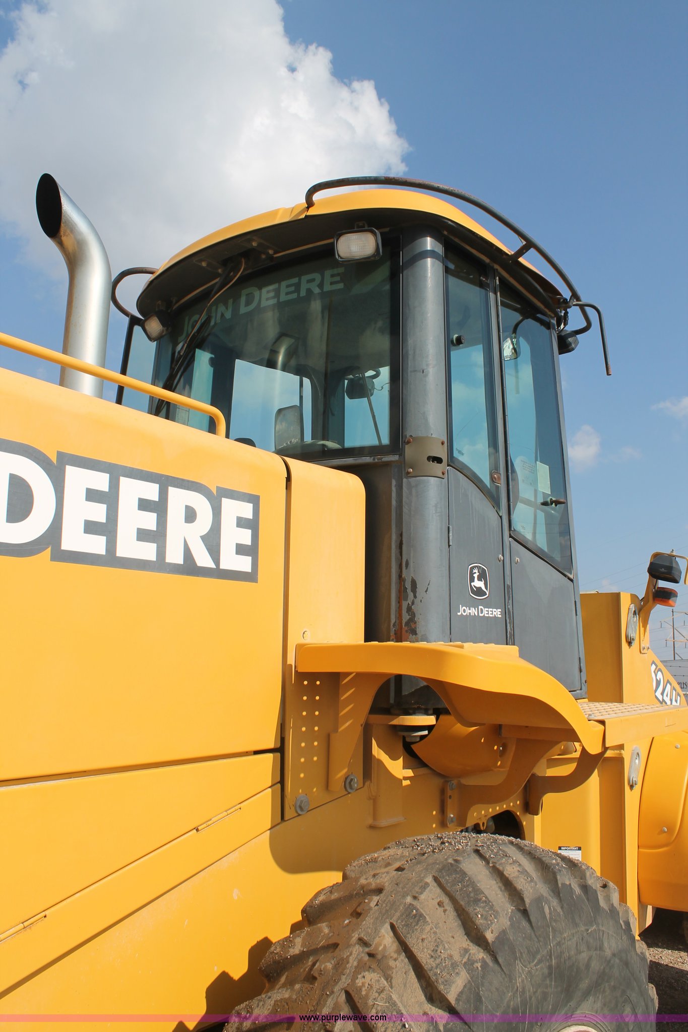 Purple Wave is selling a used Wheel Loader in Texas. This item is a 2002 John Deere 624H wheel loader with the following: 12,668 hours on meter, John Deere PowerTech 6068H 414 C.I.D. six cylinder diesel engine, Powershift transmission, 3F-3R gears, Enclosed cab, AC and heat, Tilt steering wheel, Cloth air suspension seat, Windshield wipers, Front and rear work lights, 70 gallon fuel tank, 3.5 cubic yard bucket, Serial 149013, Rear blocks, 20.5-25 tires, 29,894 lbs. base operating weight, Recently replaced ring gear and pinon, Windshield cracked, Serial DW624HX585672