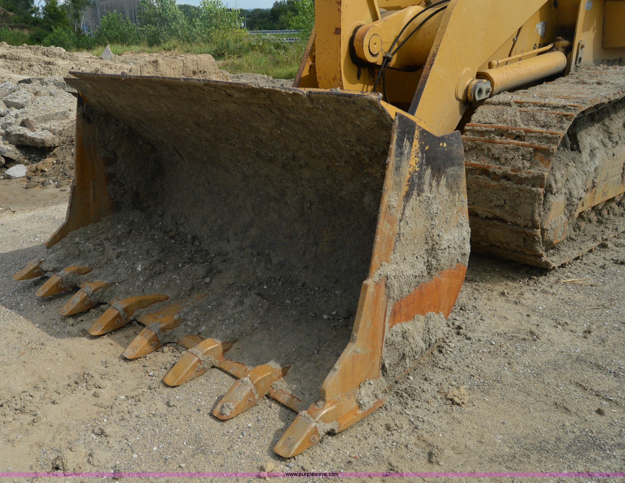 Purple Wave is selling a used Crawler Loader in Missouri. This item is a 1999 Caterpillar 963C track loader with the following: 10,464 hours on meter, Caterpillar 3116 six cylinder diesel engine, Serial 4TF56247, Hydrostatic transmission, Enclosed cab, AC and heat, Two stick loader control, Foot steering, Work lights, 100"W loader bucket, (8) bolt-on cutting teeth, Rear pin hitch, Six bottom rollers, 22"W double grouser track pads, Left door glass broken, Serial 2DS00604, Unit# 4201
