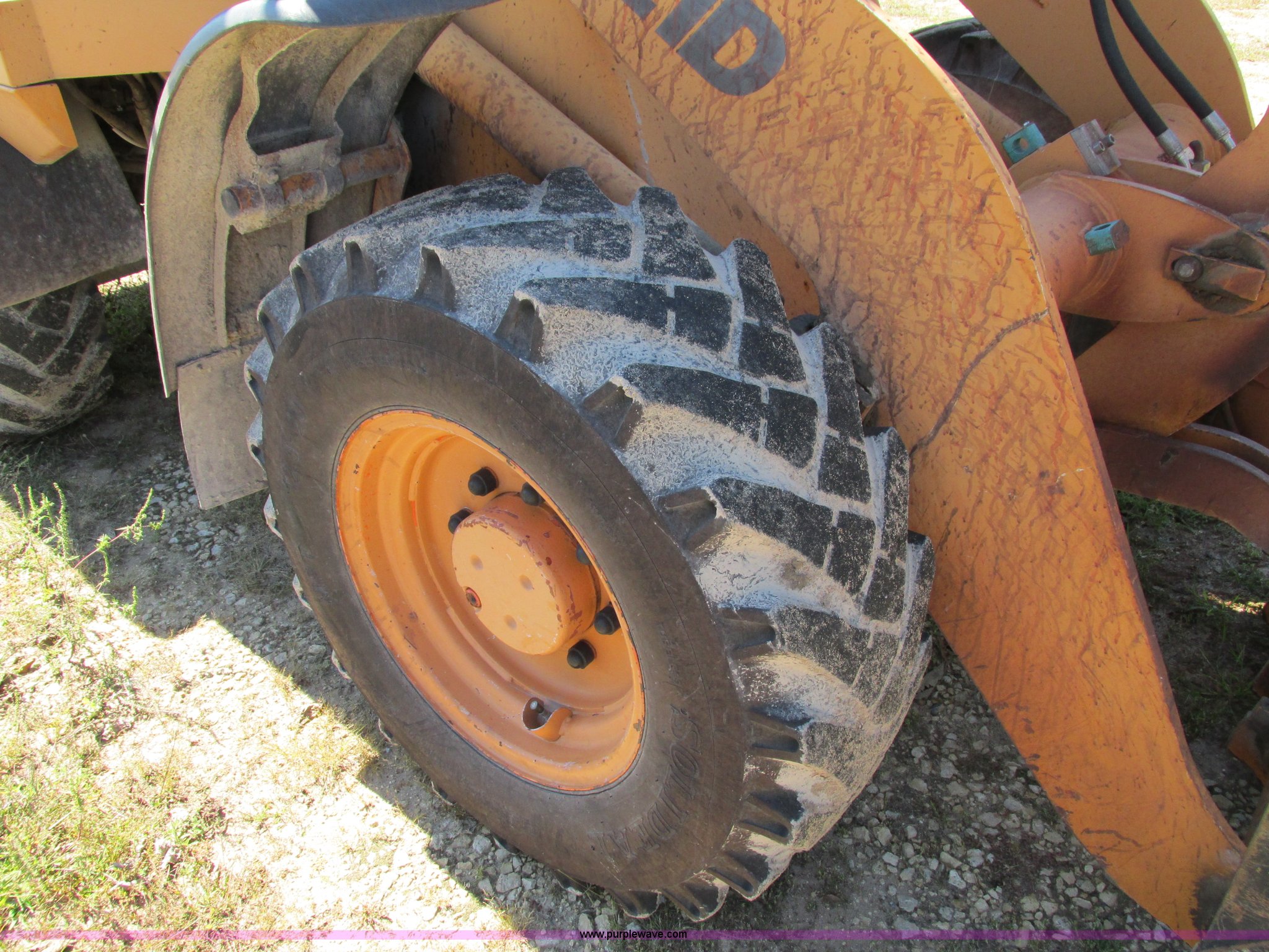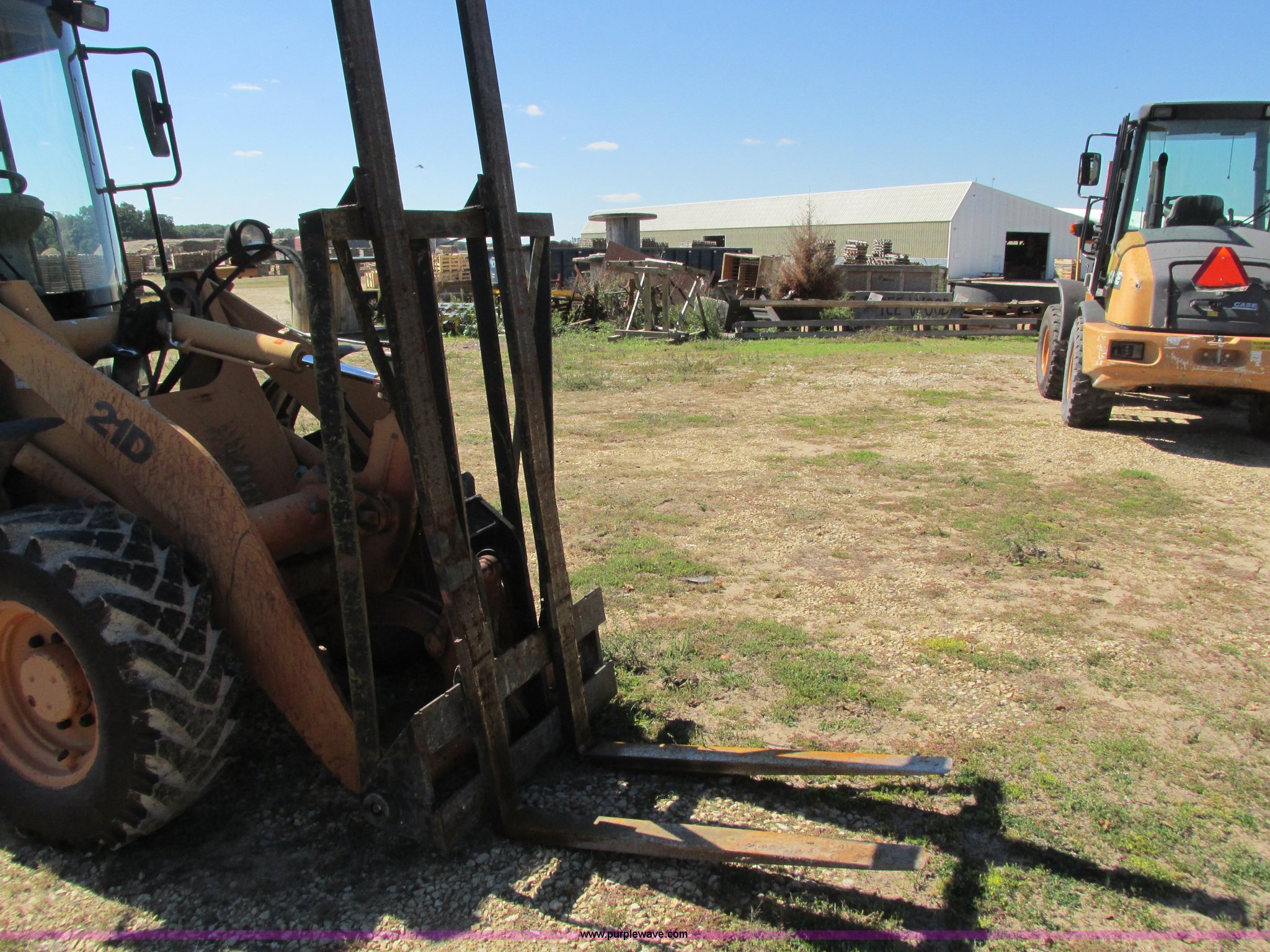 Purple Wave is selling a used Wheel Loader in Illinois. This item is a 2003 Case 21D articulated compact wheel loader with the following: 14,706 hours on meter, Perkins four cylinder diesel engine, 54 HP, Hydrostatic transmission, Hi-Lo, Enclosed cab, AC and heat, AM/FM, Tilt steering, Joystick loader controls, Parking brake, 45"L pallet forks, 8'H bracket, Battery disconnect, Toolbox under step, 12.5-20 tires, 9,700 lbs. base operating weight, Relay switch needs replaced, Door latch needs fixed, Additional set of pallet forks and bucket sold separately, Serial HEC561132
