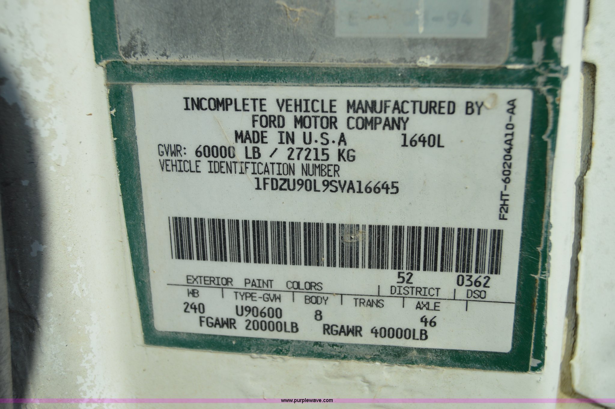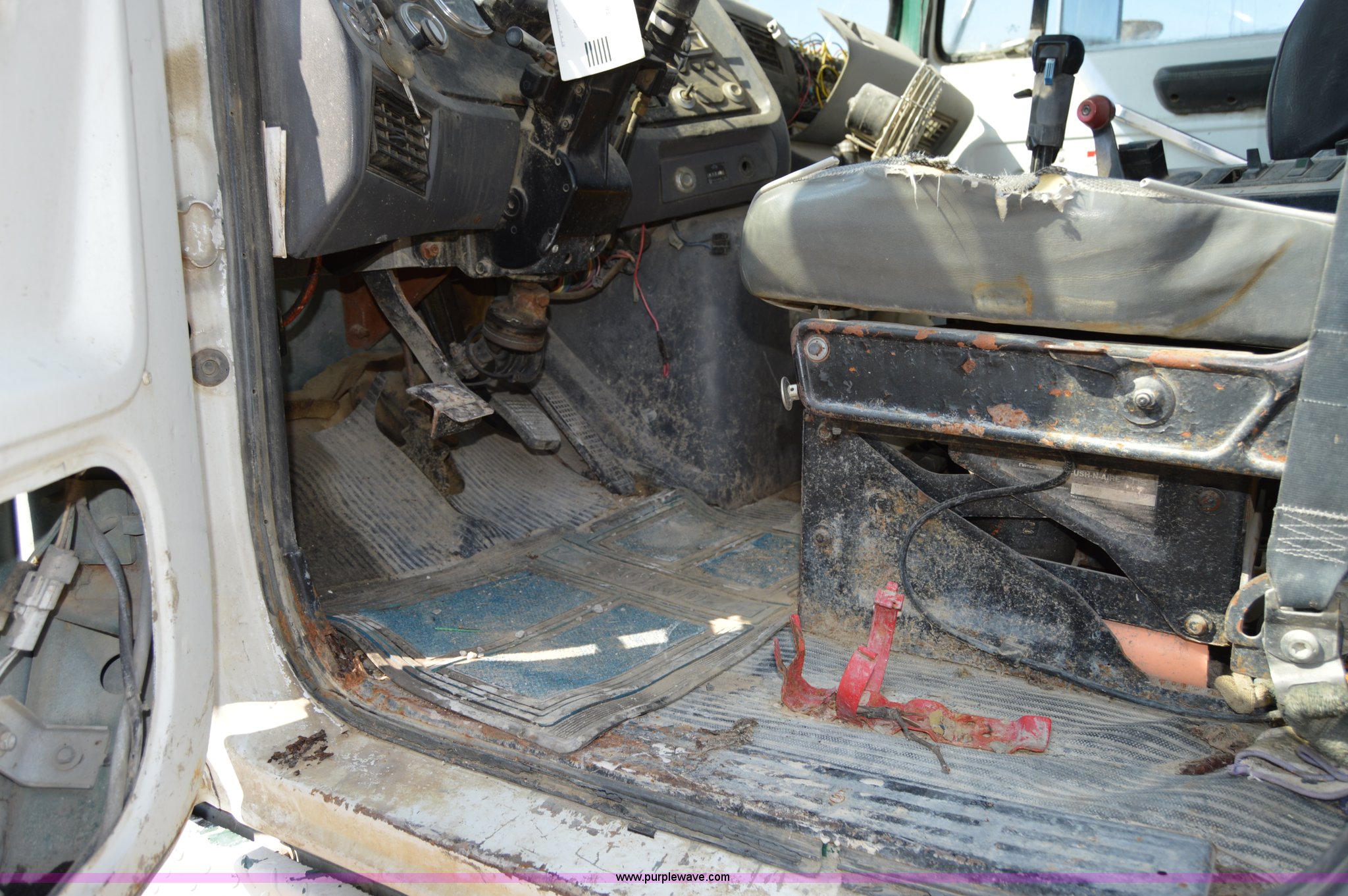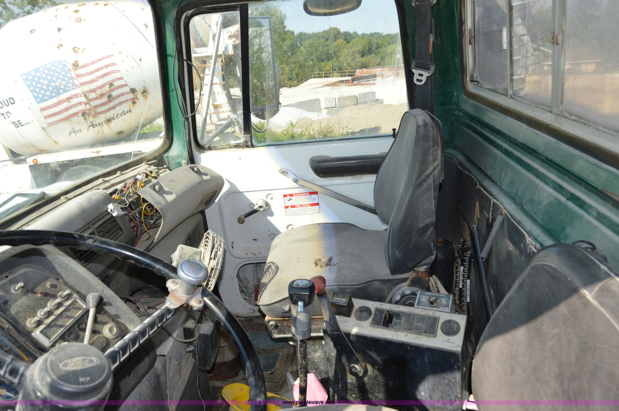 Purple Wave is selling a used Ready Mix or Pump Truck in Missouri. This item is a 1995 Ford LT9000 mixer truck with the following: 177,991 miles on odometer, Cummins L10 10.6L L6 diesel engine, Eaton Fuller seven speed manual transmission, Heat, Air suspension seat, PTO, 10.5 cubic yard mixer, 40 gallon fuel tank, Drop hammer pile driver, Spring suspension, Air brakes, 240" wheelbase, 425/65R22.5 front tires, 11R22.5 rear tires, GVWR 60,000 lbs, FAWR 20,000 lbs, IAWR 20,000 lbs, RAWR 20,000 lbs, Interior/exterior cosmetic damage, Windshield cracked, Batteries dead, Michigan tilt cylinder blade is not included, Unit# 45