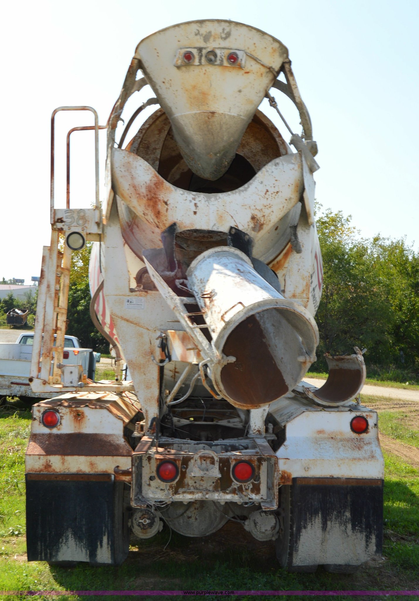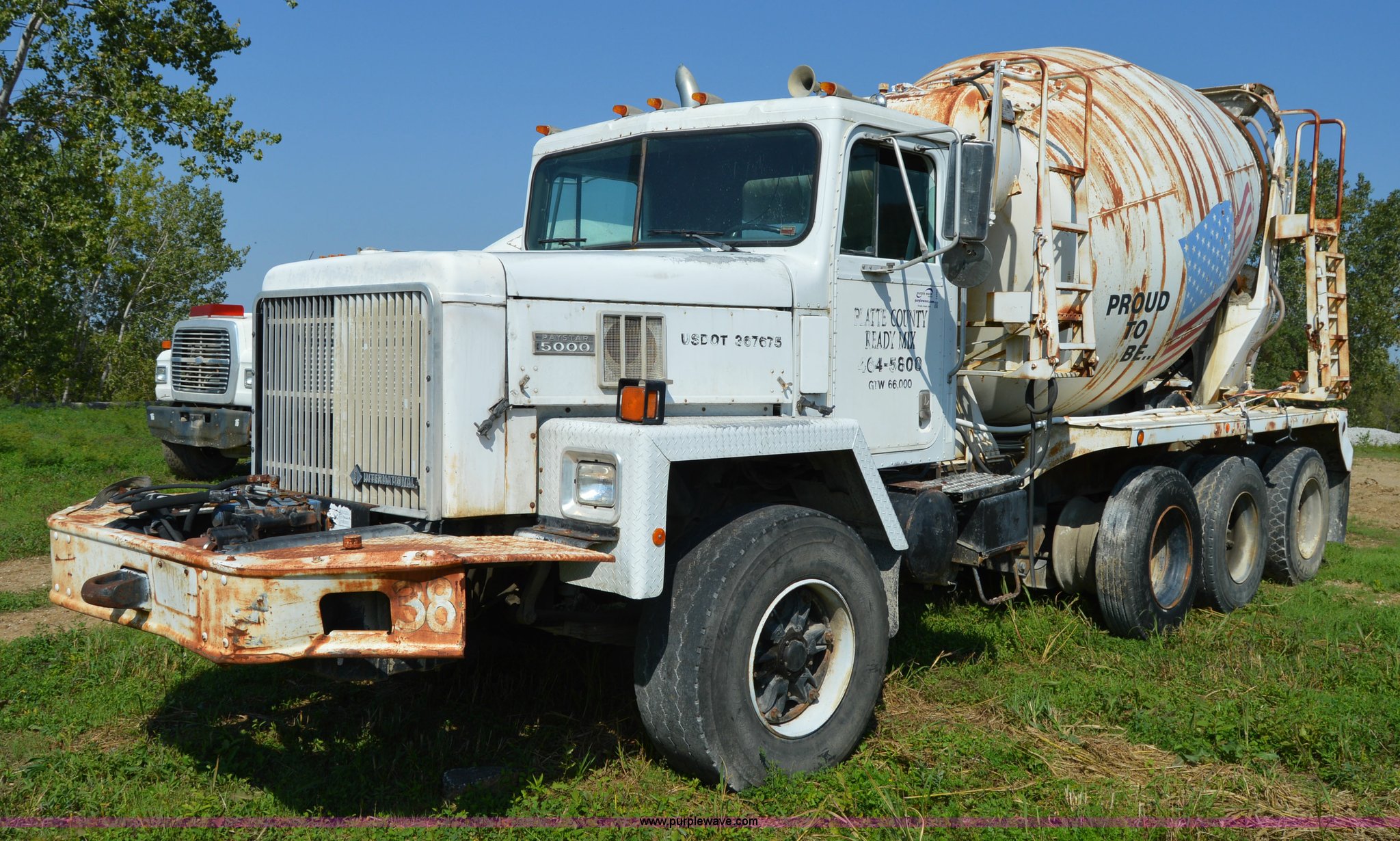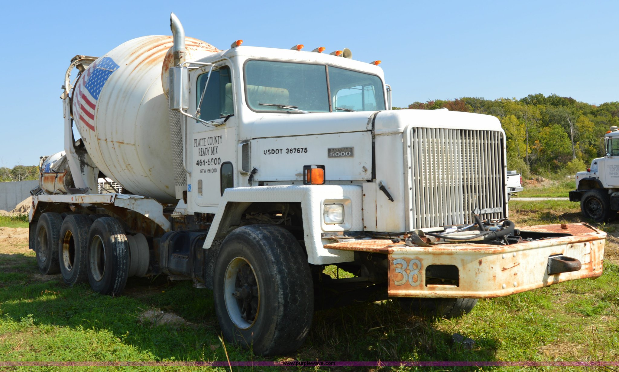 Purple Wave is selling a used Ready Mix or Pump Truck in Missouri. This item is a 1994 International 1840 mixer truck with the following: 203,867 miles on odometer, Cummins L10 10.0L L6 diesel engine, Eaton Fuller seven speed manual transmission, Heat, Air suspension seat, 10 cubic yard capacity mixer, Front mounted PTO, Single fuel tank, Air brakes, 425/65R22.5 front tires, 11R22.5 rear tires, Interior/exterior cosmetic damage, Battery dead, Unit# 38